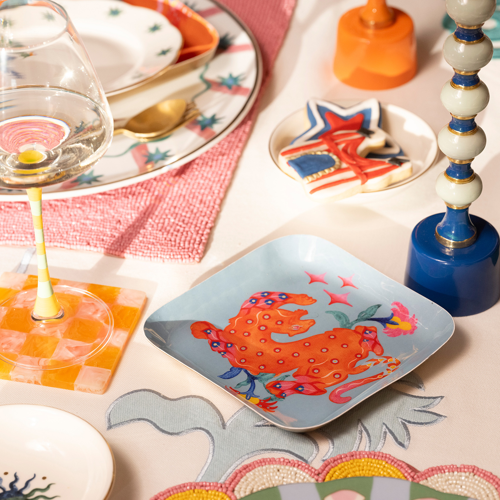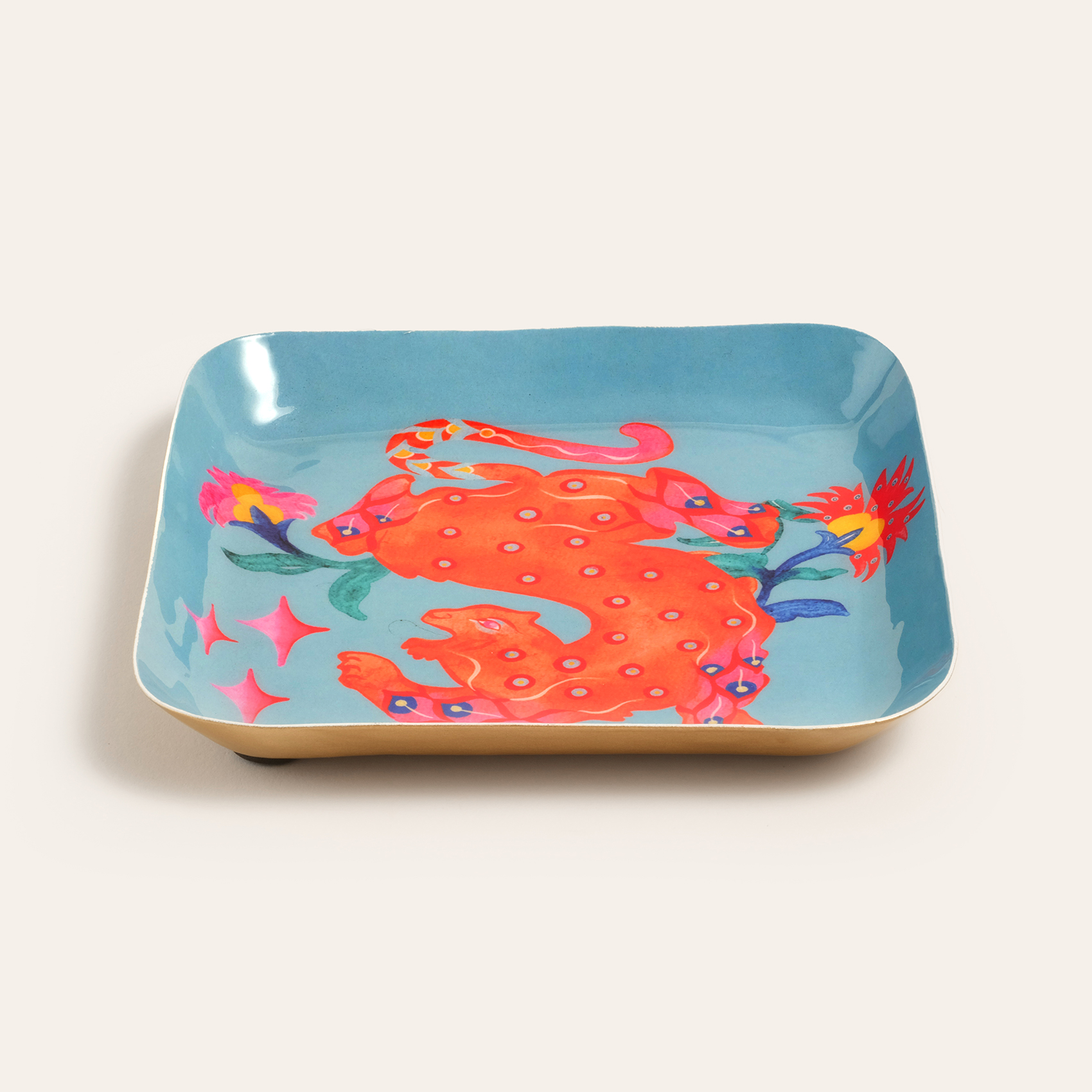 Nanpur Metal Dekoratif Tepsi 15x15x3 Cm Mavi