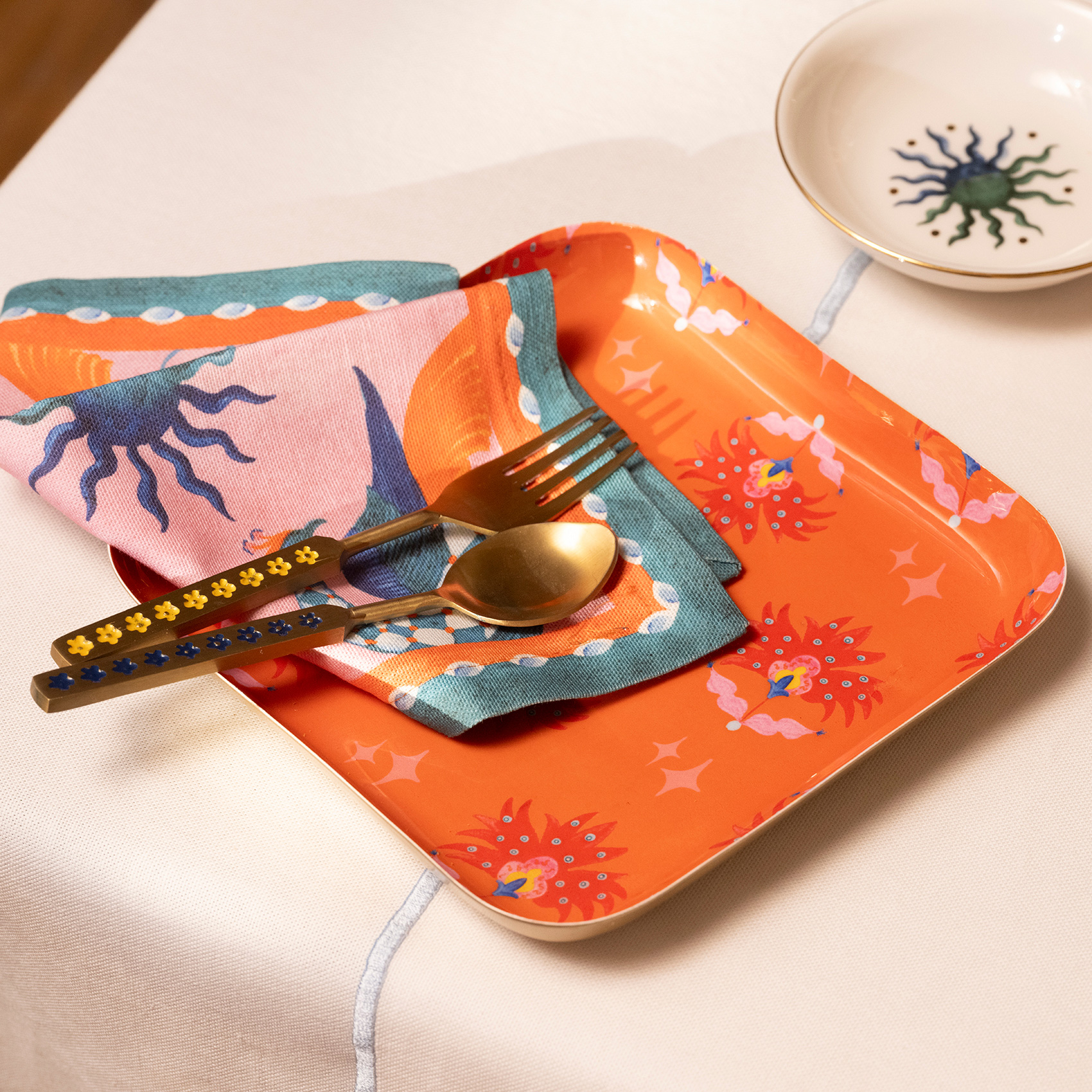 Nanpur Metal Dekoratif Tepsi 19x19x2 Cm Turuncu