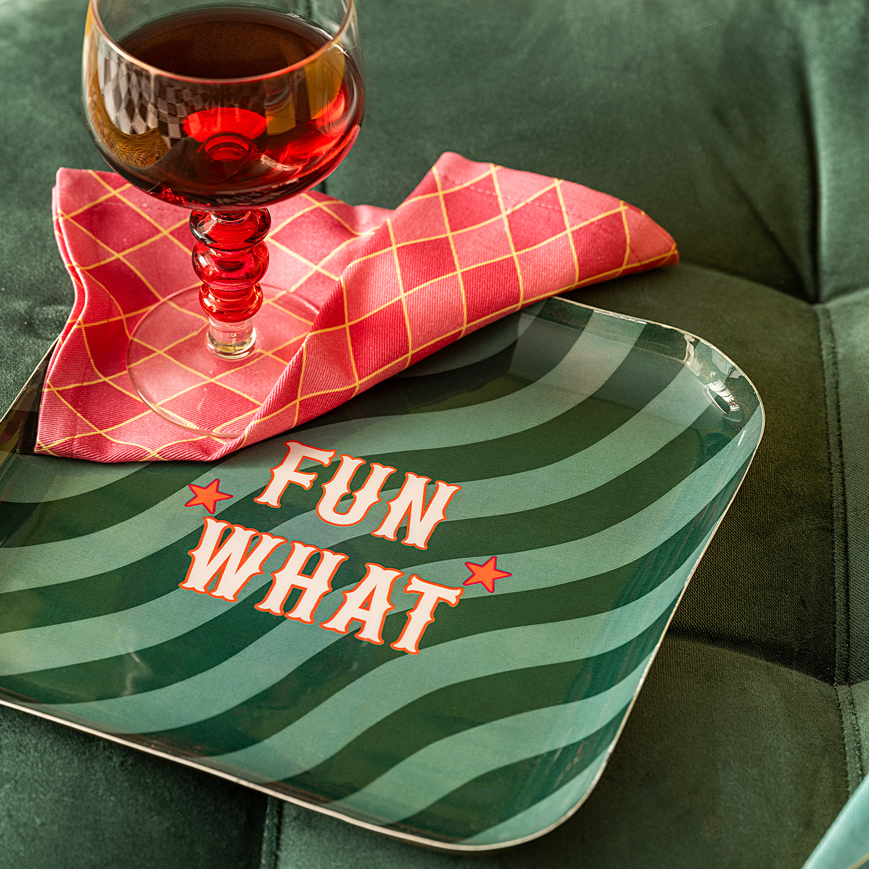 Eğlence her zaman yanınızda! Funfair koleksiyonunun coşkulu havasını her köşeye yayan Nanpur desenli kare metal dekoratif tepsi, yılbaşının neşeli ruhunu günün her saatine yayıyor. Nanpur’un dalgalanan desenleri, eğlenceli bir fırtına gibi dönerek evinize enerji katıyor. İster dört mevsim süren bir festivalin sahnesi olsun, ister sıradan bir günde küçük bir mutluluk kaynağı; bu tepsi her durumda etkileyici. 25,5x25,5x2,54 cm boyutunda olan Nanpur desenli kare metal dekoratif tepsi , hem eğlenceli sunumlar hem de dekoratif dokunuşlar için mükemmel bir tamamlayıcı olarak tasalandı. Nanpur’un yüksek enerjisini evinize taşıyabilir ya da renkli bir hediye alternatifi olarak sevdiklerinize armağan edebilirsiniz. Yalnızca nemli bezle silerek temizleyin. Bulaşık makinesinde yıkamayın.