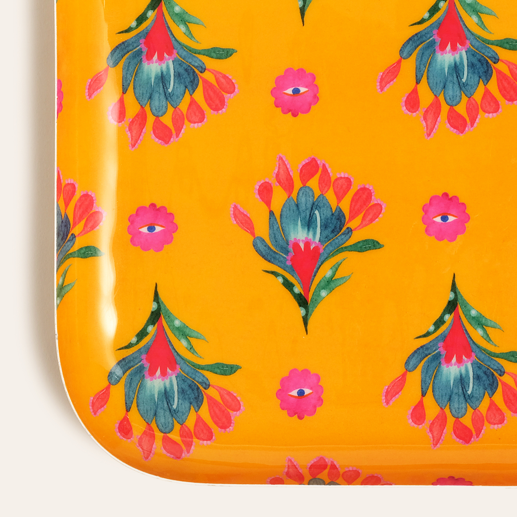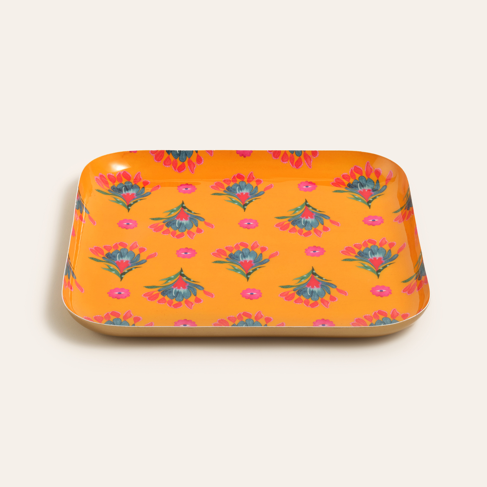 Nanpur Metal Dekoratif Tepsi 26x26x2 Cm Sarı