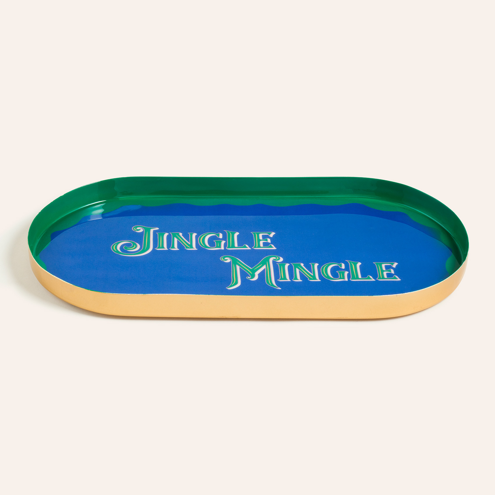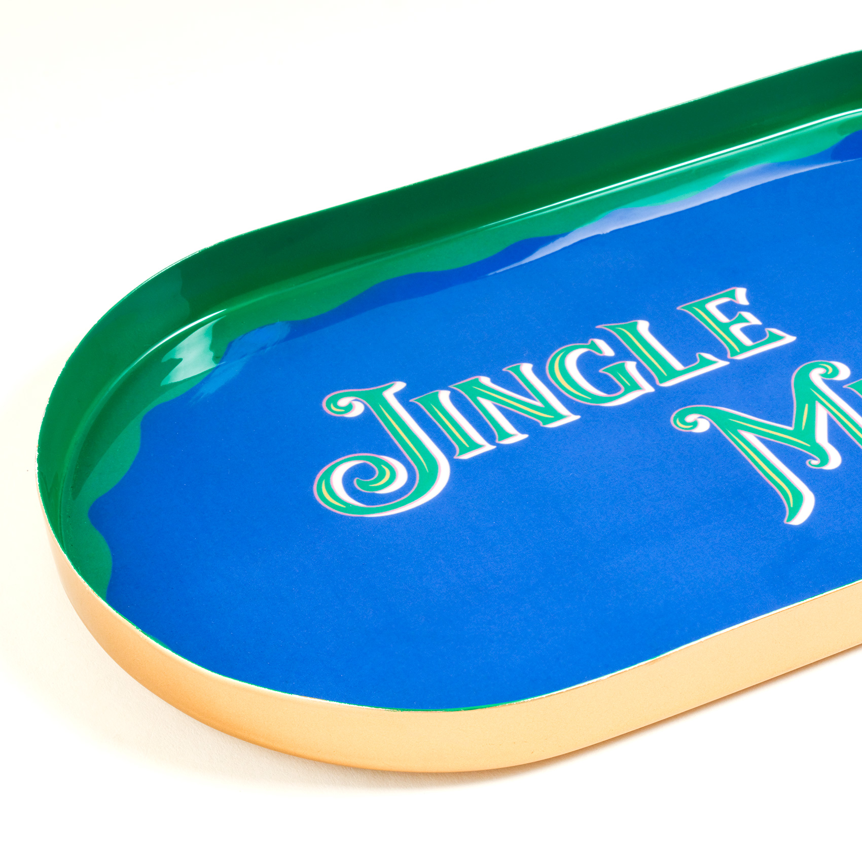 Cheerland koleksiyonunun neşeli ruhunu taşıyan Nanpur Desenli Oval Metal Dekoratif Tepsi, “Jingle Mingle” yazısıyla yeni yıl kutlamalarının enerjisini evinize taşıyor. Hindistan’da özenle üretilen metal tepsi, sehpa üzerinde mumlarla birlikte sergilenebilir ya da yılbaşı süslemelerinin arasında şık bir obje olarak yerini alabilir. Mavi-yeşil kontrastı ve eğlenceli tasarımıyla yılbaşı dekorasyonunuza dinamizm katıyor, evin her köşesinde kutlama coşkusunu hatırlatıyor.
