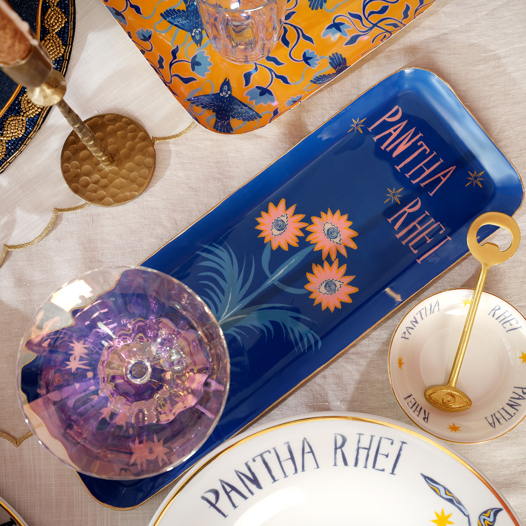 The Nanpur metal tray from the Blue collection is not only a functional serving accessory but also a decorative piece with high aesthetic value, thanks to its original Zsa Zsa Zsu design patterns. You can showcase it on your coffee table, dining table, or kitchen shelf. It is safe for food contact. You can clean it by wiping with a damp cloth. Avoid using scouring pads or sponges, and do not wash it in the dishwasher.