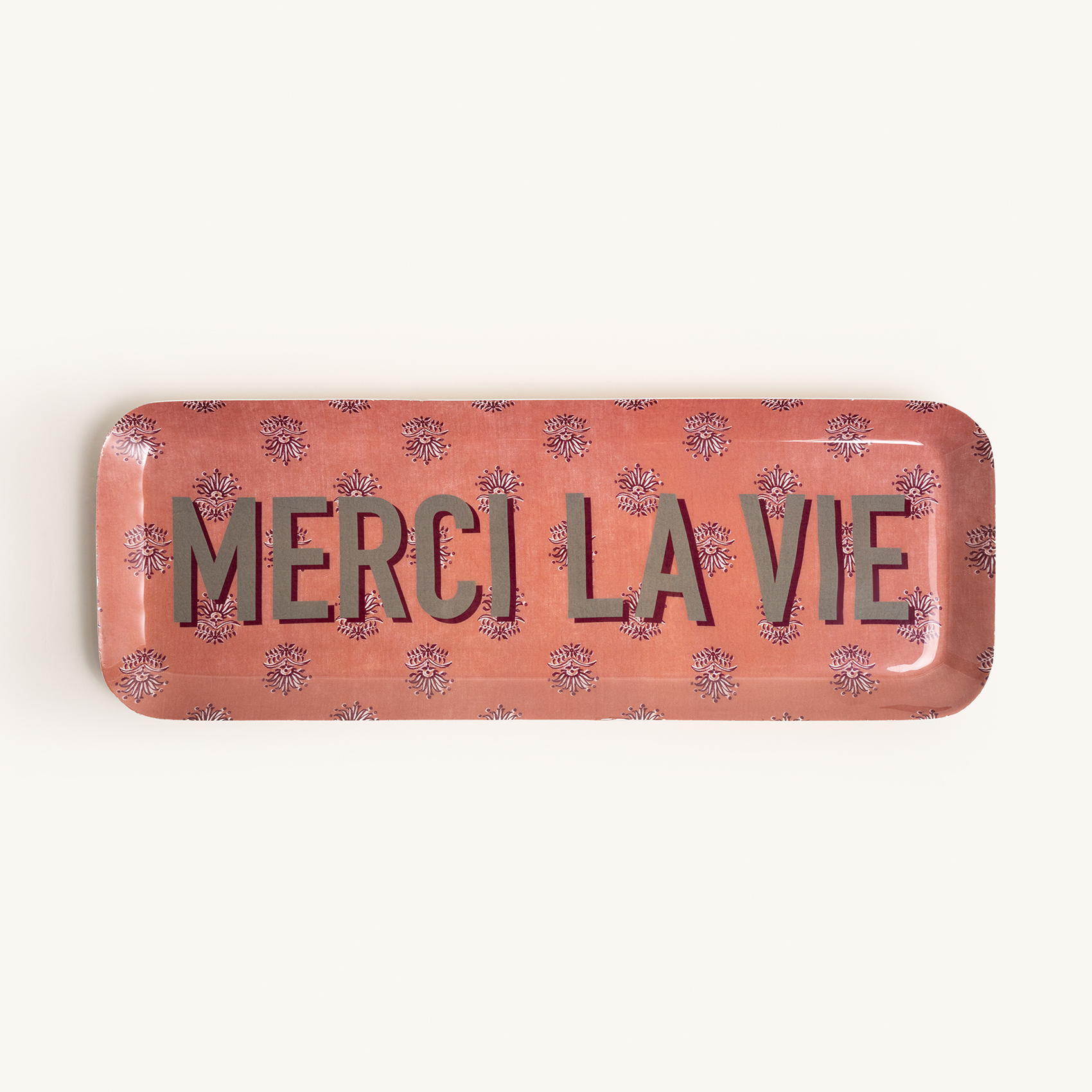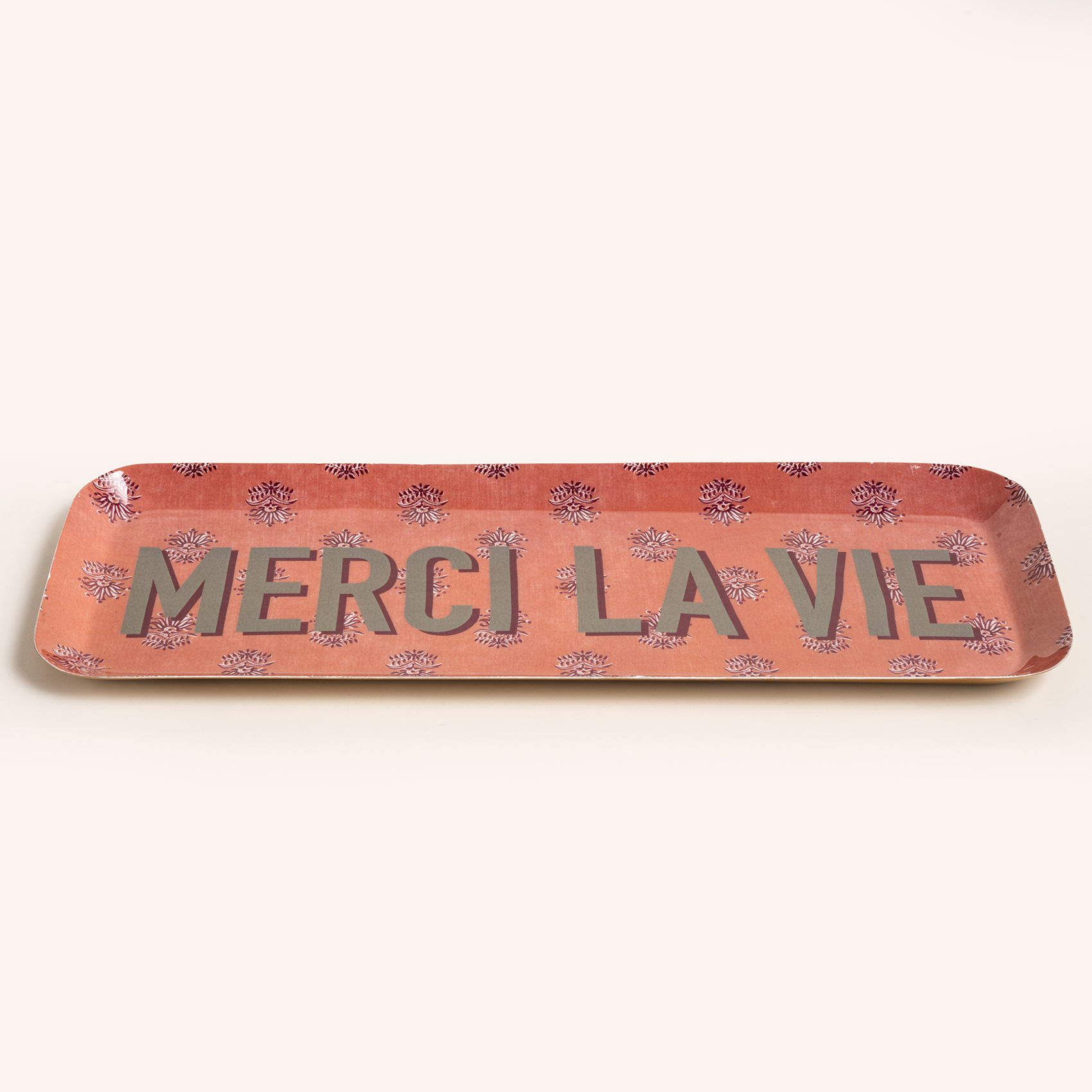 Merci La Vie! Yani hayata tatlı bir teşekkür! Nanpur desenli dikdörtgen metal dekoratif tepsi, pembe ve yeşilin enerjisini taşıyan tasarımıyla hayatın küçük güzelliklerini kutluyor. Metal malzemeden üretilmiş ve 42x15x2 cm boyutlarındaki bu tepsiyi sadece bir servis aracı olarak değil, masanızın yıldızı olarak da kullanabilirsiniz. Sofistike çiçek desenleriyle süslenmiş pembe zemin, yeşil yazıyla harika bir kontrast yaratırken, bu tepsi günlük anlarınıza tatlı bir dokunuş katacak. Bakımı da çok kolay: sadece nemli bir bezle silin, sert temizleyicilerden uzak tutun ve hayatın keyfini çıkarmaya devam edin. Bulaşık makinesi mi? Merci, ama hayır!