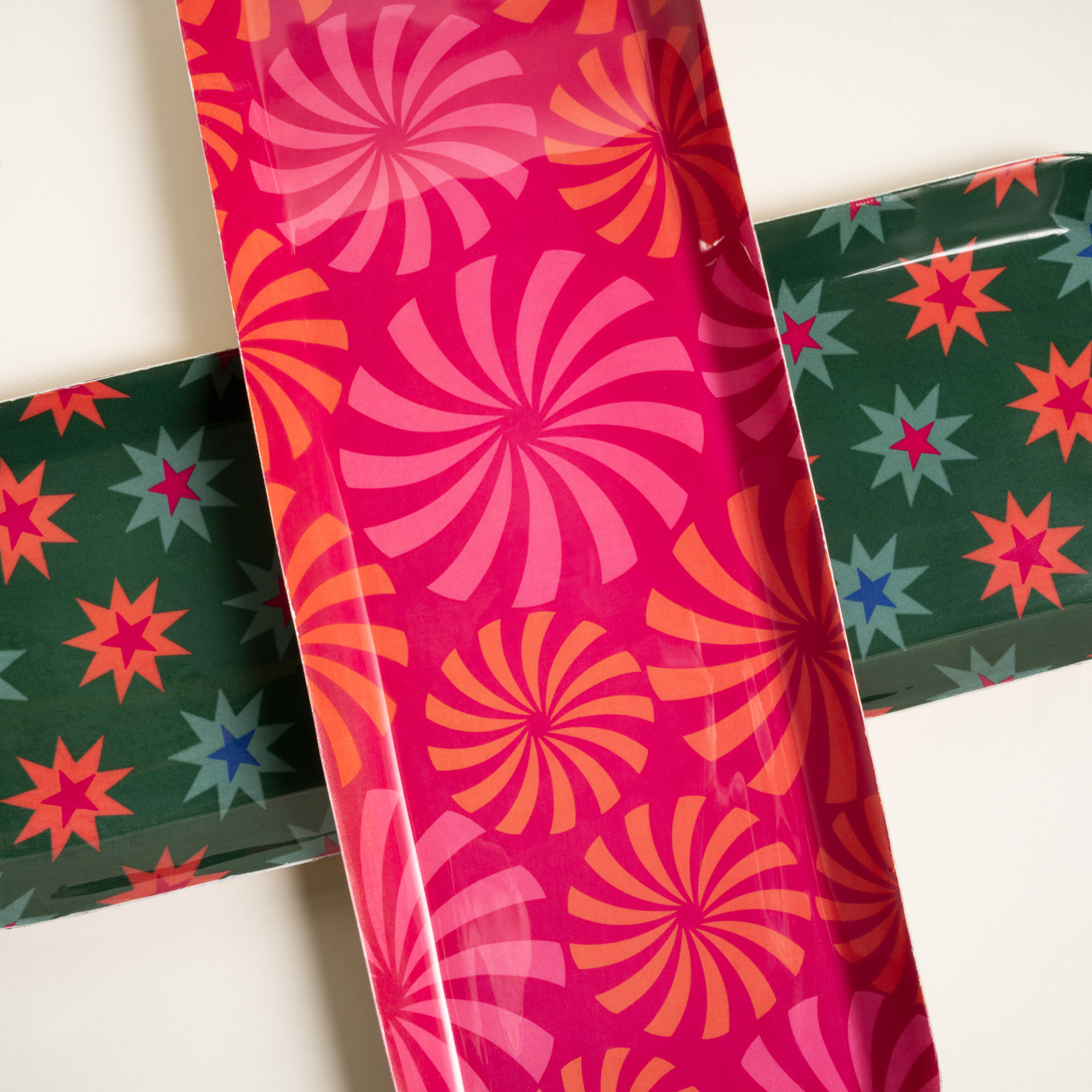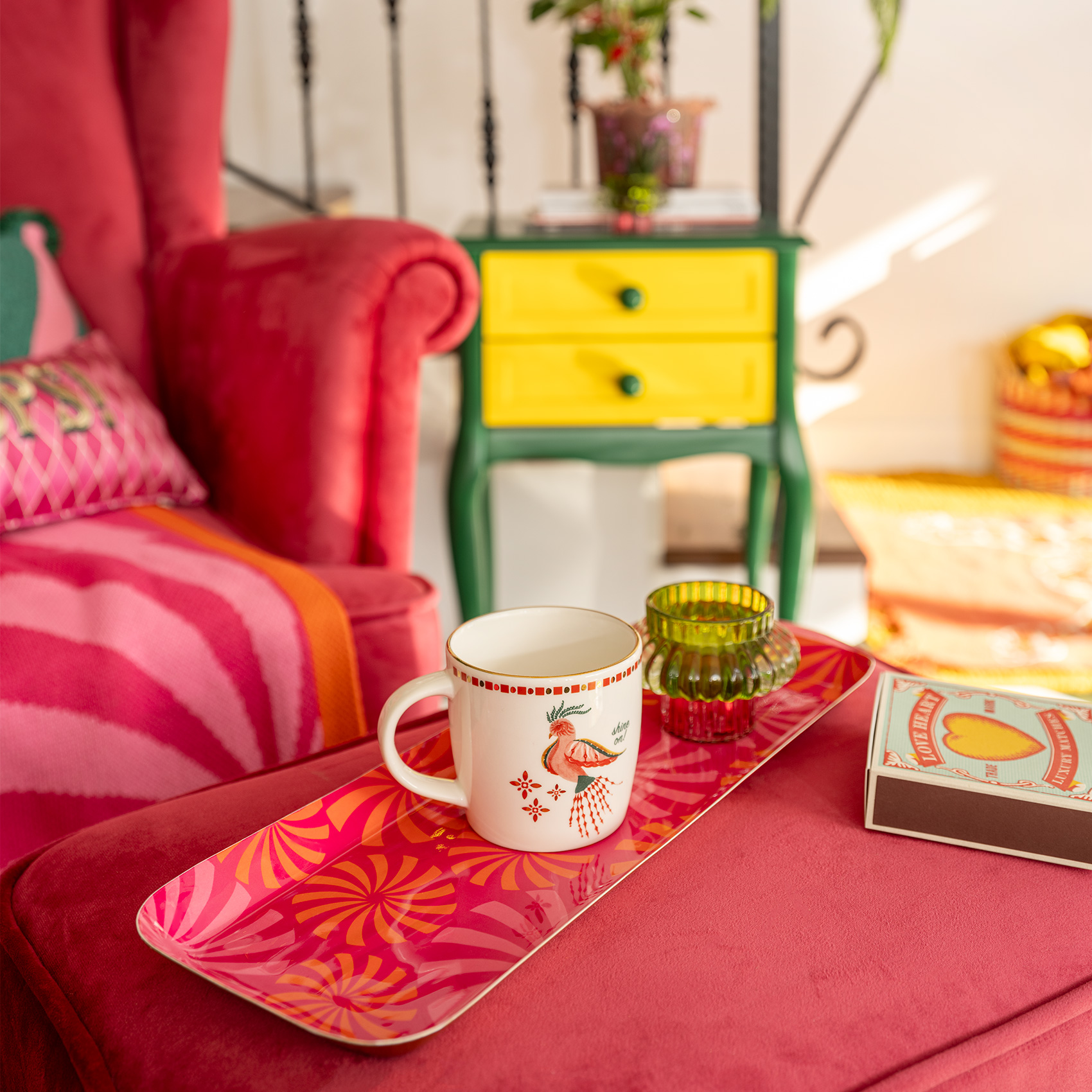 Eğlence servisi başlasın! Funfair koleksiyonundan çıkan bu renkli tepsi, sıradan günleri eğlenceli bir şölene dönüştürmek için tasarlandı. Canlı renklerin dans ettiği tekrar eden desenler, adeta görsel bir konfeti yağmuru gibi etrafa yayılırken, geometrik formlar sanki bir karnavalın ortasındaymış gibi hissettiriyor. 42x15x2 cm ölçülerindeki bu tepsi, ister sabah kahvesi servisi için olsun, ister şık bir dekorasyon köşesi için, her anı bir partiye çevirmeye hazır. Zsa Zsa Zsu tasarımcılarının imzasını taşıyan Nanpur desenli dikdörtgen metal dekoratif tepsi Hindistan’da üretilmiş, el işçiliğiyle tamamlanmıştır.Temizliğini yaparken nemli ıslak bir bezle silmenizi öneriyoruz. Bulaşık makinesinde yıkamayın.
