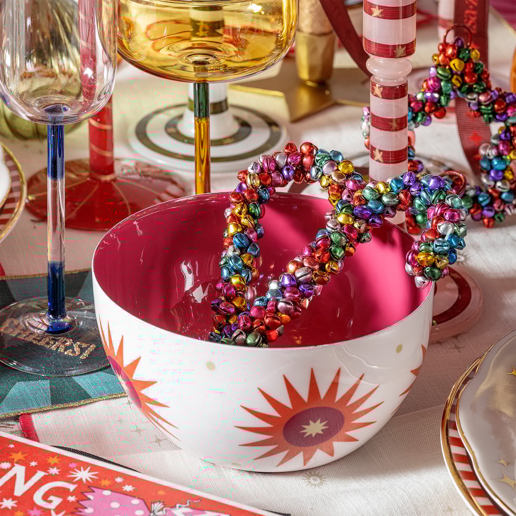 Canlı renklerin uyumlu birlikteliğini yansıtan geometrik desenlerle süslenen Nanpur kâse, her ortama enerji ve neşe katmak için tasarlandı. Funfair koleksiyonunun eğlenceli ruhunu sadece yılbaşında değil, dört mevsim boyunca yaşam alanınıza taşıyan bu dekoratif kâse, Hindistan'da metal malzemeden üretilmiştir. Baskılı tasarımıyla dikkat çeken Nanpur, 15x15x7,5 cm ölçülerinde olup hem pratik hem de görsel olarak etkileyici bir aksesuar. Nanpur kase, evinize canlı bir dokunuş katmak için ideal olduğu gibi, sevdiklerinize hediye etmek için de harika bir seçenek. Uzun yıllar boyunca ilk günkü görünümünü koruyabilmesi için yalnızca elde yıkamanızı tavsiye diyoruz. Mikrodalga kullanımına uygun değildir.