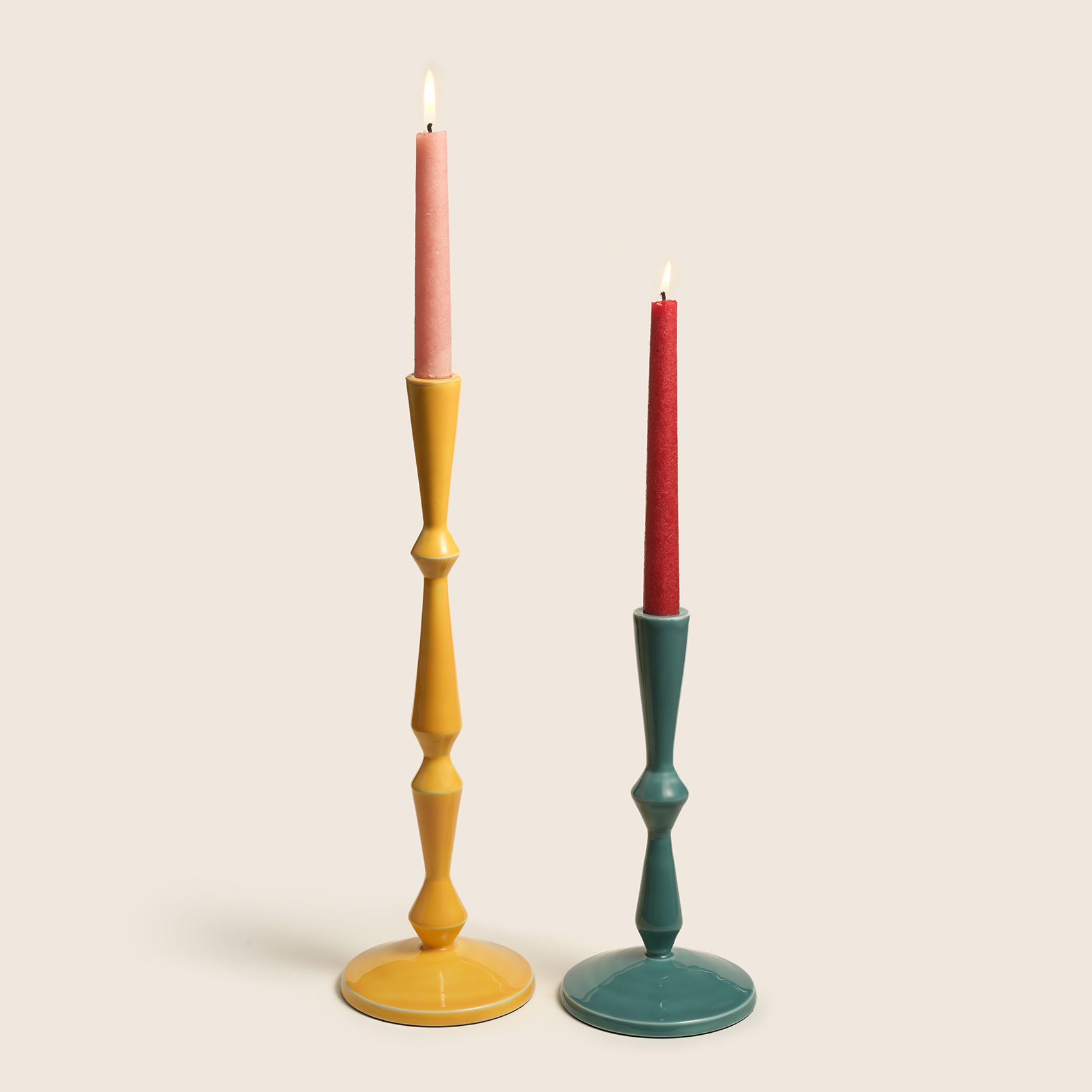 Hindistan’da usta zanaatkârlar tarafından el işçiliğiyle üretilen Nanpur Metal Şamdan, Zsa Zsa Zsu’nun kültürel zenginliği modern tasarımla buluşturan Heritage Koleksiyonu’nun ışıltılı parçalarından biri. Canlı sarı rengiyle Rajasthan gün batımlarını hatırlatır, zarif formu ise eski saray fenerlerinden ilham alır. Dayanıklı metal gövdesi üzerindeki her küçük fark, el emeğinin izini taşır. Nanpur, ortama yalnızca ışık değil, aynı zamanda mirasın, zarafetin ve kutlama ruhunun enerjisini de taşır.