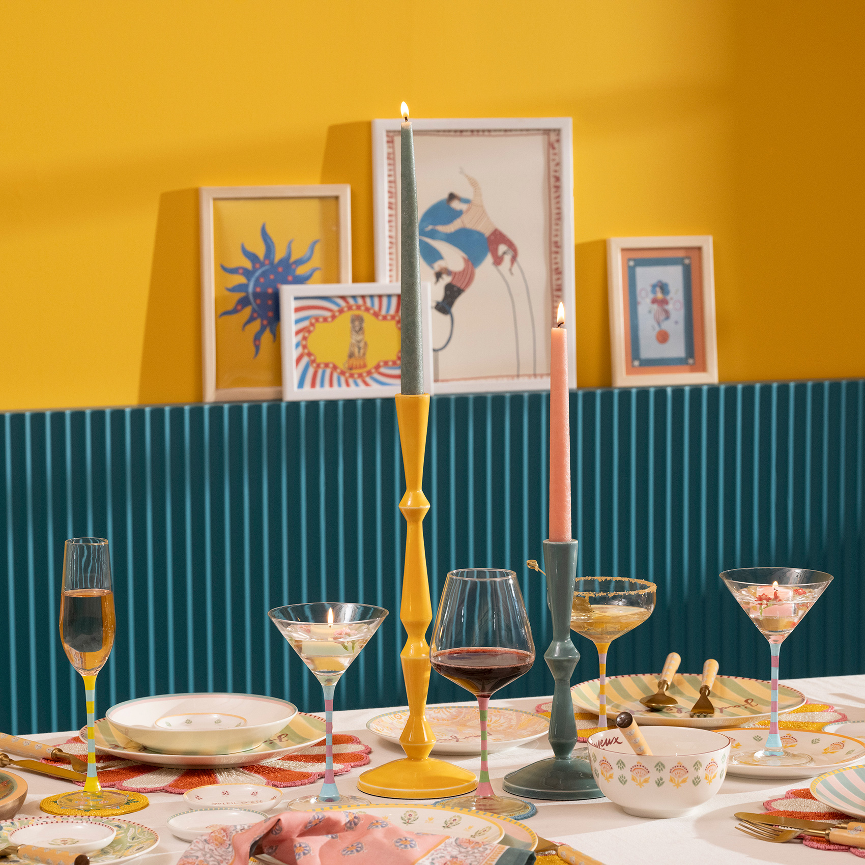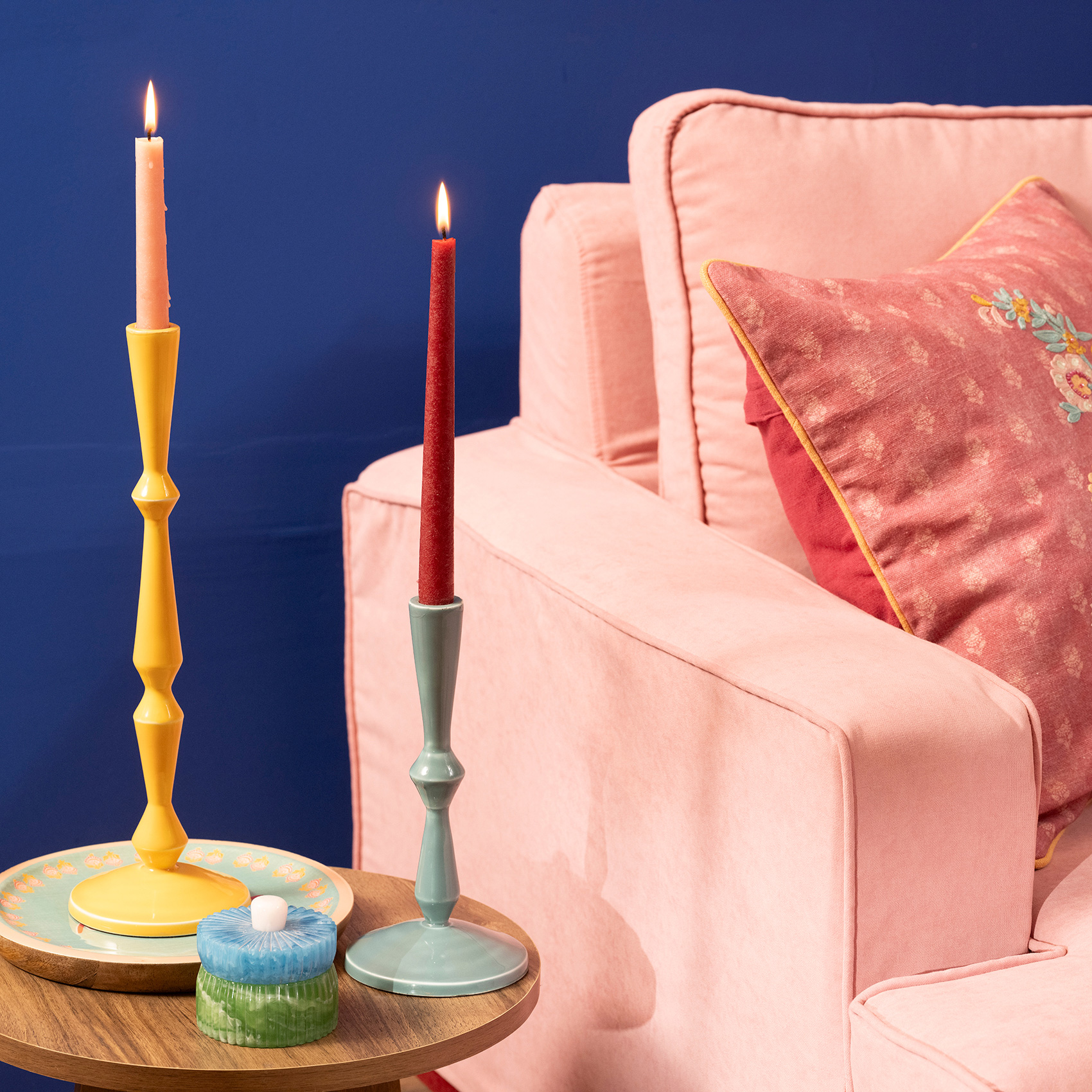 Nanpur Metal Şamdan 7x7x23 Cm Yeşil