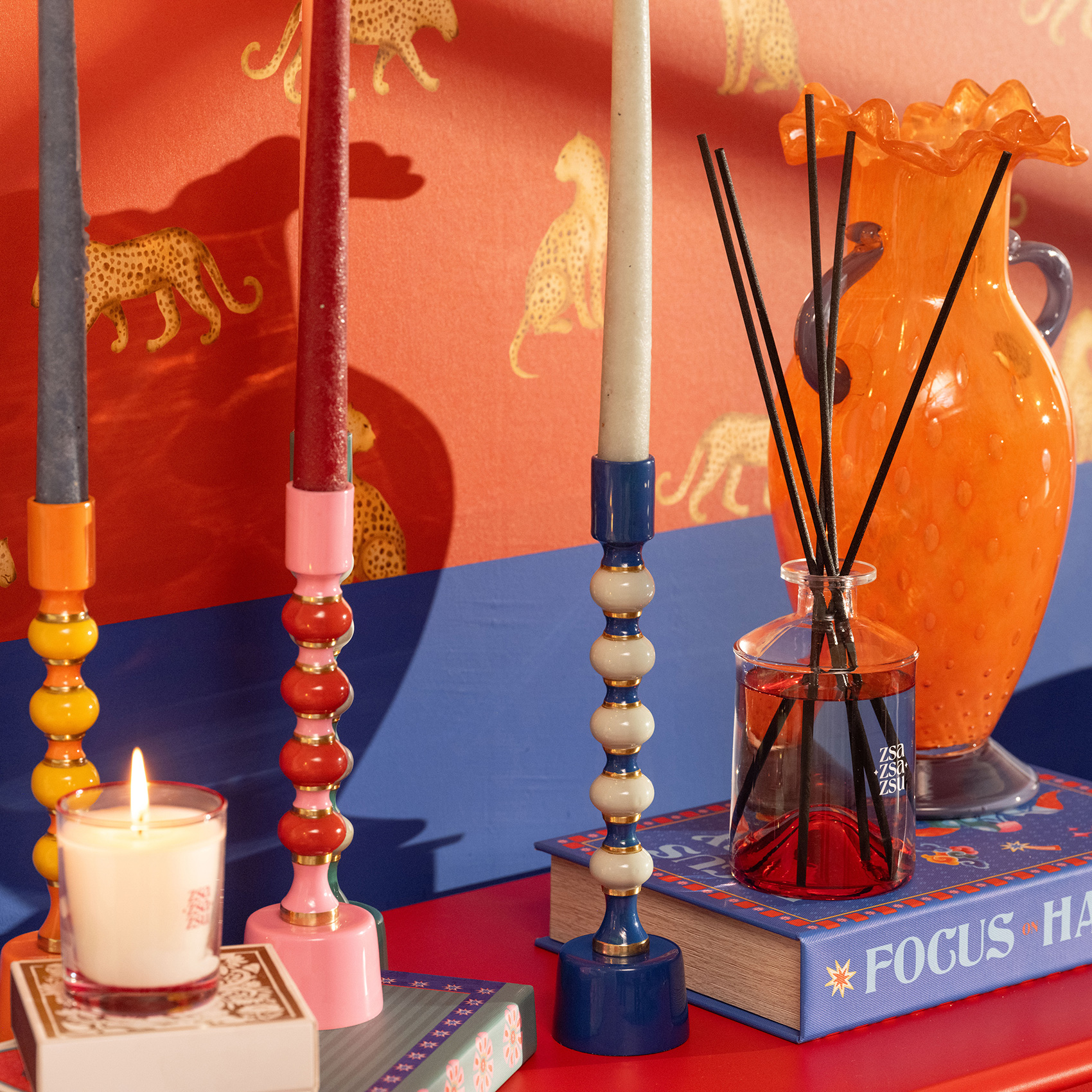 Nanpur Metal Şamdan 7x7x28 Cm Mavi