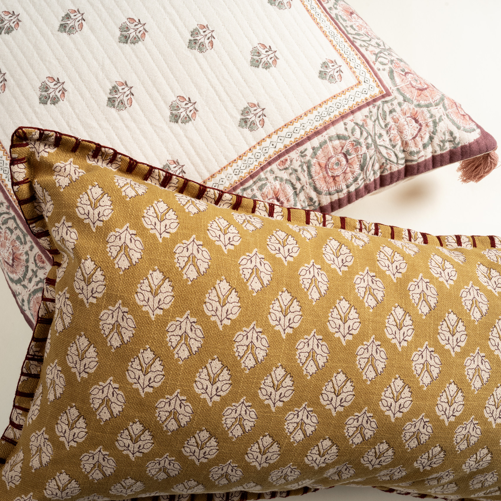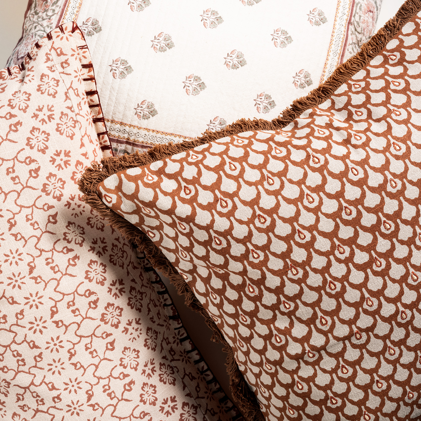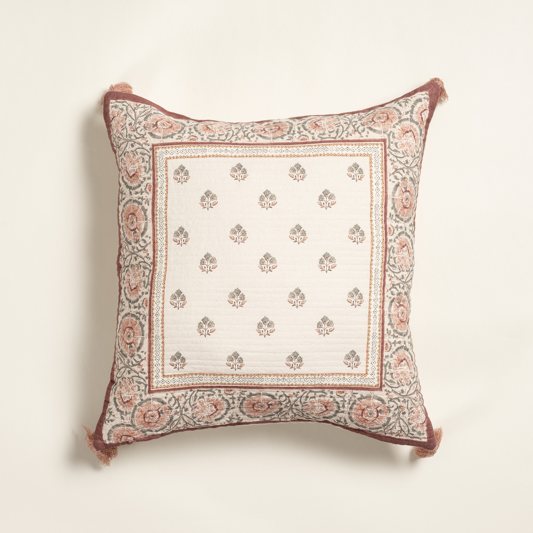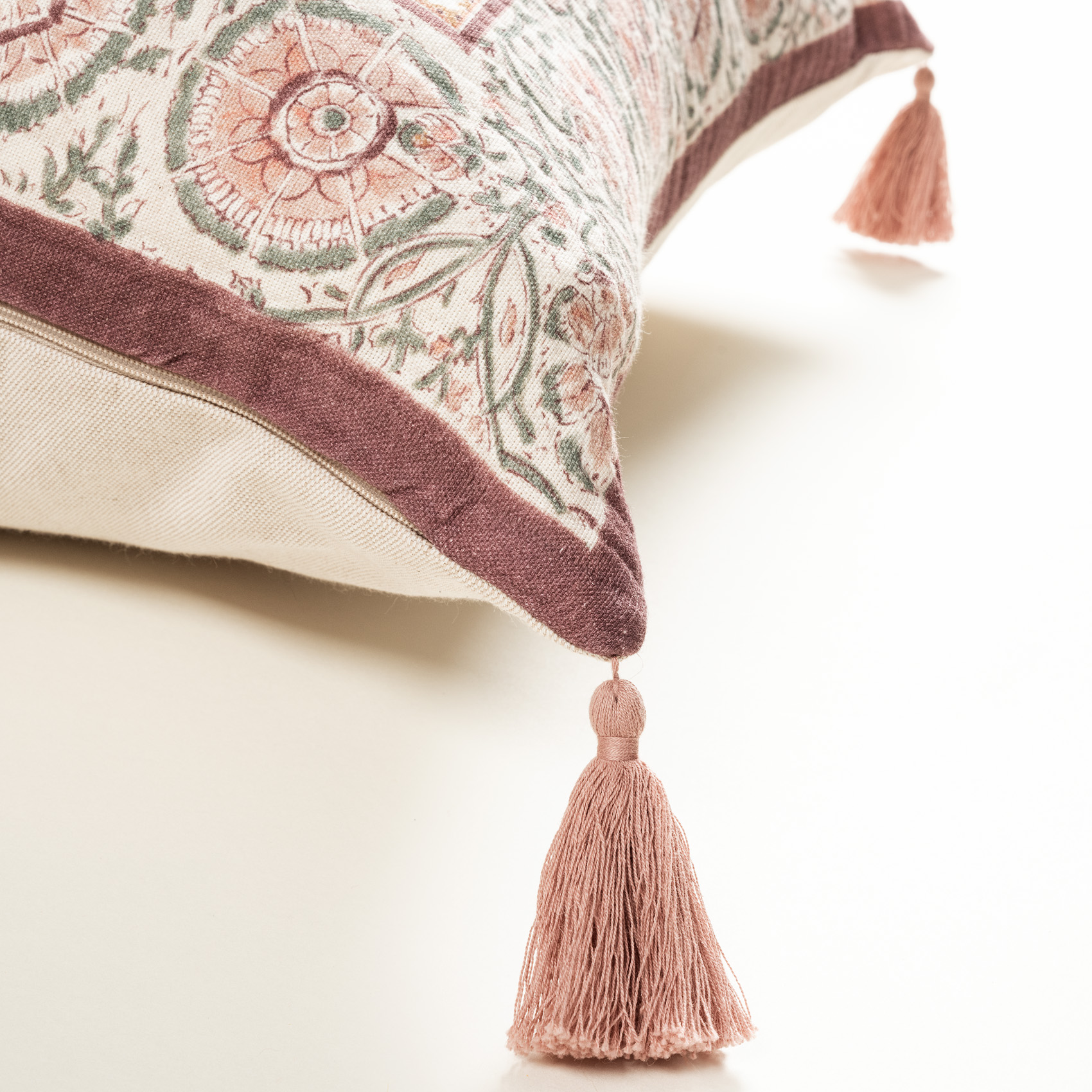 Nilüfer Baskılı Püsküllü Pamuk %100 Pamuk Dolgulu Kırlent 50x50 Cm Renkli