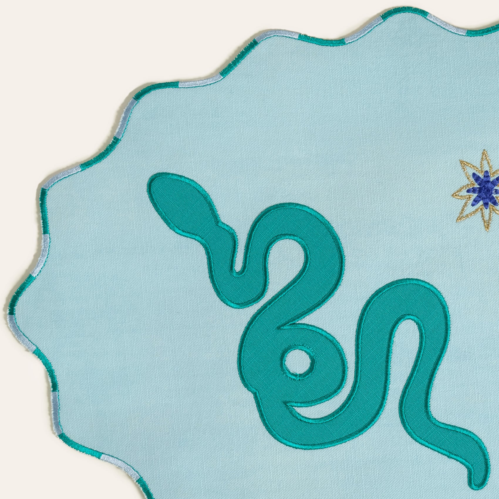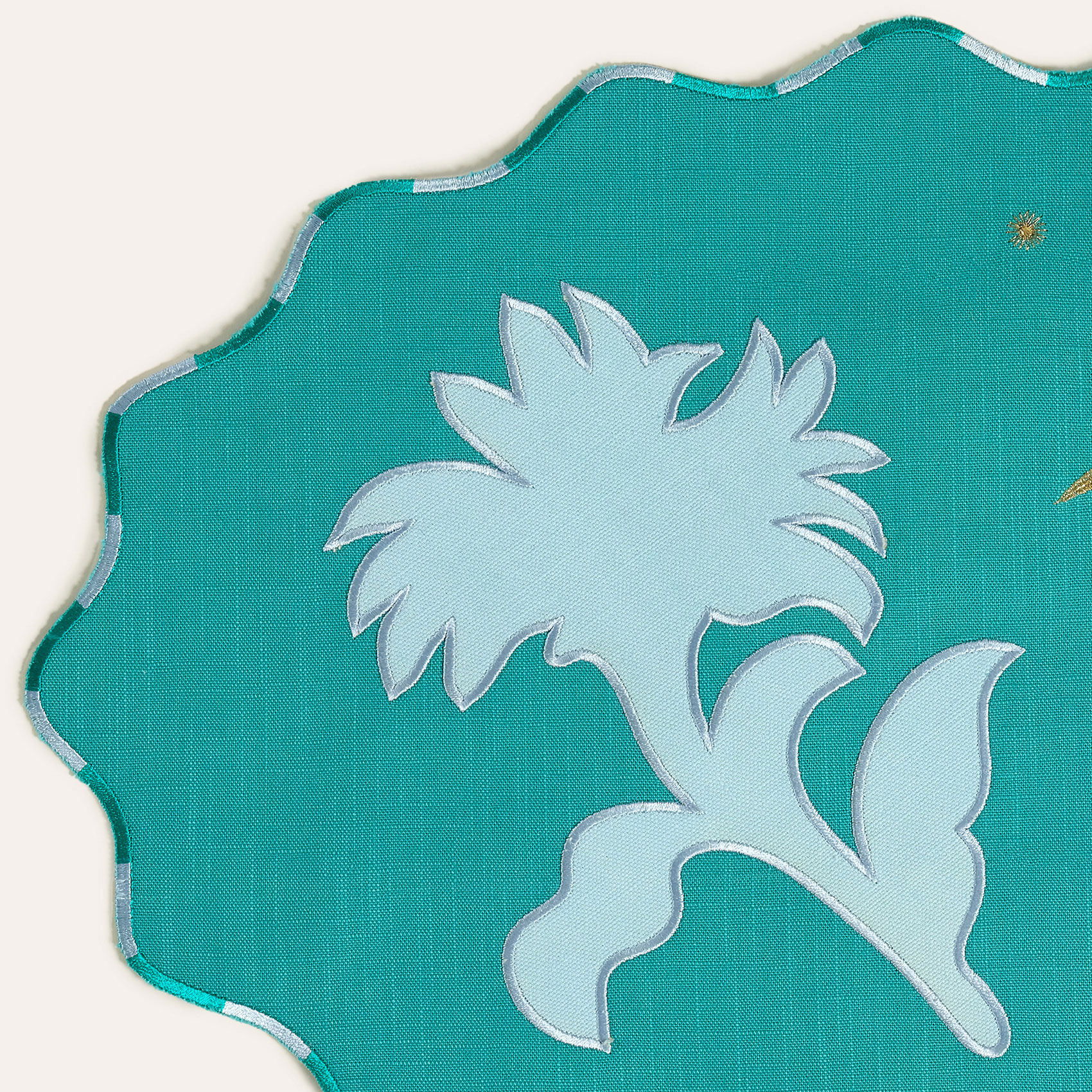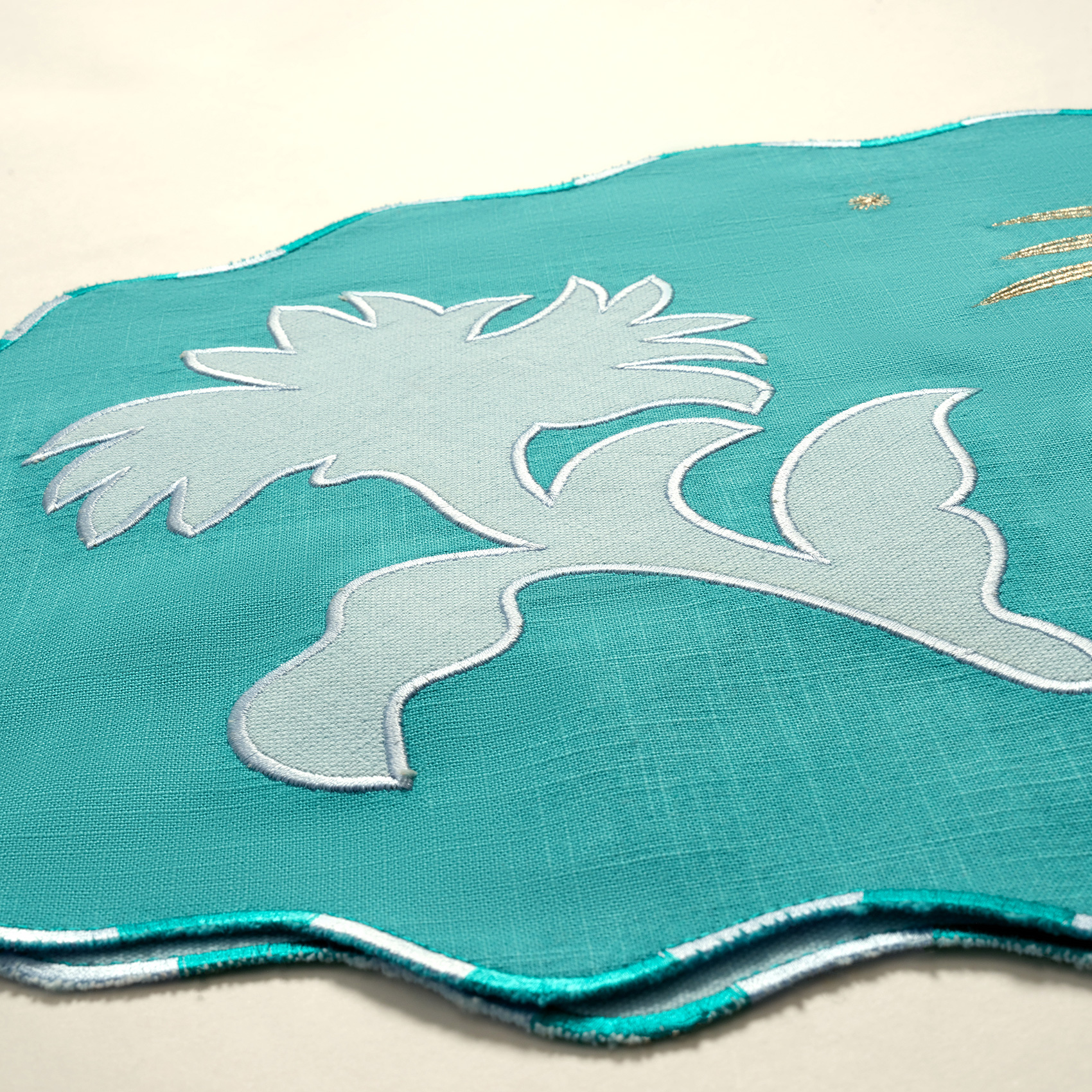 Nilüfer Dijital Baskılı Nakışlı Pamuk Amerikan Servis 35x50 Cm Yeşil - Mavi
