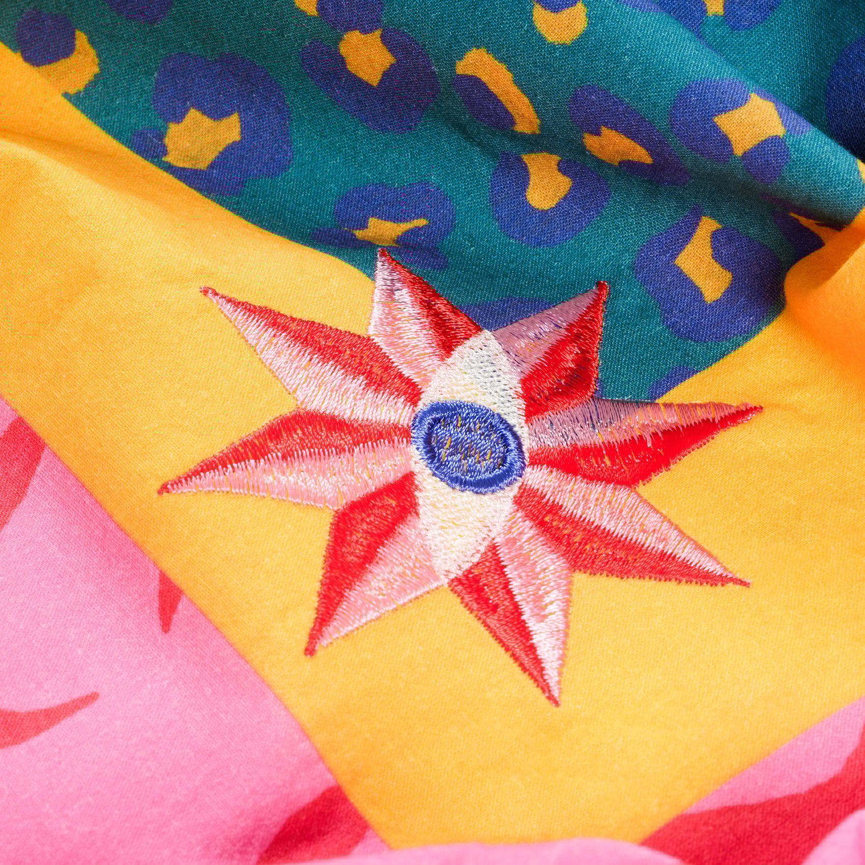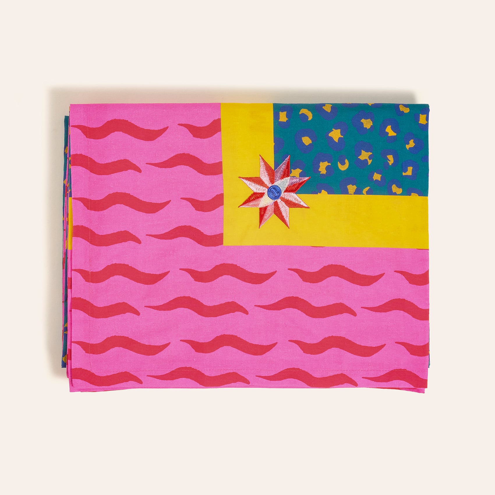 Nilüfer masa örtüsü, Maximalist koleksiyonun vahşi ve tropik enerjisini sofralara getiriyor. Hayvan desenini andıran, ancak Zsa Zsa Zsu yorumuyla yeniden kurgulanan baskı; parlak kontrast renklerle birleşerek cesur ve özgün bir karakter yaratıyor. Köşe nakışları tasarıma beklenmedik bir zarafet dokunuşu katarken, %100 pamuk kumaş günlük sofralardan özel davetlere kadar iddialı bir stil sunuyor. 160x240 cm ölçüsündedir. Türkiye’de tasarlandı ve üretildi.