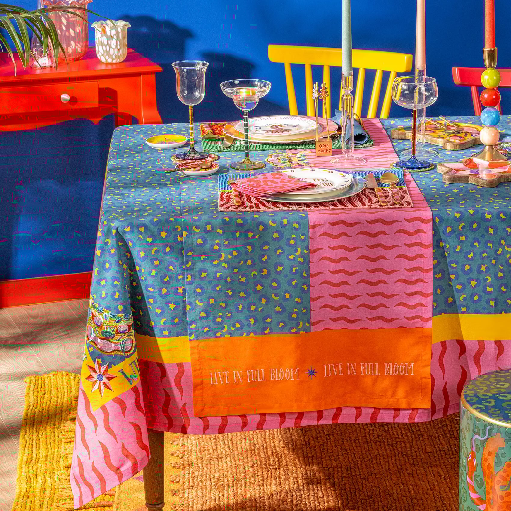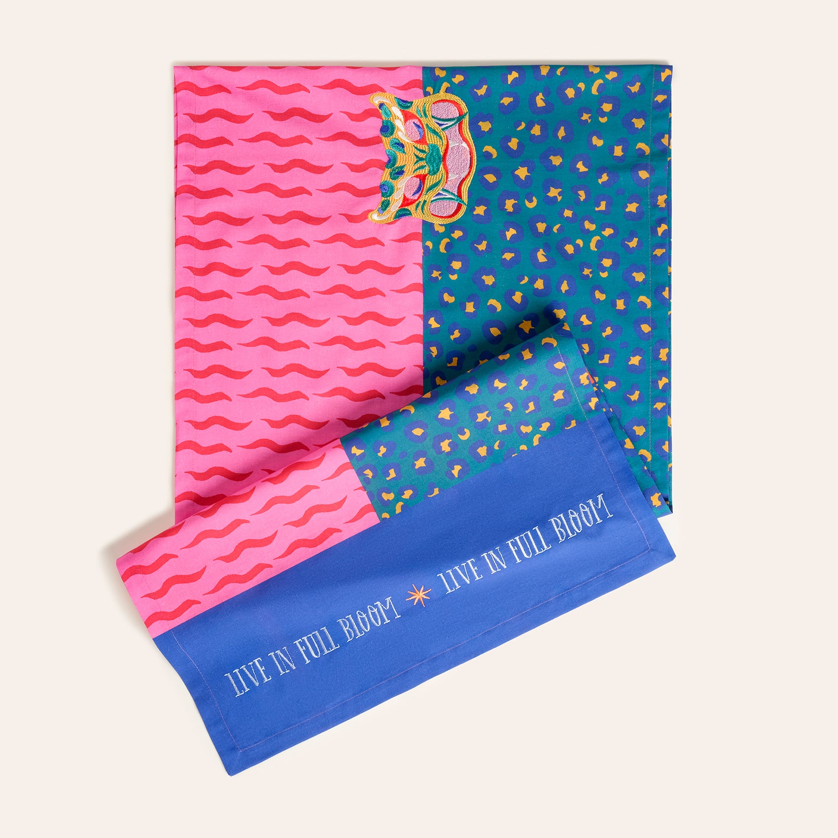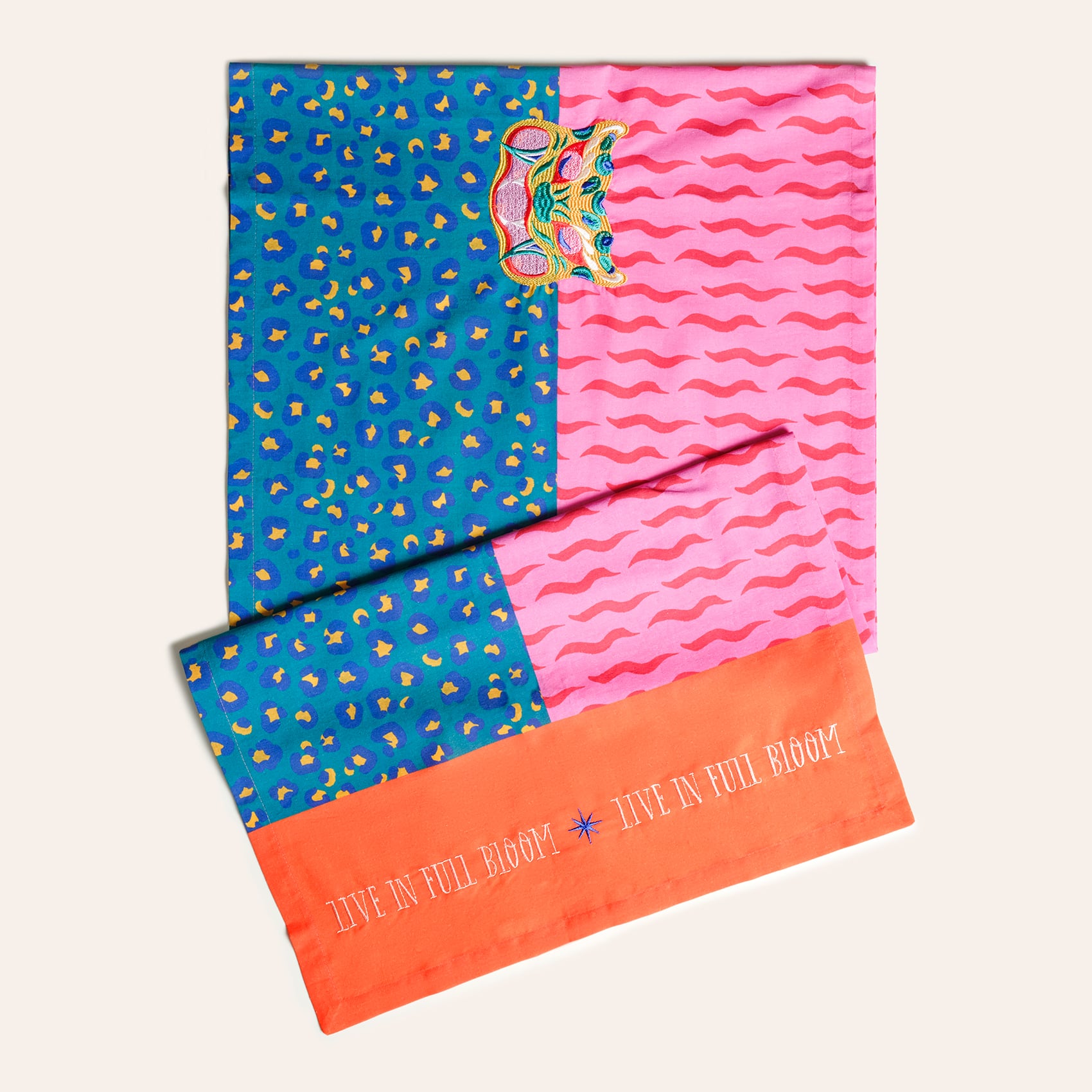 Nilüfer runner, Maximalist koleksiyonun vahşi ve tropik enerjisini sofralarınıza davet ediyor. Zsa Zsa Zsu Tasarım Ekibi tarafından yeniden yorumlanan hayvan desenini andıran baskı, parlak kontrast renklerle buluşarak cesur ve oyuncu bir karaktere bürünüyor. Ortadaki zarif nakış detayı tasarıma beklenmedik bir şıklık katıyor. %100 pamuk yapısıyla hem günlük sofralarda hem de özel davetlerde iddialı bir görünüm yaratıyor. 50x180 cm ölçüsündedir. Türkiye’de tasarlandı ve üretildi.