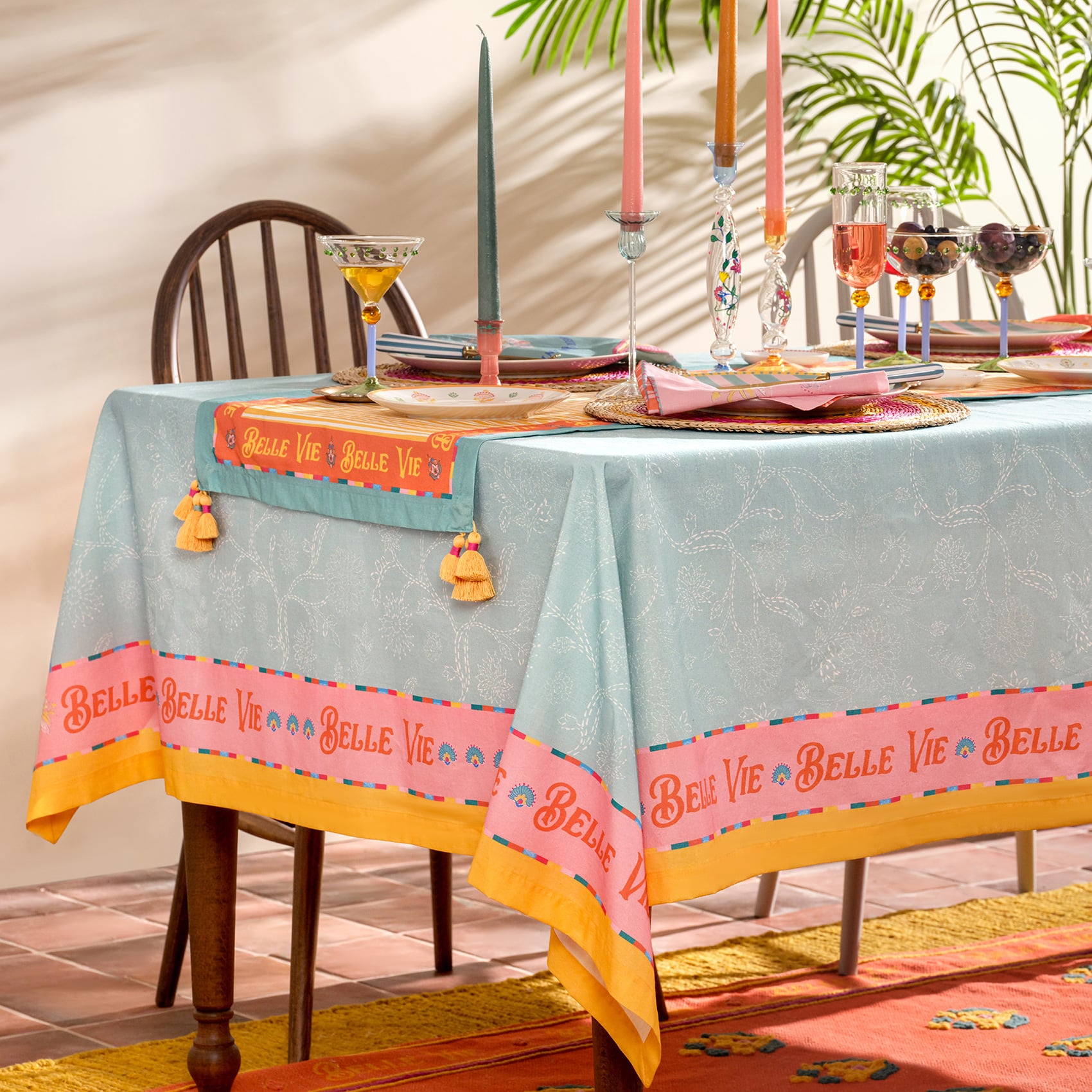 Nilüfer masa örtüsü, Heritage koleksiyonunun otantik hikâyesini sofranıza taşıyor. “Belle Vie” yazılı bordürü, geçmişten fısıldayan desenleri ve modern dokunuşlarıyla her masanın modunu yükseltiyor; yaşam alanlarını sofistike bir boyuta taşıyor. %100 pamuk dokusu ve ince işçiliği, davet sofralarına karakter ve zamansız bir şıklık katıyor. 160x240 cm ölçüsündedir. Türkiye’de tasarlandı ve üretildi.