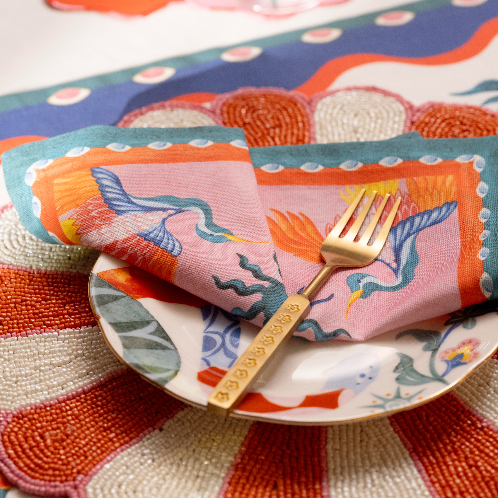 Sofranıza enerji ve neşe katmak için tasarlanan Nilüfer 4’lü dijital baskılı %100 pamuk peçete seti, karakteri güçlü, detayları cesur ve tam anlamıyla dikkat çekici. Türkiye’de tasarlanıp üretilen, doğal pamuktan dokunan bu set, canlı renkler, neşeli motifler ve muzip ifadelerle yemek saatlerinize hareket katıyor. Sofranızı renklendirin, desenleri özgürce kombinleyin ve yemek saatlerinizi stil sahibi bir kutlamaya dönüştürün. Çünkü Nilüfer’in olduğu yerde sıradanlığa yer yok!
