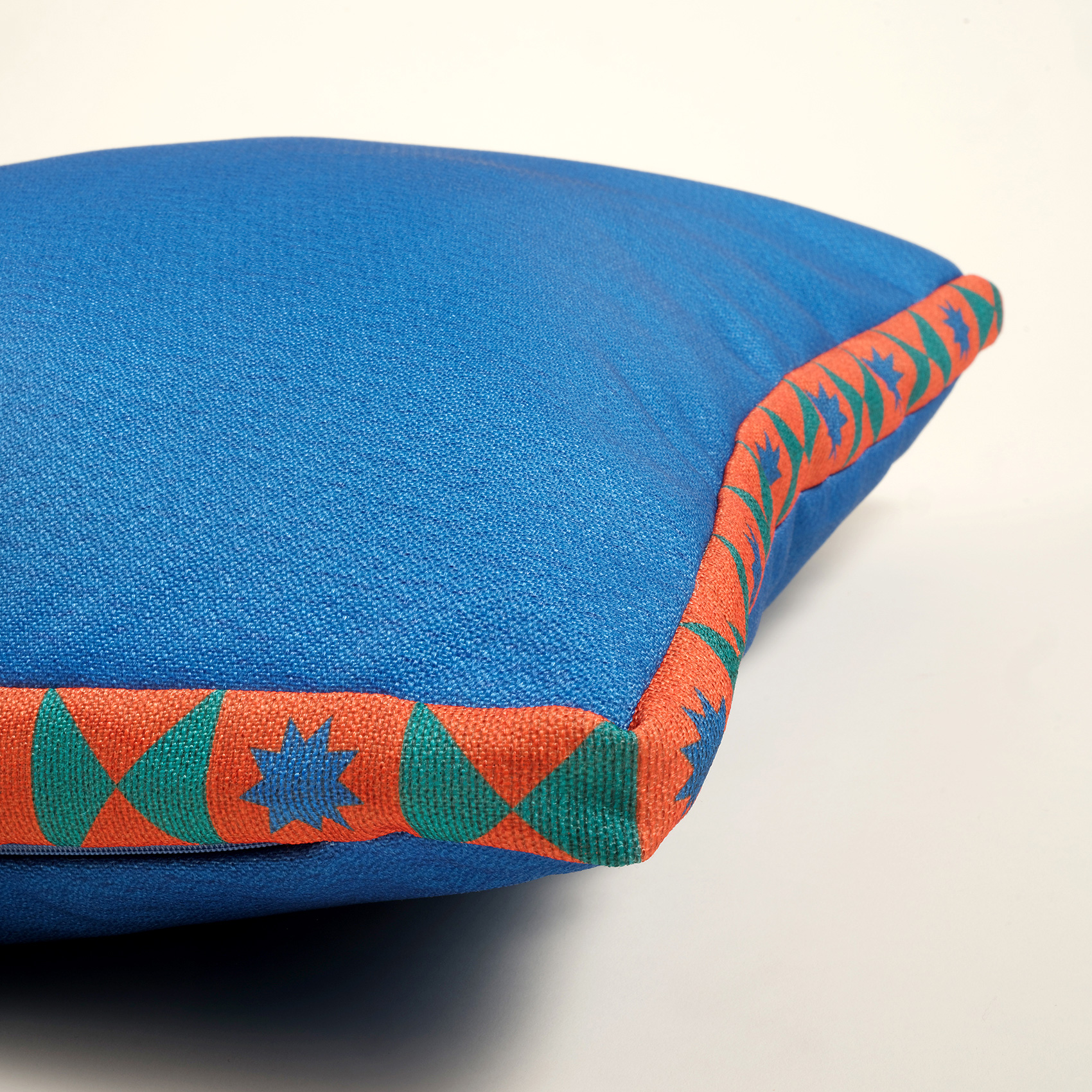 Nilüfer Dijital Baskılı Şeritli Polyester Dekoratif Kırlent 50x50 Cm Koyu Mavi
