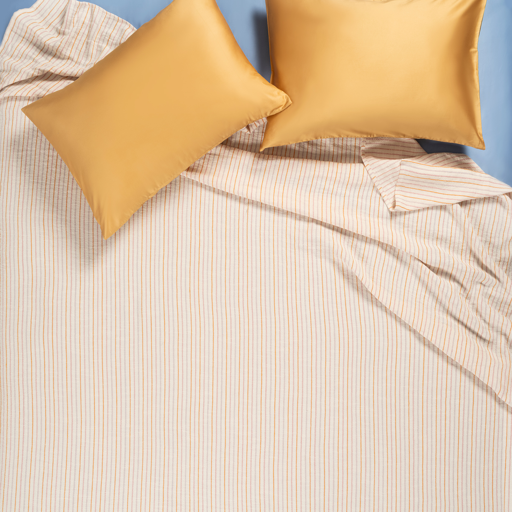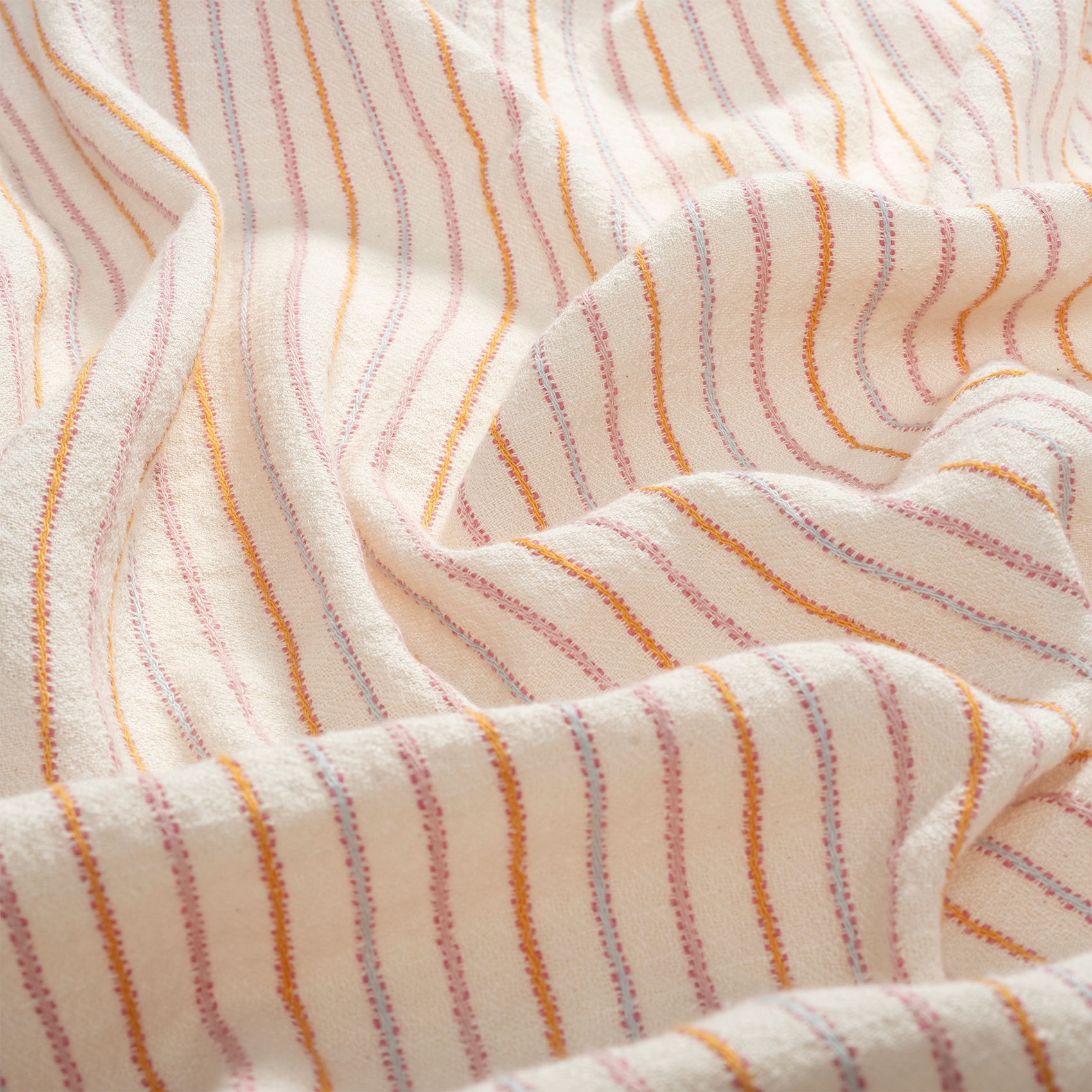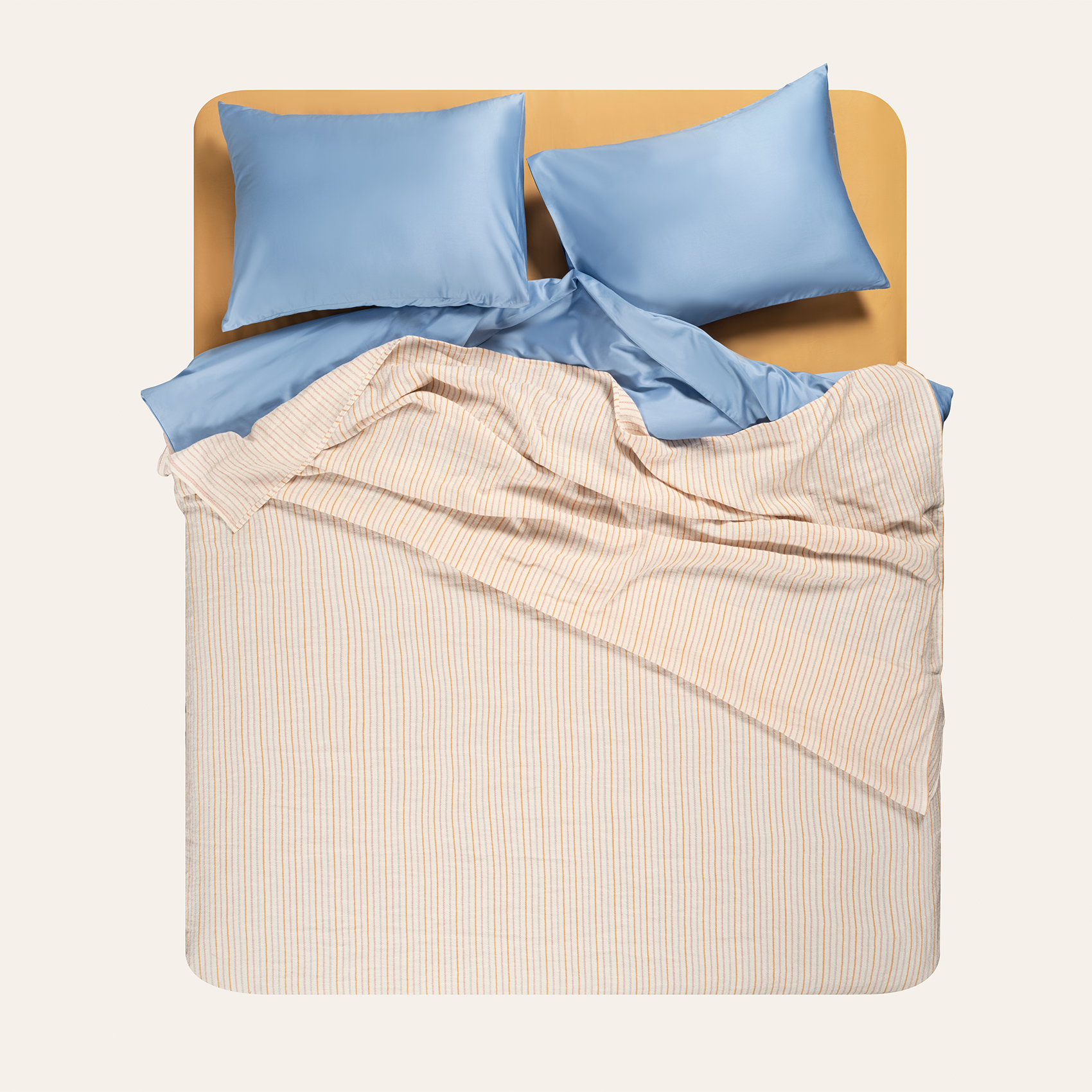 Güneşin yumuşak dokunuşunu hissettiren Nilüfer iplik boyalı pamuk keten pike, %51 keten ve %49 pamuk karışımıyla hafif, nefes alabilen ve zamansız bir konfor sunar. Türkiye’de üretilen, iplik boyalı çizgileriyle canlı ve sofistike bir hava katan bu özel dokuma, her dokunuşta daha da güzelleşir. Sıcak yaz gecelerinde serin, serin havalarda ise tam kıvamında bir sıcaklık sağlar. Yatağınızda, koltuğunuzda ya da keyifli bir piknikte; Nilüfer bulunduğu her yere ferahlık ve stil katmaya hazır!
