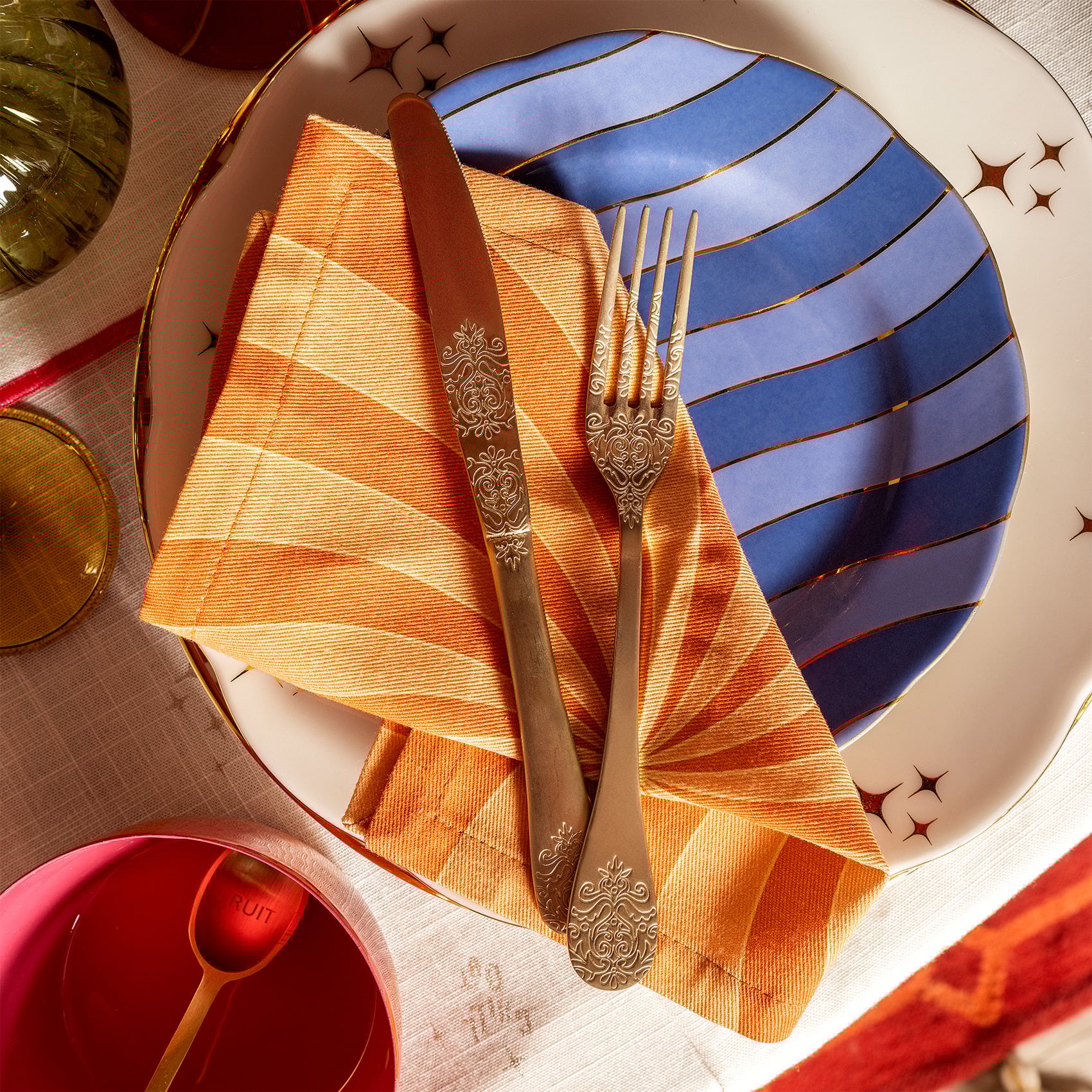 Sofralarınıza biraz renk mi lazım? İşte karşınızda Funfair koleksiyonundan Nilüfer peçete seti! Turuncu ve mavi tonlarıyla adeta bir renk festivali başlatan bu set, her sofraya neşe katıyor. Dört peçeteden oluşan bu set, %100 sürdürülebilir pamuktan üretildiği için yumuşacık dokularıyla konforlu bir deneyim sunuyor. İki peçete dijital baskısıyla renk cümbüşüne girerken, diğer ikisi zarif nakışlarıyla büyülüyor. 25x25 cm boyutlarındadır ve özel kutusuyla sofranıza eğlenceli bir şıklık getirir.