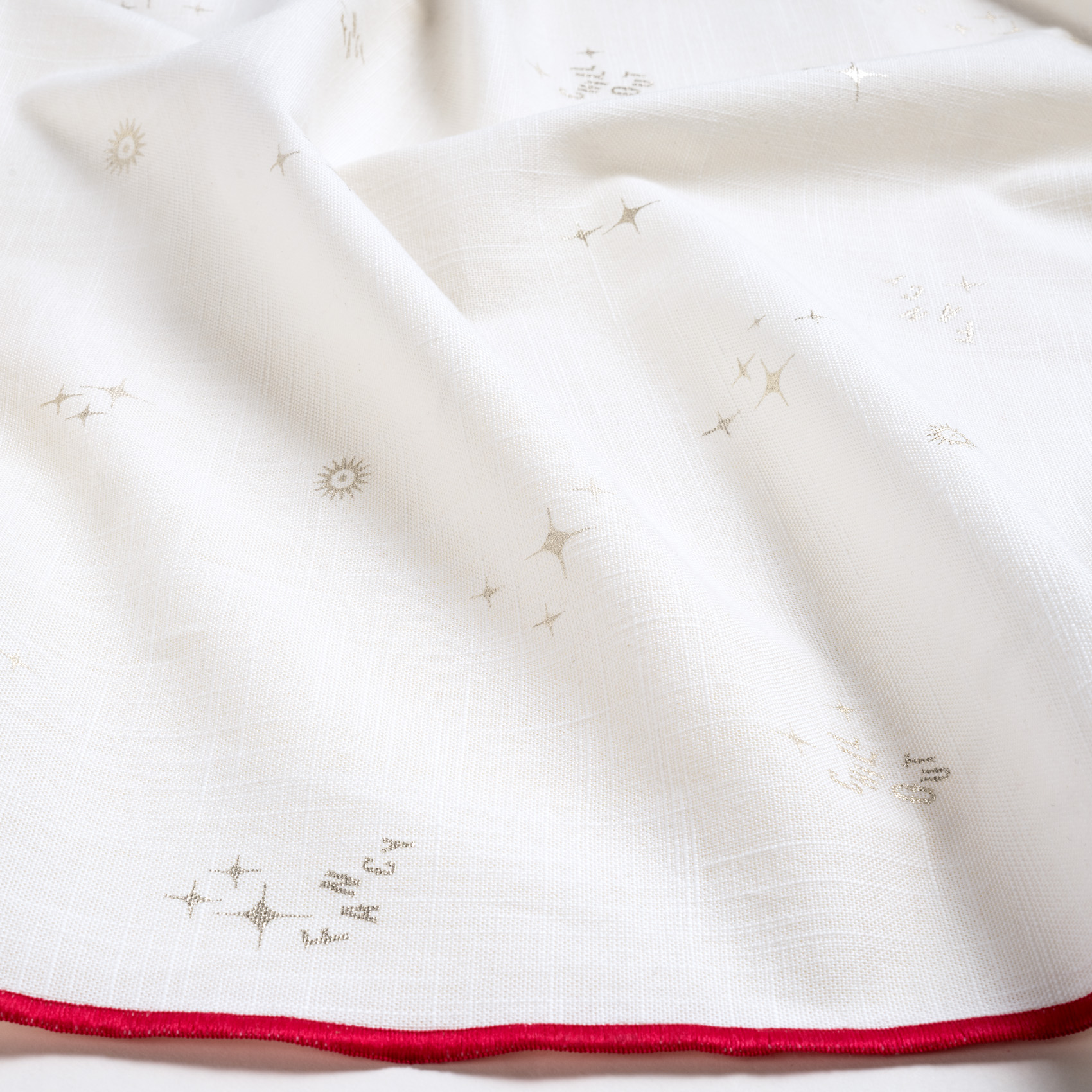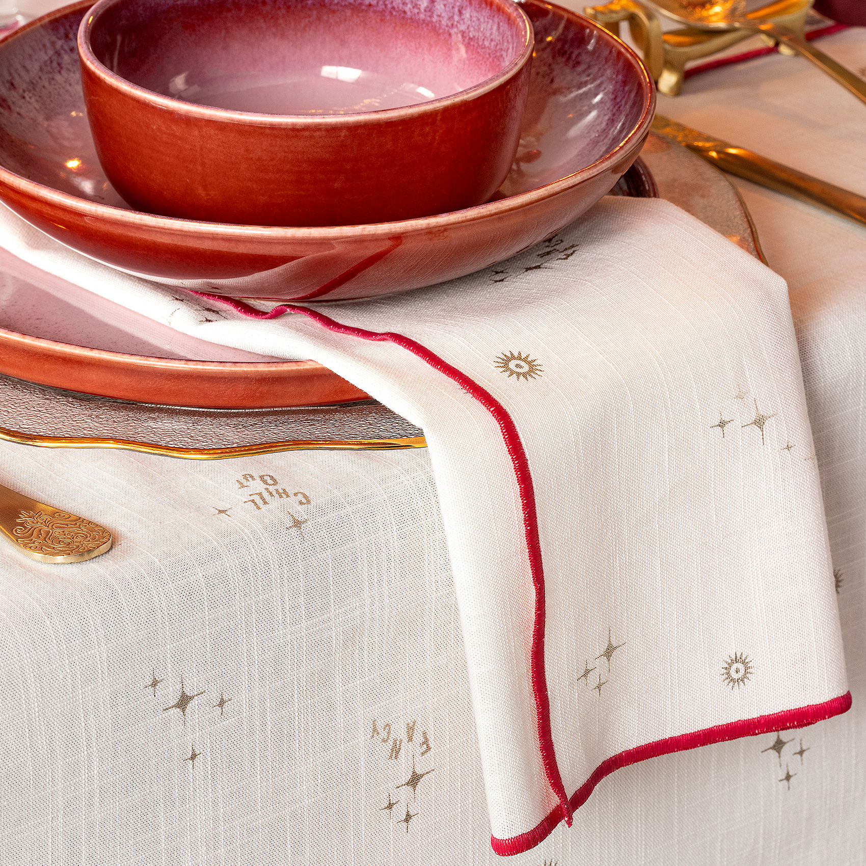 Funfair koleksiyonunun neşeli ruhunu sofralarınıza taşıyan Nilüfer peçete, altın varak baskılarıyla zarafeti sade bir şıklıkla buluşturuyor. %100 sürdürülebilir pamuktan üretilmiş olan bu peçete, ekru rengiyle masalarınıza zarif bir dokunuş katarken, çevreye duyarlılığıyla da gönülleri fethediyor. 45x45 cm boyutlarındaki Nilüfer peçete, hem günlük sofralarınıza şık bir hava katacak hem de özel davetlerin göz alıcı parçası olacak.
