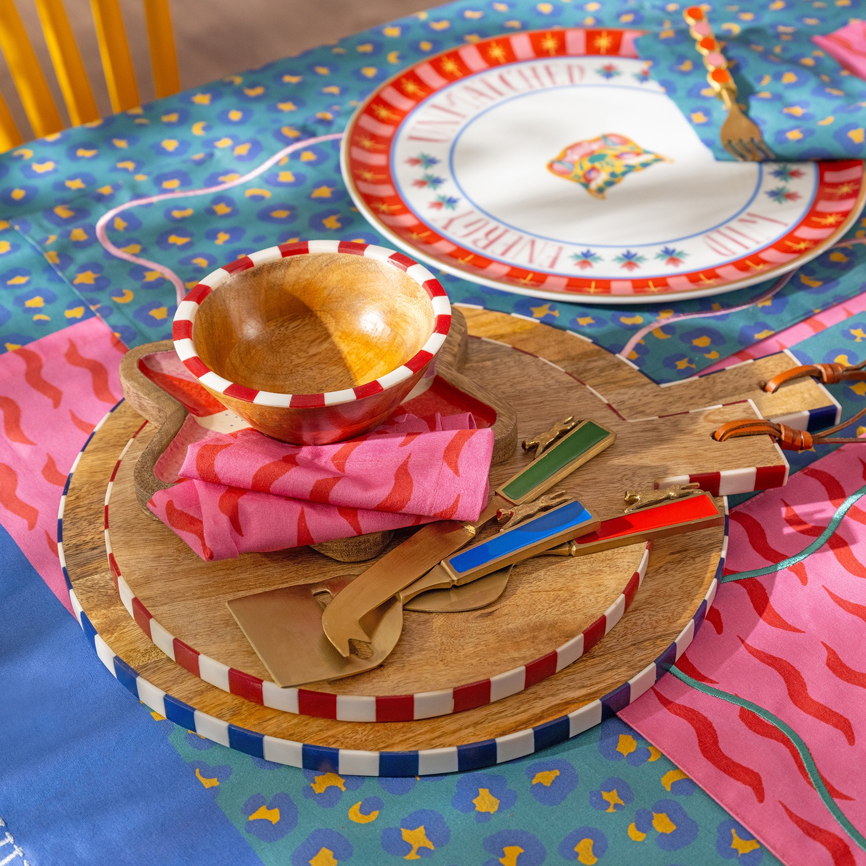 Tatlı mı tatlı! Hindistan’da usta zanaatkârlar tarafından elde şekillendirilen Nohar sunum tahtası, reçine kenarları ve özgün formuyla hayatınıza renk katmaya geliyor. Mango ağacının doğal tonlarıyla birleşen bu oyunbaz parça, peynir tabaklarına, kek dilimlerine ve meyve şölenlerine capcanlı bir zemin sunar. Elde yıkayın, nazikçe kurulayın.