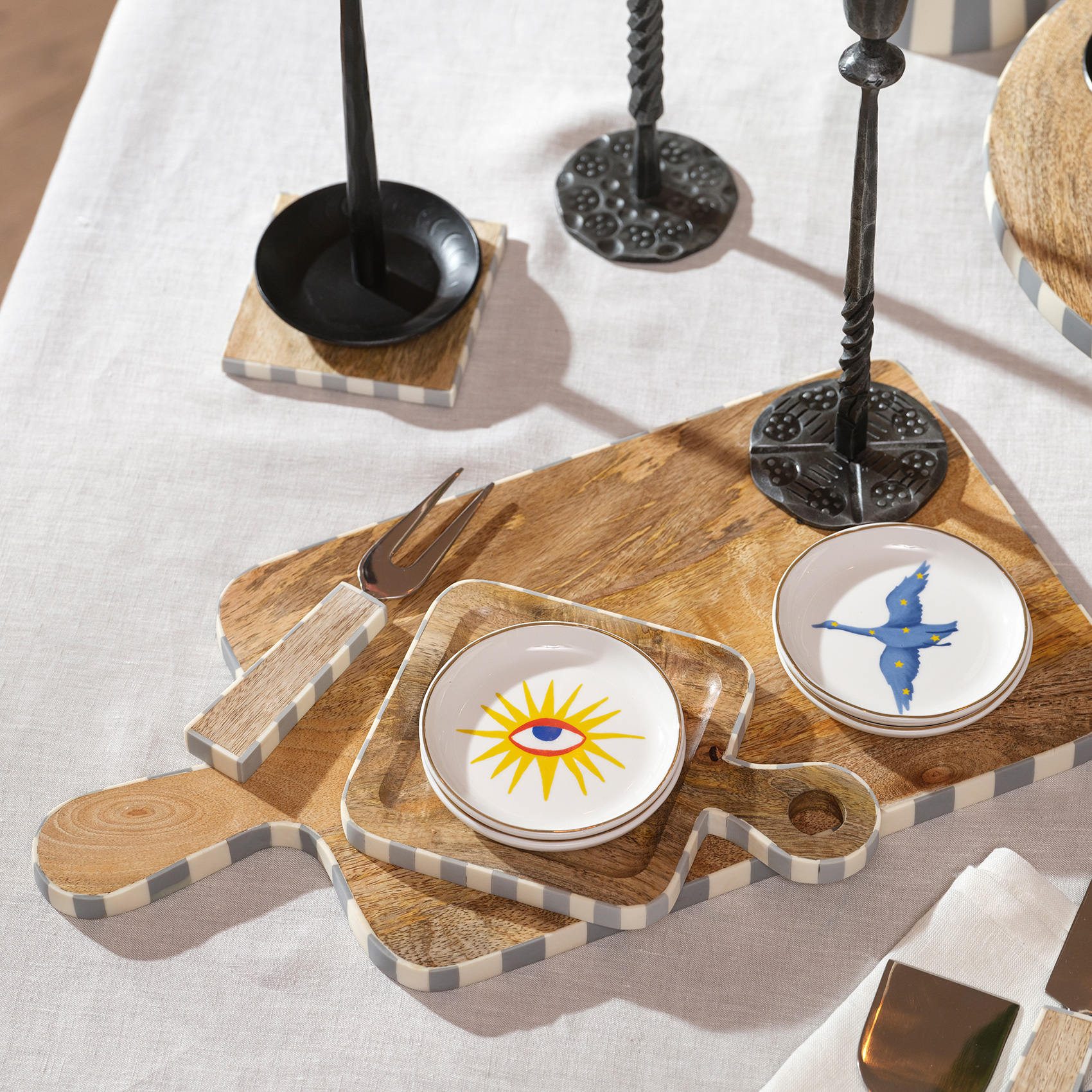 Lezzet dolu anlarınıza zarif bir dokunuş katmanın şimdi tam zamanı! Nohar dikdörtgen sunum tahtası, mango ağacının doğal sıcaklığı ile gri ve krem reçine kakma detaylarını buluşturarak sofralara çağdaş bir stil kazandırıyor. Geleneksel tekniklerle işlenen ince detaylar ve el işçiliğinin ustalığı, her parçaya kendine özgü bir karakter katıyor. Hindistan’da yetenekli zanaatkârlar tarafından sürdürülebilir mango ağacından özenle üretildi. Nohar, Zsa Zsa Zsu’nun çevre dostu tasarımlara hayat veren Natural koleksiyonunun en dikkat çekici parçalarından biri. Uzun ömürlü kullanım için elde yıkamanızı öneriyoruz.