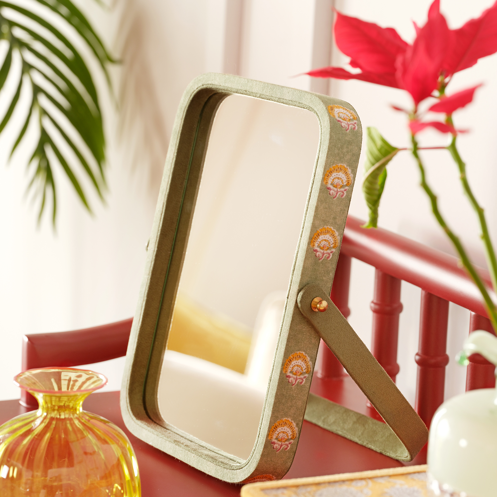Noida ayna, Hindistan’ın geleneksel el sanatı estetiğini yaşam alanlarınıza getiriyor. Ahşap baskı tekniğinden ilham alan etnik desenlere sahip %100 pamuk kumaşla kaplanmış olan bu ayna, her kullanımda size özgün bir stil sunuyor. Fonksiyonel katlanabilir tasarımı, aynayı günlük bakımınız için pratik bir seçim haline getiriyor. Noida ayna ile hem işlevselliği hem de artizan dokunuşları bir arada deneyimleyin.