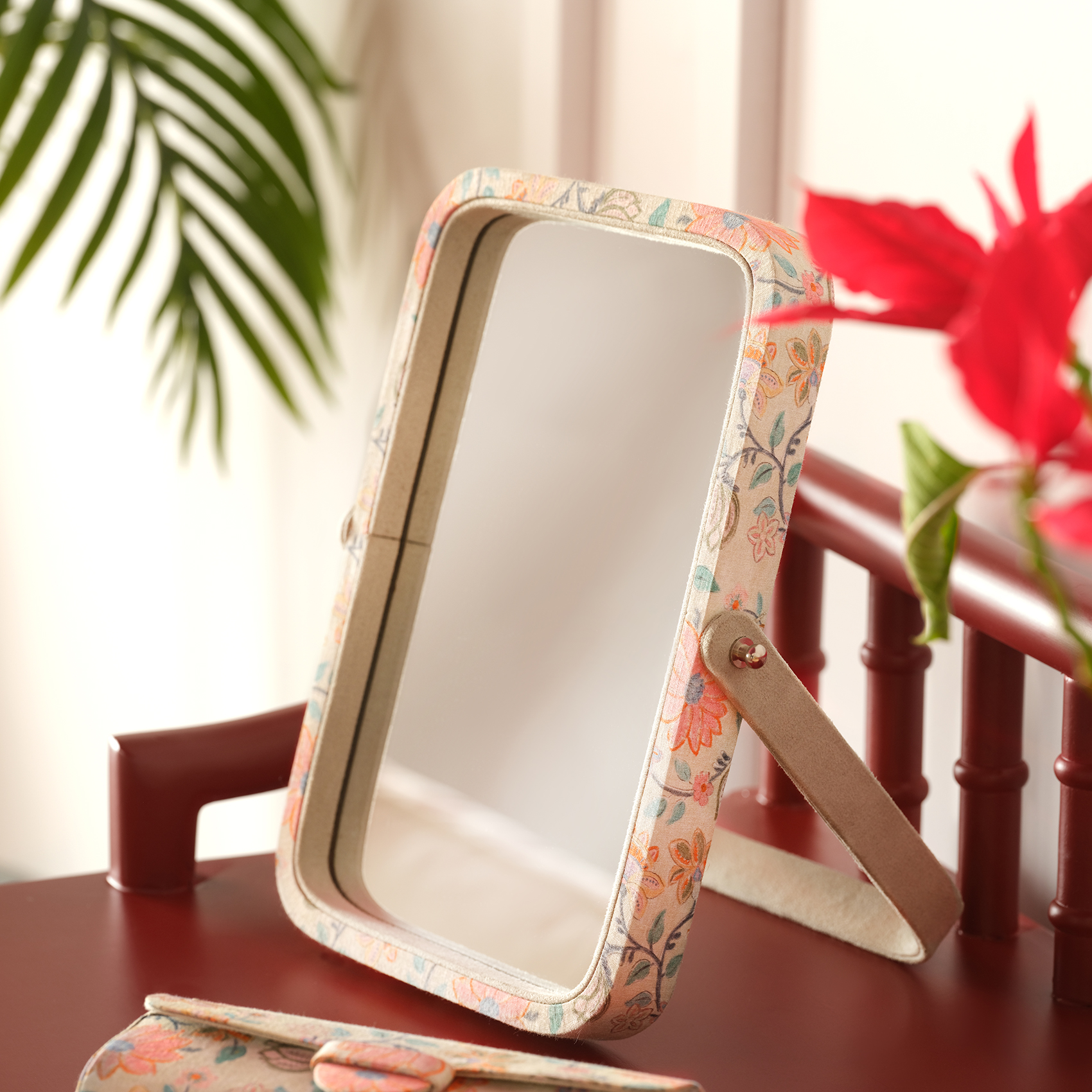 Heritage koleksiyonunun bir parçası olan bu zarif ayna, yetenekli Zsa Zsa Zsu tasarımcılarının imzasını taşıyan desenlere sahip. El çizimi desenler, yüksek kaliteli malzemeler üzerine titizlikle dijital baskı tekniği ile uygulanmıştır, bu da hem dayanıklılık hem de estetik çekicilik sağlar. Hindistan’da üretilen Noida ayna; işlevsel amacının yanı sıra makyaj masanıza sofistike bir şıklık da katıyor.