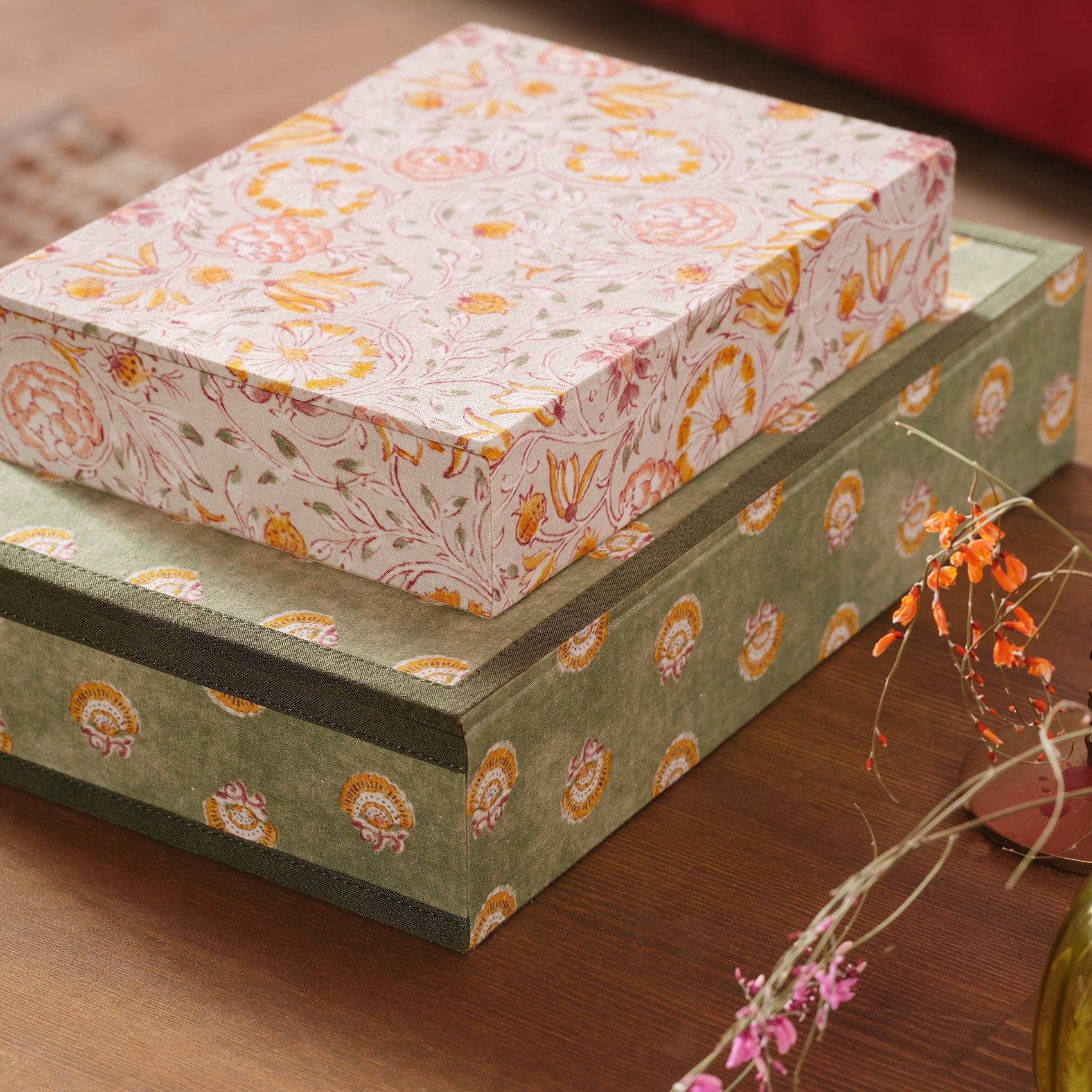 Noıda Baskılı Pamuk Dekoratif Kutu 22.20x16.80 Cm Orman Yeşilı