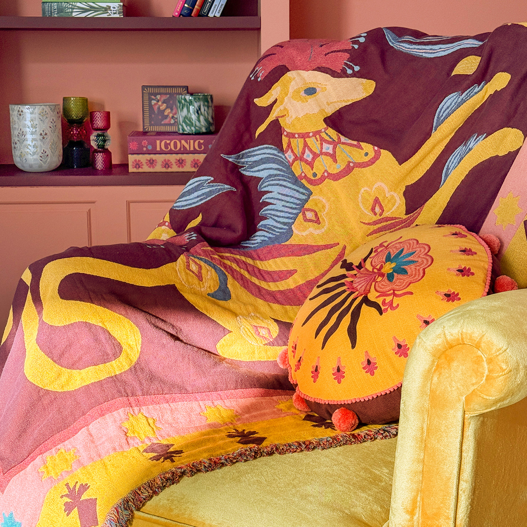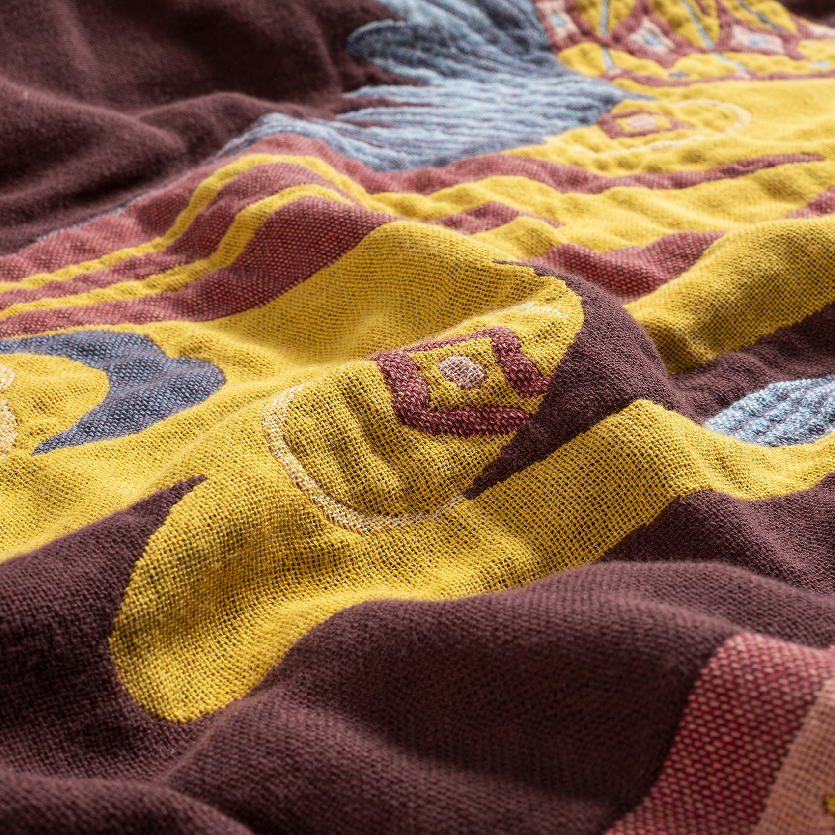Zsa Zsa Zsu’nun Maximalist koleksiyonunun enerjisini yansıtan Novelas saçaklı jakarlı %100 pamuk koltuk şalı, sıra dışı renk paleti ve hayal gücünü tetikleyen çarpıcı tasarımıyla tüm dikkatleri üzerine çekiyor. Novelas’ın eşsiz desenleri, dikkatle seçilmiş renk kombinasyonlarıyla buluşarak yaşam alanınıza neşe ve heyecan katıyor. Portekiz’de dokunan bu koltuk şalı, yoğun jakar yapısı ve doğal malzemesi sayesinde hem lüks bir görünüm hem de sağlamlık sunuyor. Sıra dışı ve göz alıcı bir stil için mükemmel bir tercih!