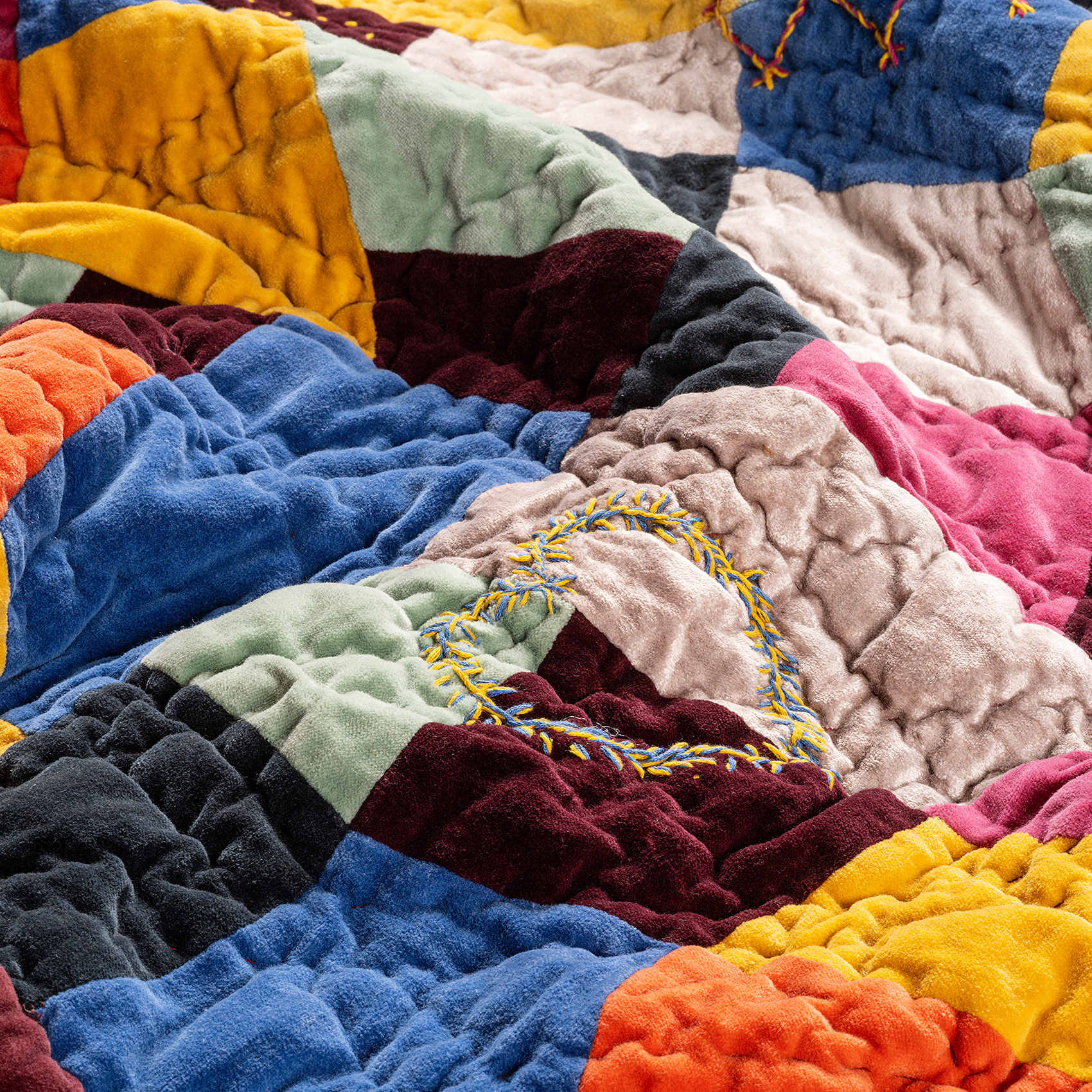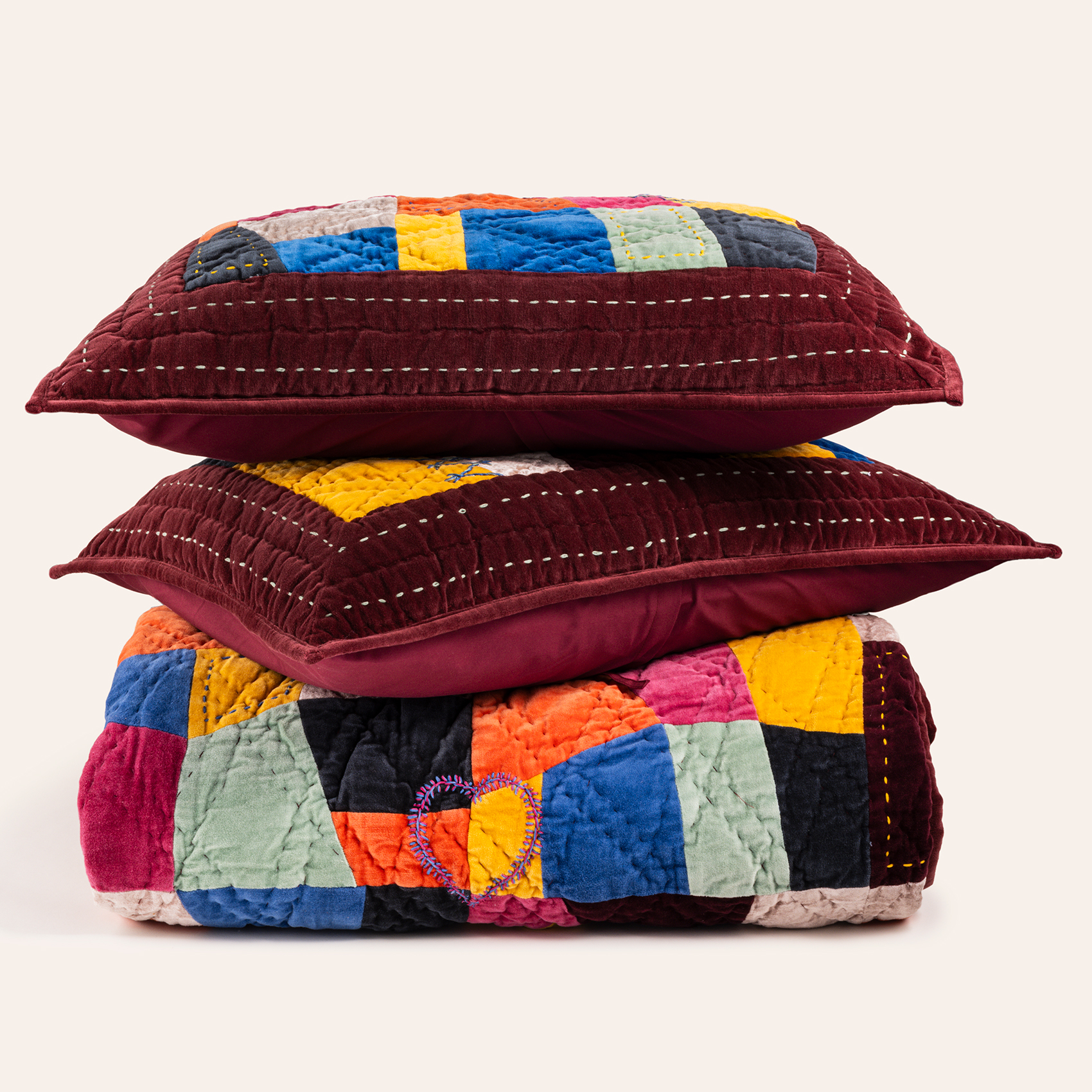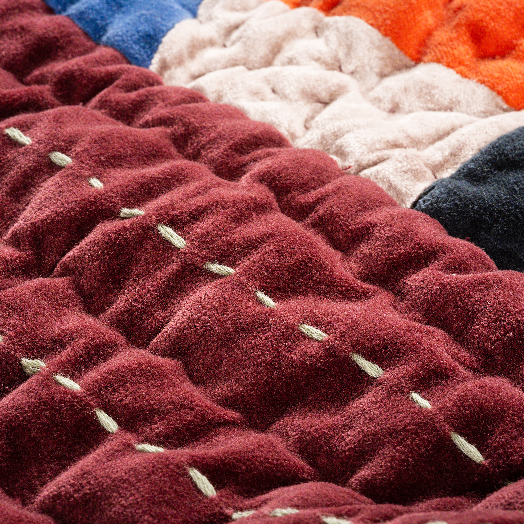 Okhla El İşi Kapitoneli Çift Kişilik Pamuk Kadife Yatak Örtüsü Seti 240x260 Cm Renkli