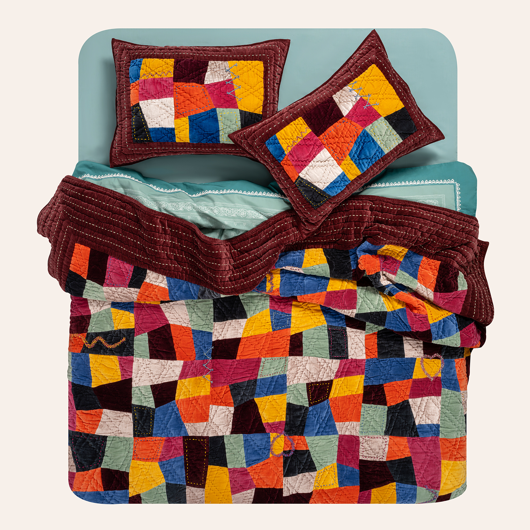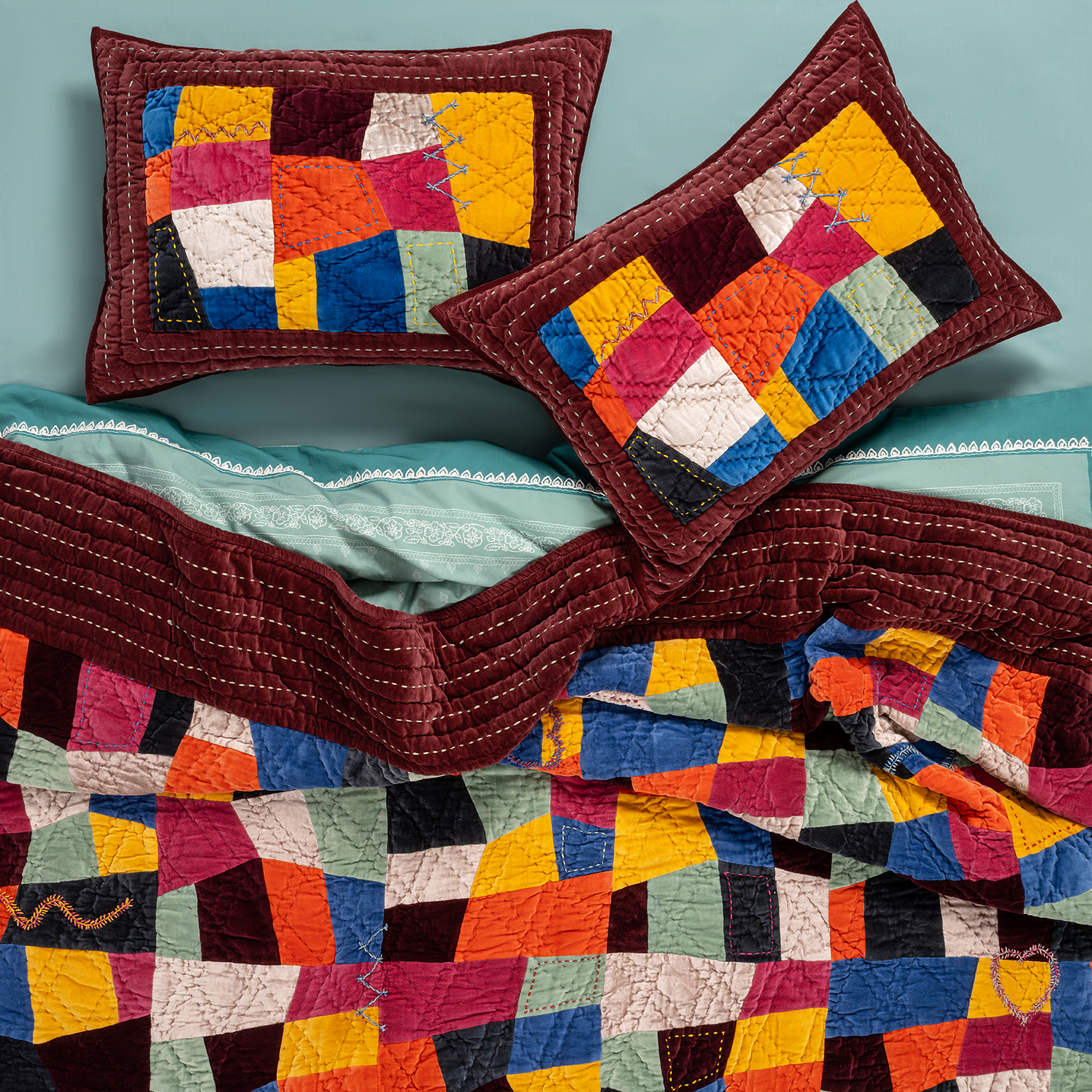 Otantik renkler çarpışıyor, ilham dolu desenler dans ediyor! Hindistan’ın usta artizanları tarafından el işiyle üretilen Okhla yatak örtüsü seti, eklektik ve sofistike Heritage koleksiyonunun kalbinden kopup gelen bir özgünlük manifestosu. Kadifenin yumuşacık dokusu, capcanlı blok renklerle buluşunca ortaya çıkan şey tek kelimeyle: heyecan. İki yastık kılıfıyla tamamlanan set, makinede 30° nazik yıkamaya uygun.