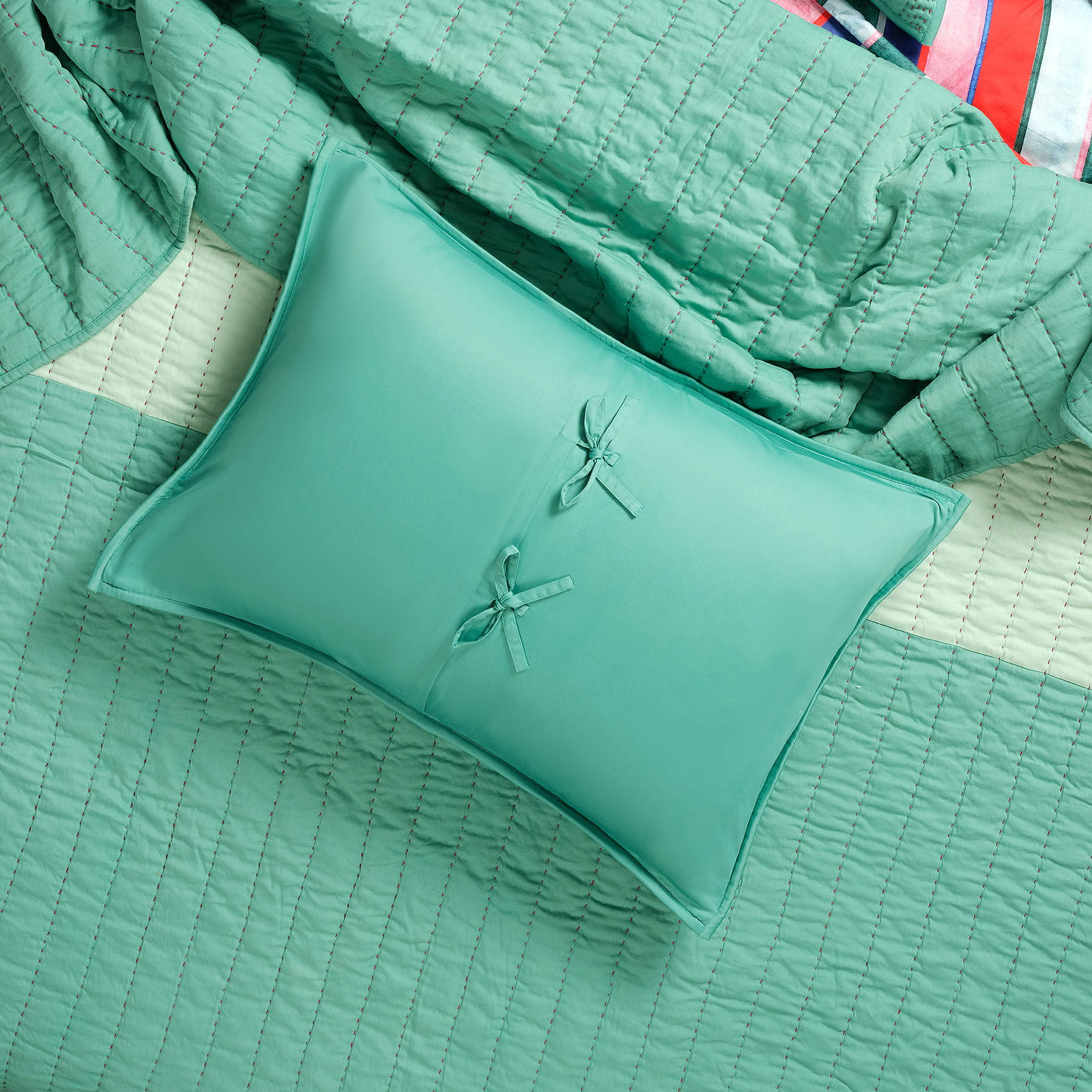 Okhla El İşi Kapitoneli Çift Kişilik Pamuk Saten Yatak Örtüsü Seti 240x260 Cm Yeşil