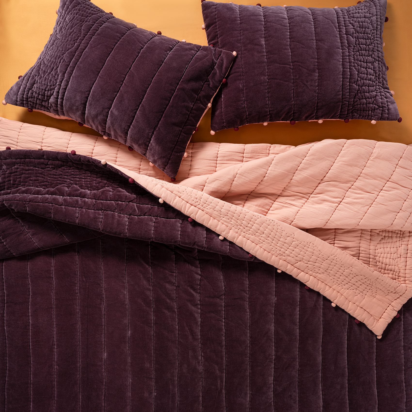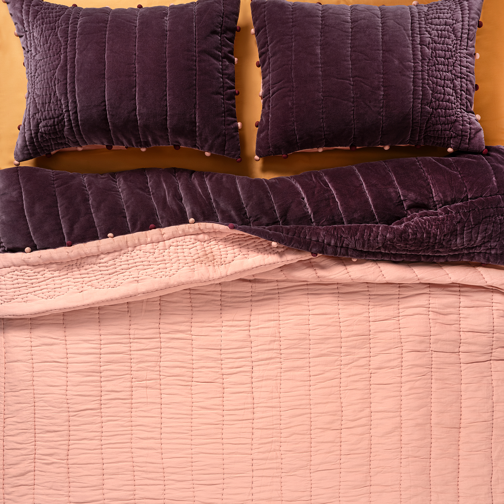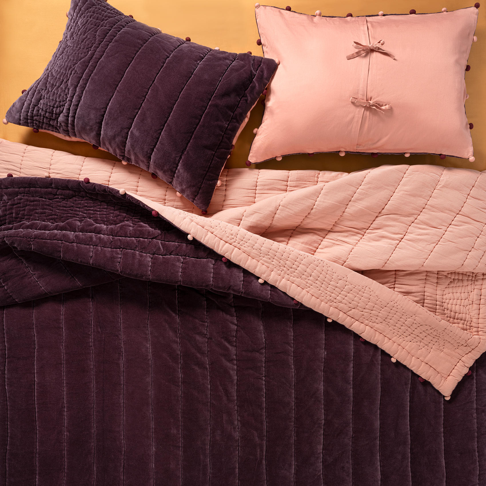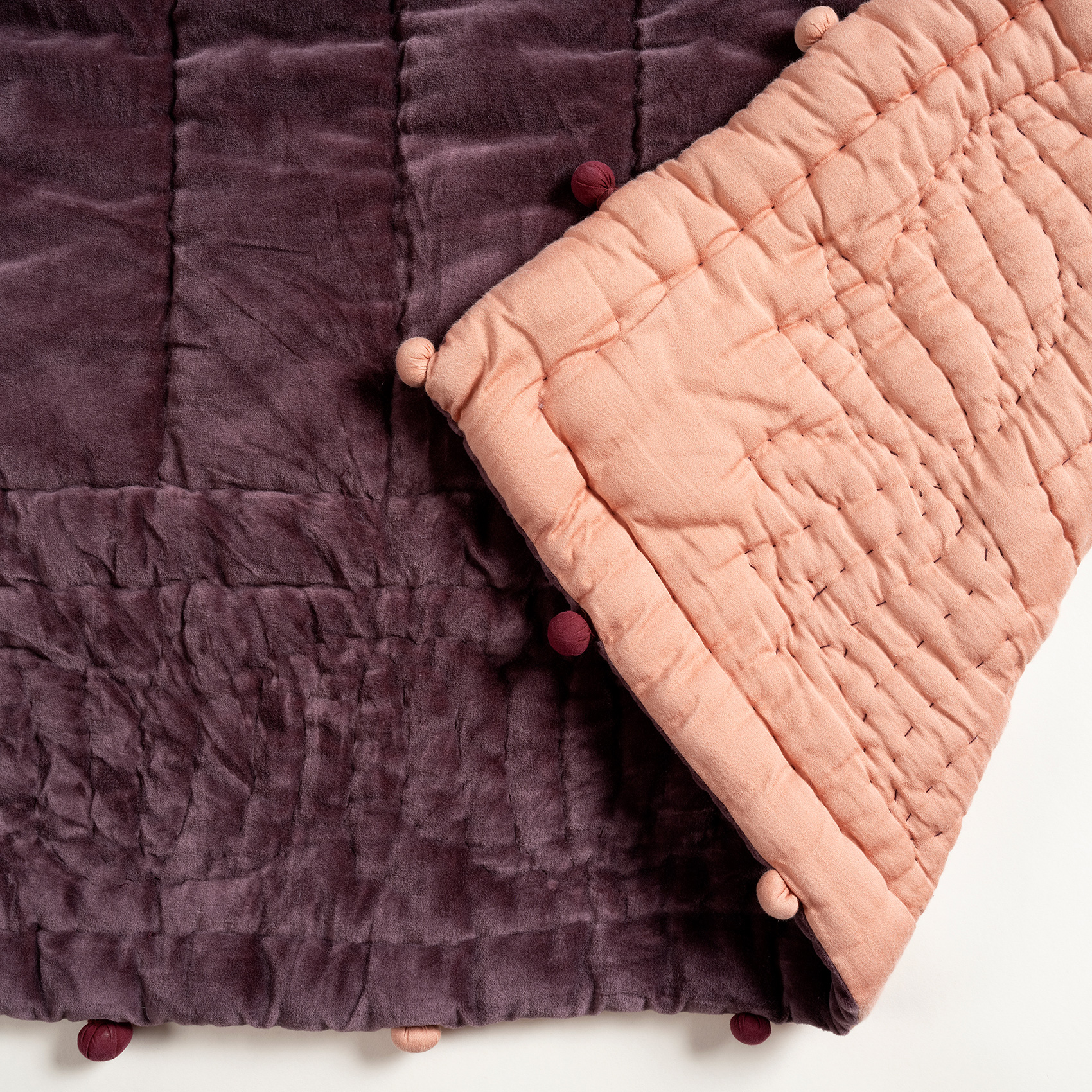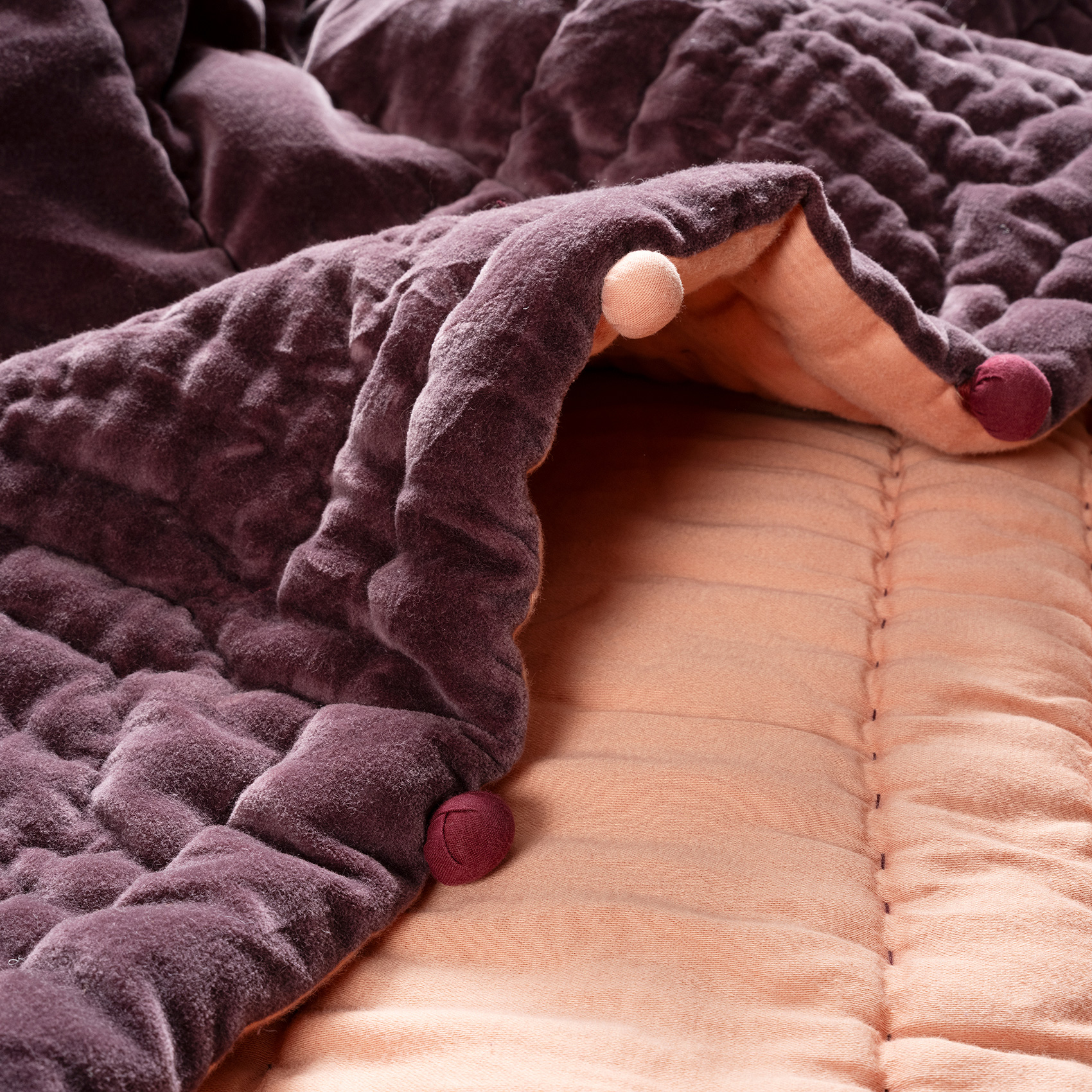 Okhla El İşi Kapitoneli Pamuk Kadife Pamuk Kadife Yatak Örtüsü Seti 260x280 Cm Vışne - Kıl
