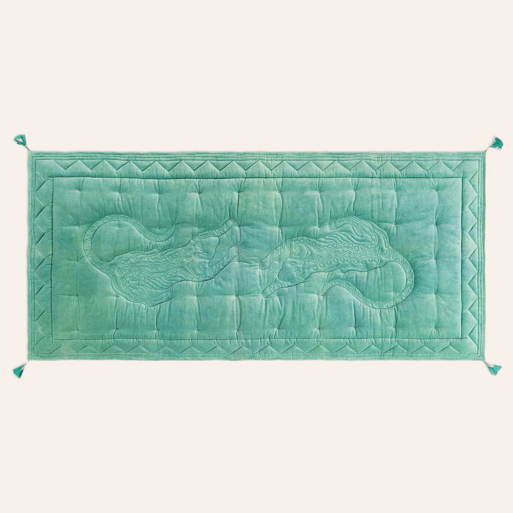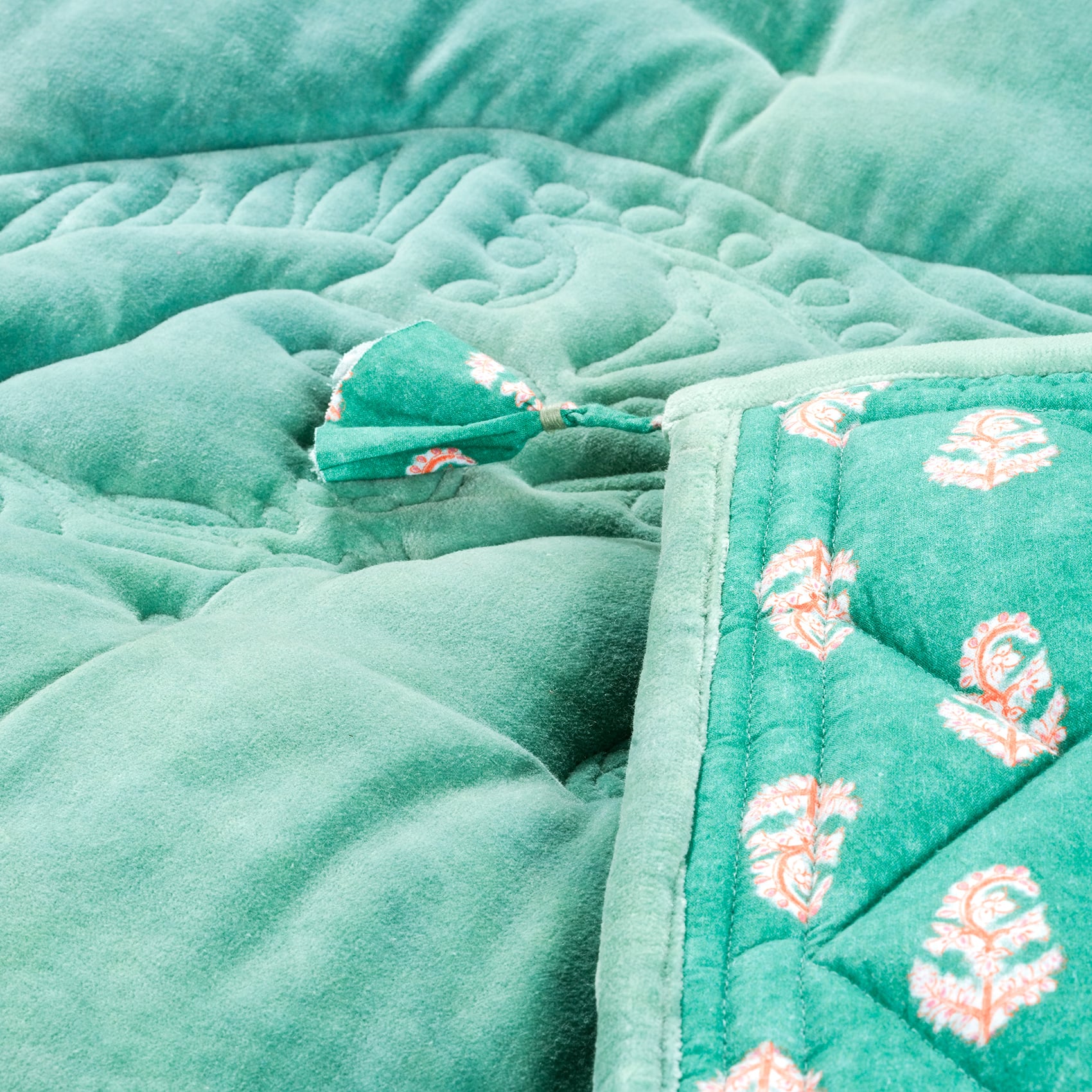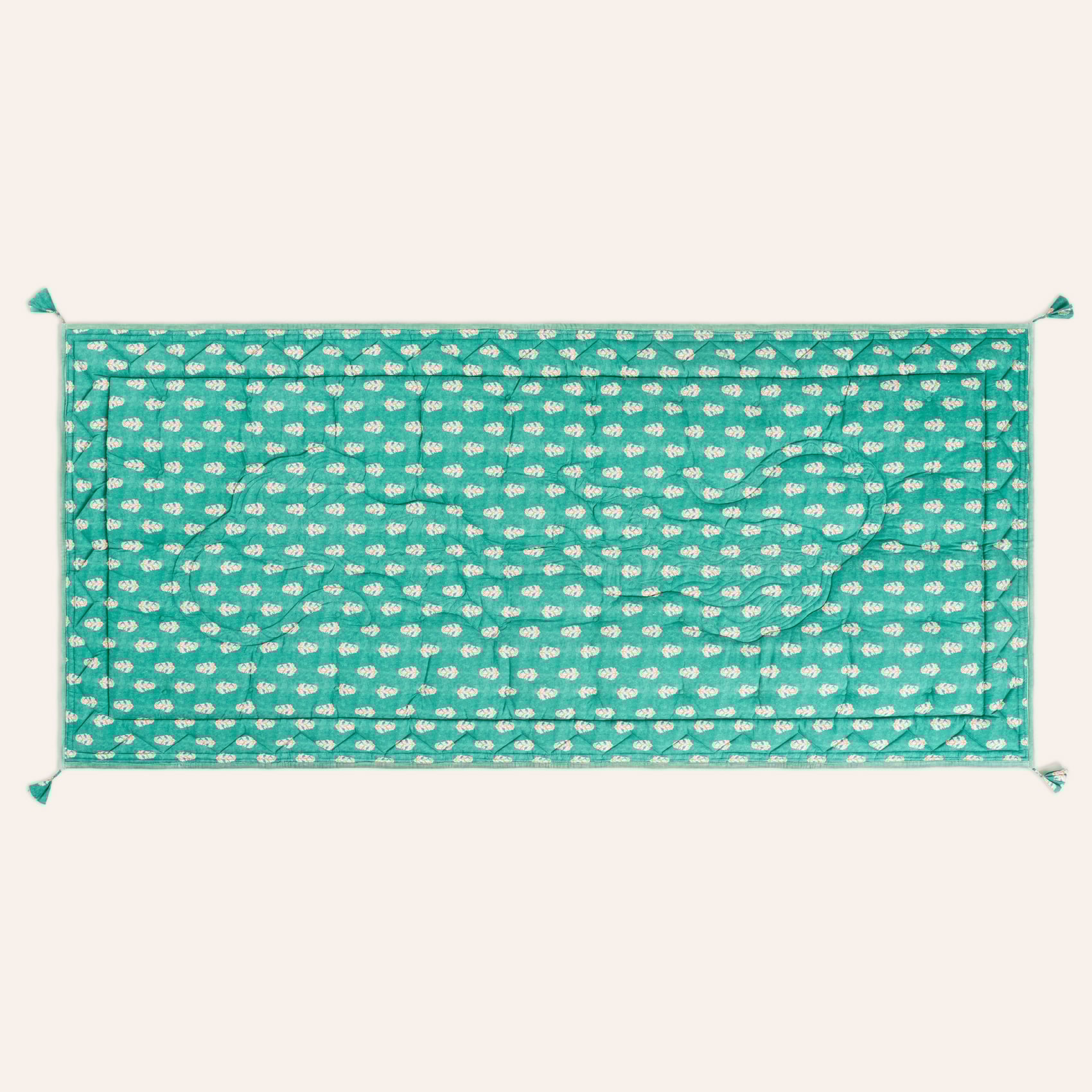 Okhla El İşi Püsküllü Kapitoneli Pamuk Kadife Koltuk Matı 85x185 Cm Yeşil