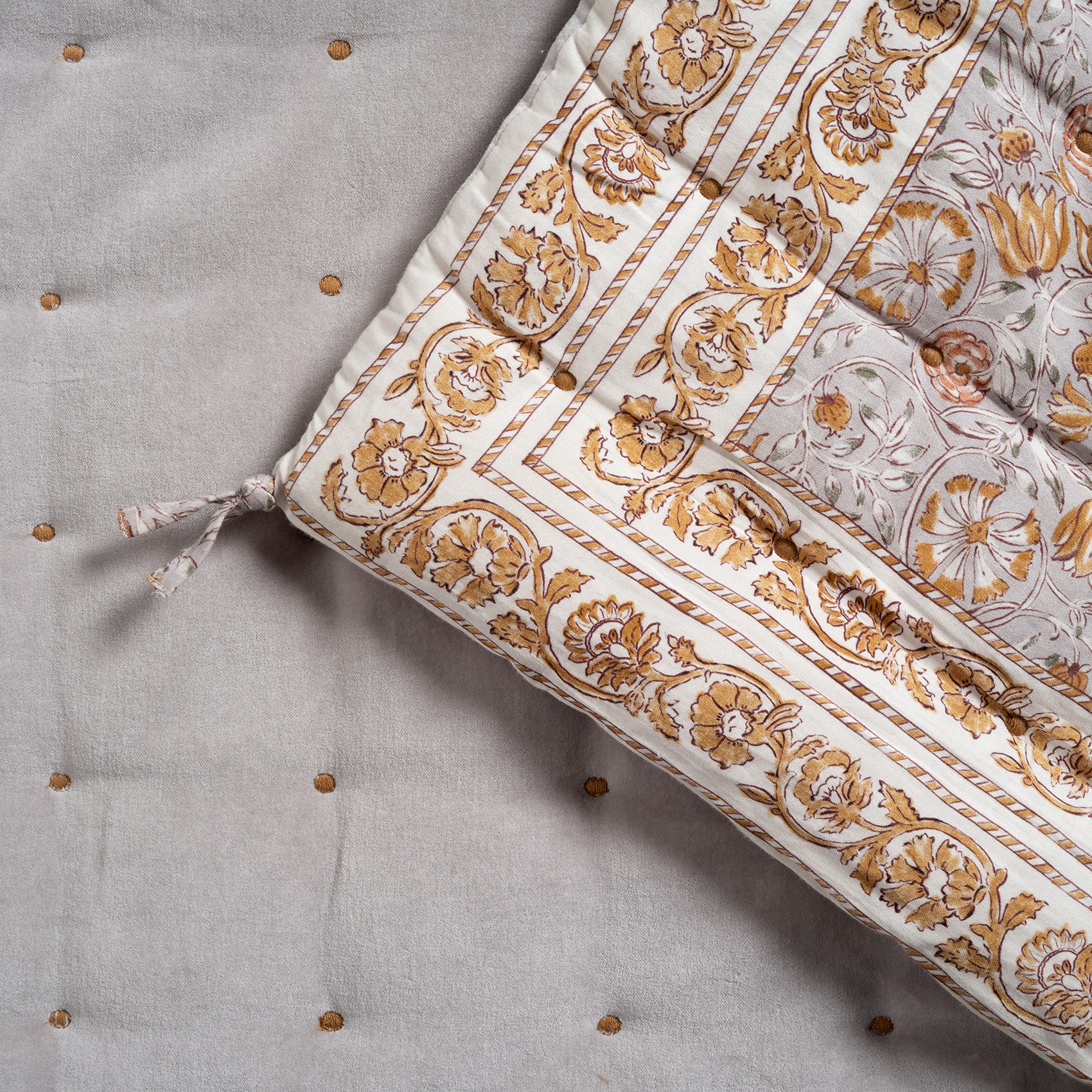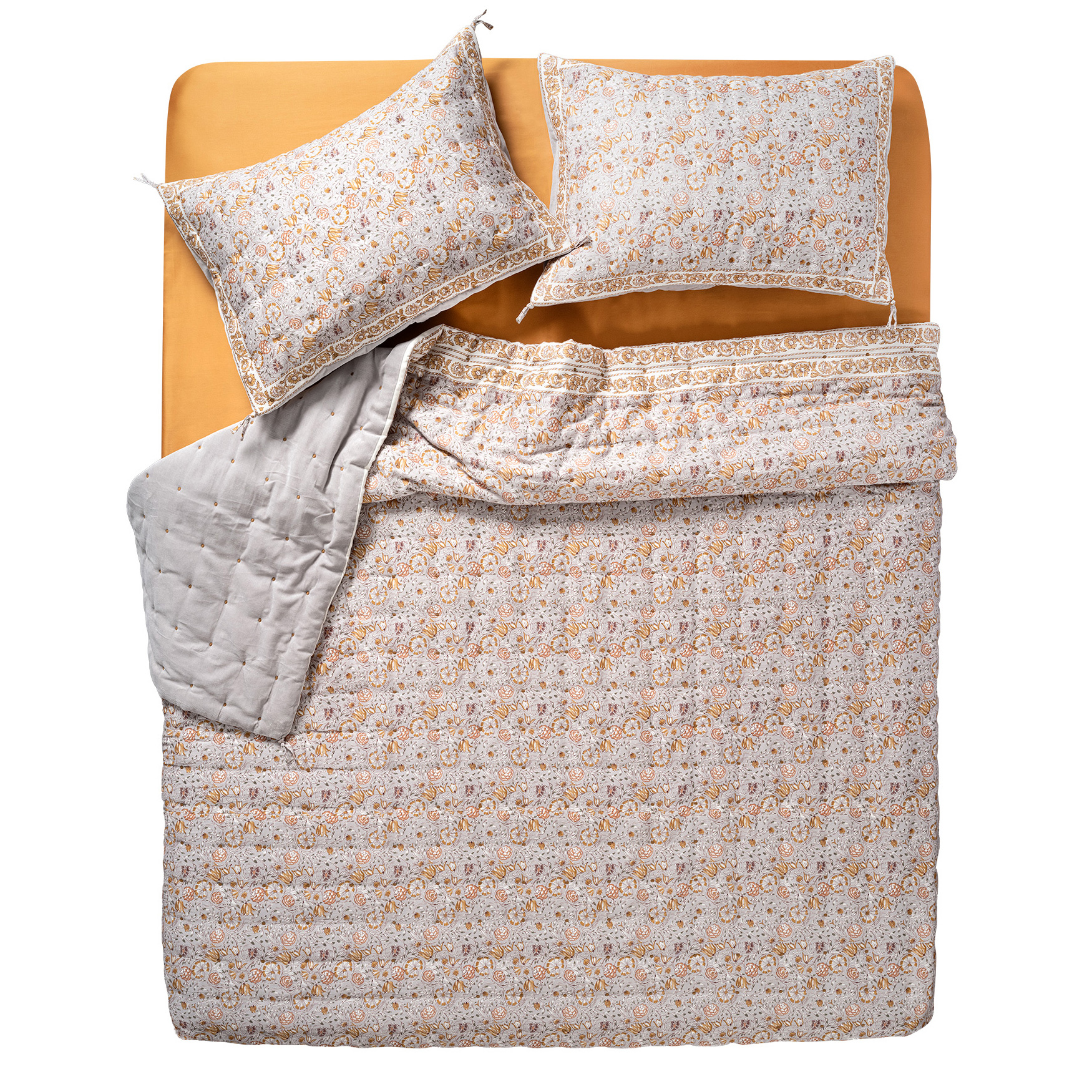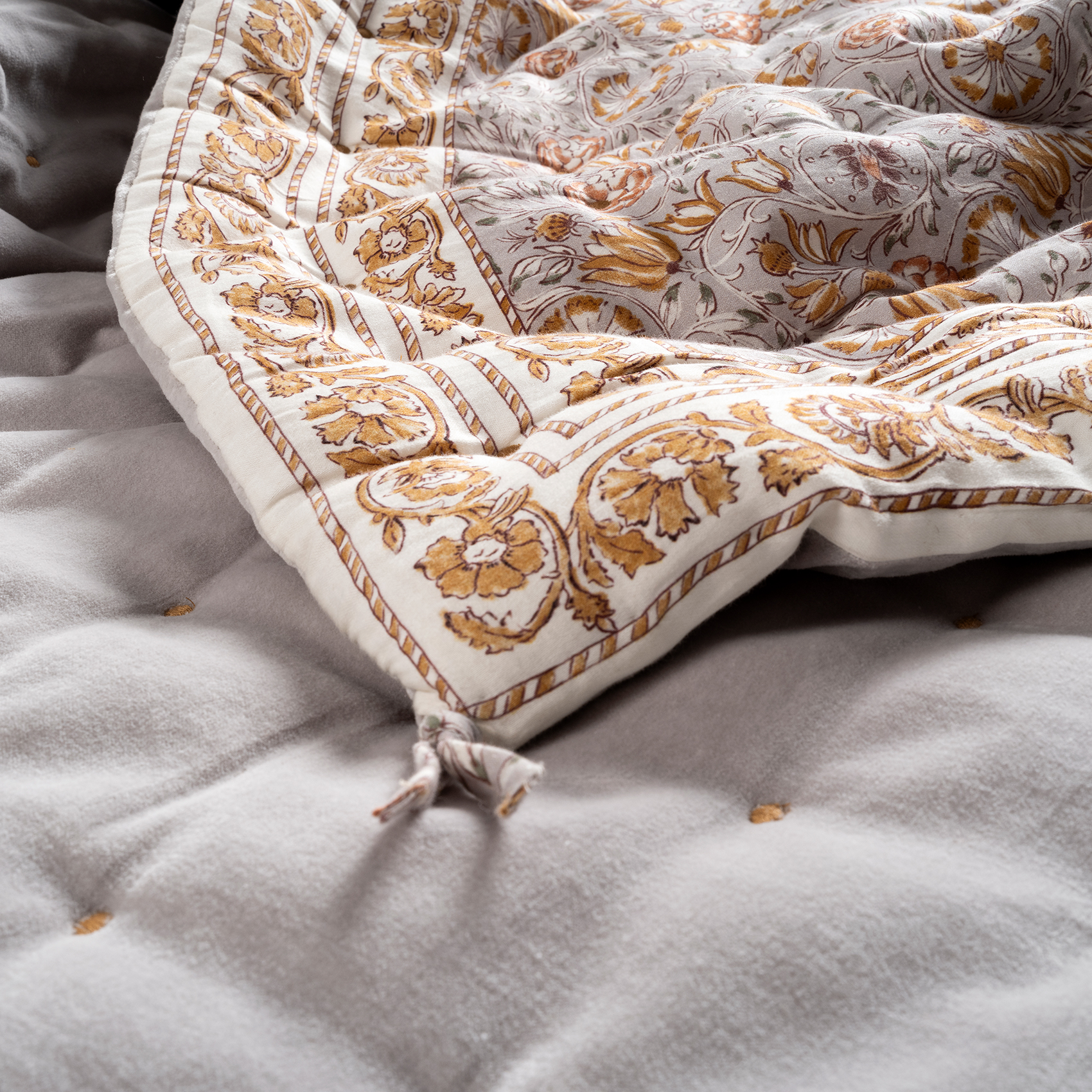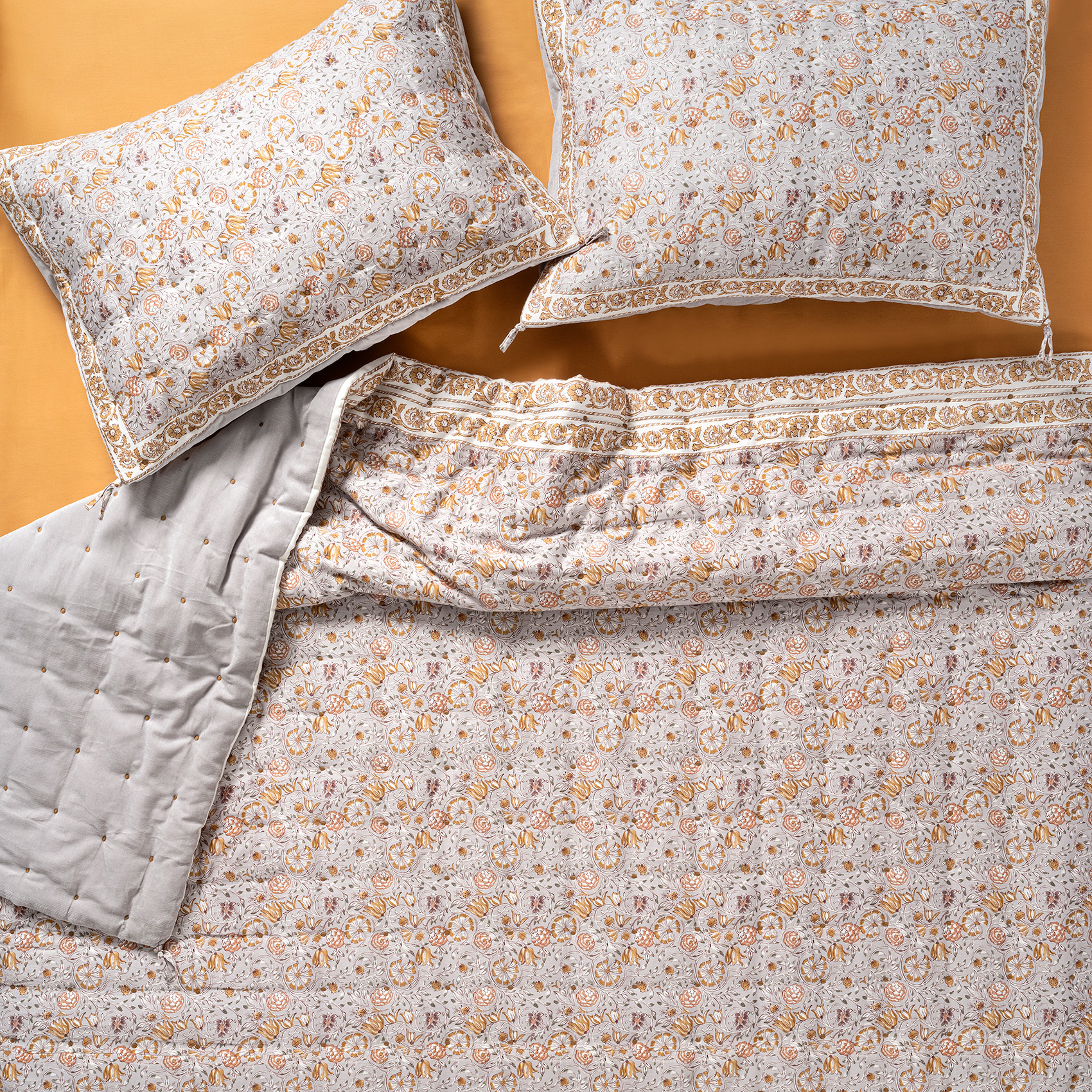 Okhla Gri Çift Kişilik Pamuk Kadife Yatak Örtüsü Seti