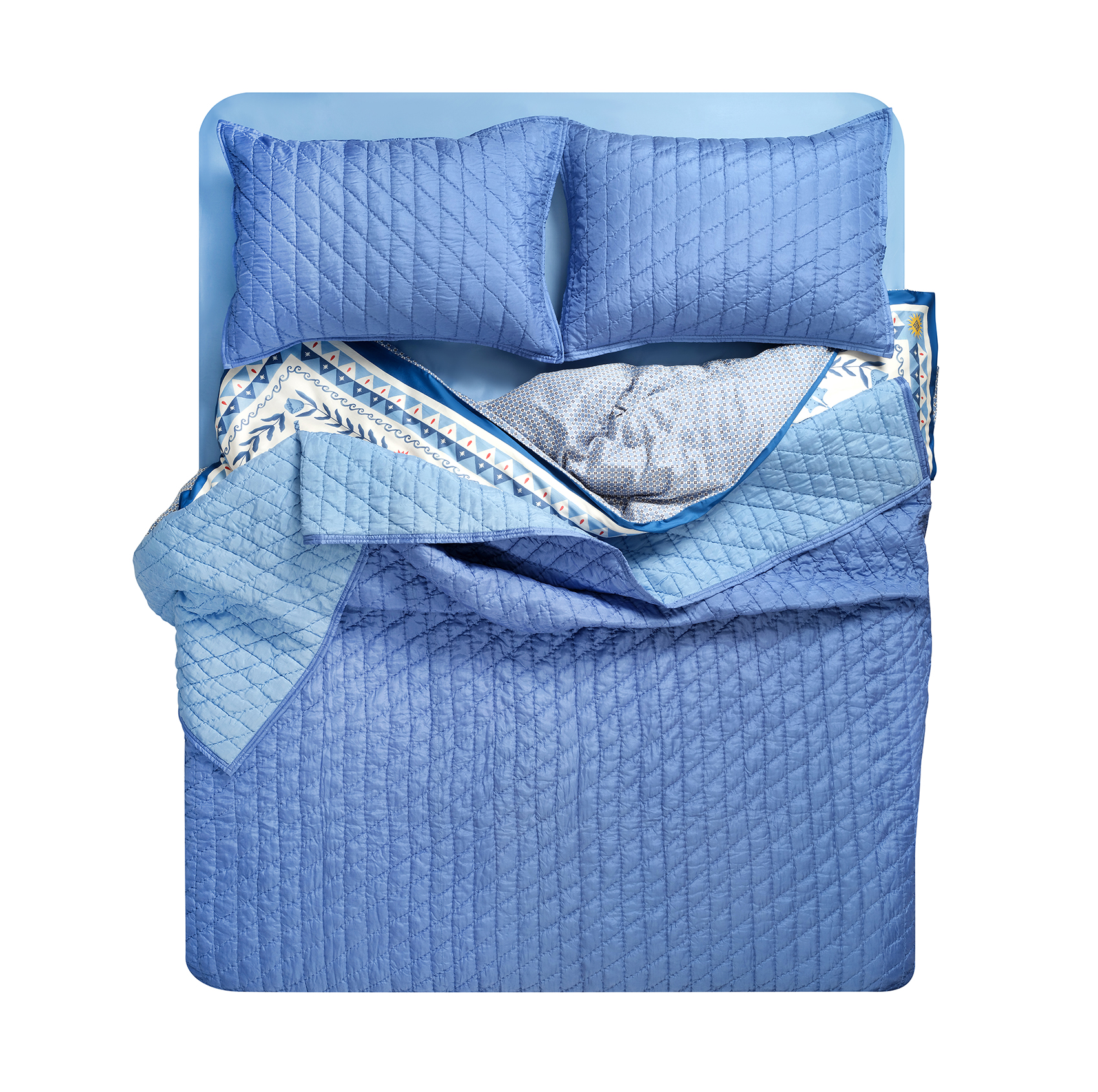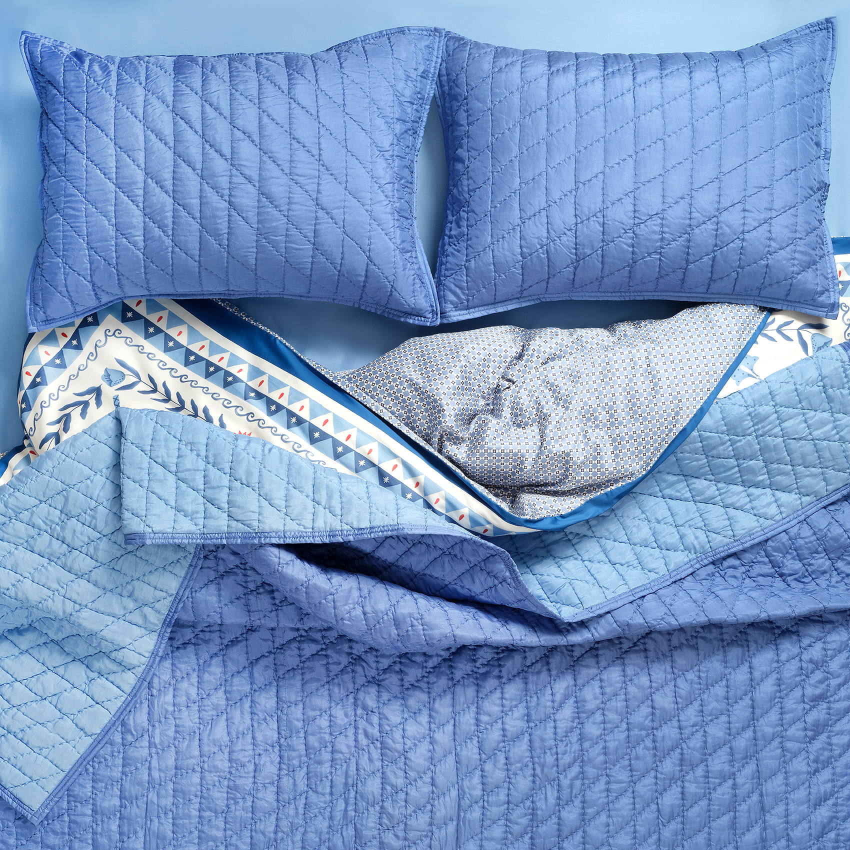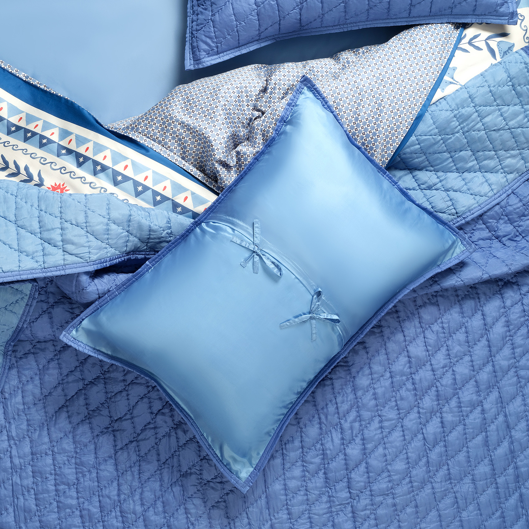 Blue koleksiyonunda yer alan Okhla %100 ipek yatak örtüsü seti ile yatak odanızı Akdeniz’in masalsı lüksüyle buluşturun. Mavi tonlarının huzuru ve %100 ipek dokunun eşsiz zarafeti, yatak odanıza konfor ve şıklık katıyor. Hindistan’da usta ellerin titizlikle ürettiği bu tasarım, Zsa Zsa Zsu’nun Blue koleksiyonunun imzasını taşıyor. Hafif dolgusuyla adeta bir bulutun yumuşak kucağında uyuyor hissine kapılacaksınız. Setin içindeki iki adet ipek yastık kılıfı, bu eşsiz deneyimi tamamlıyor. Özenli bakım şart, çünkü bu özel tasarım uzun yıllar boyunca zarafetini korumak üzere kuru temizleme ile kullanılmalı.
