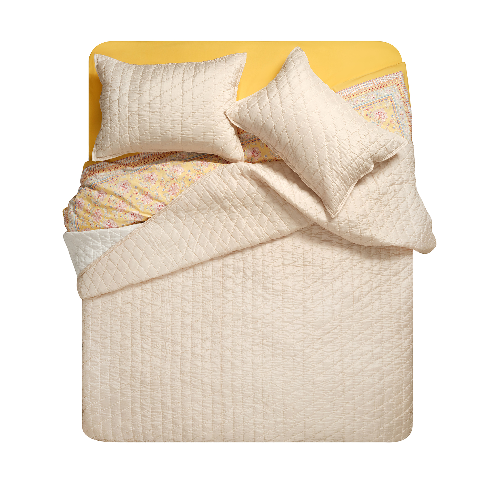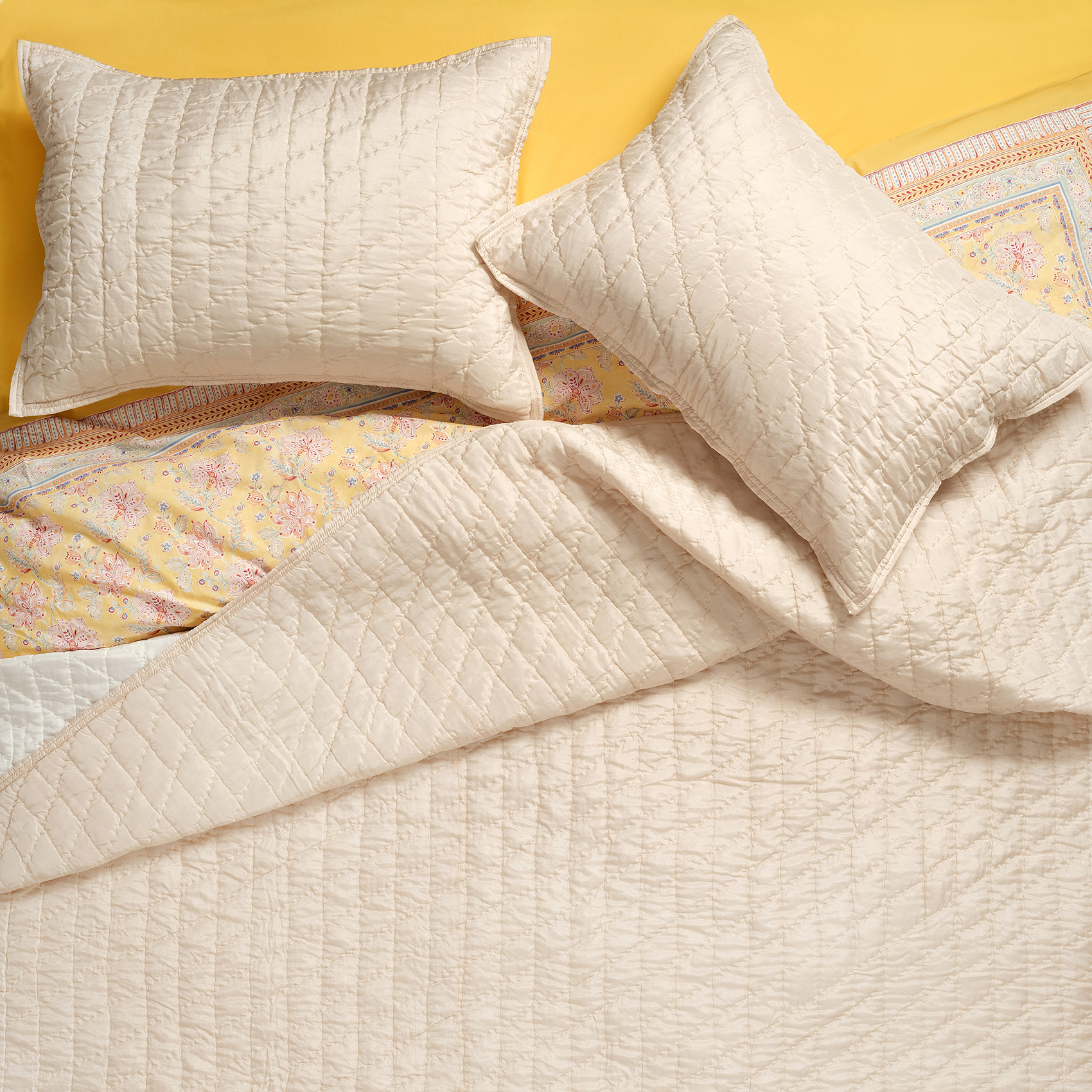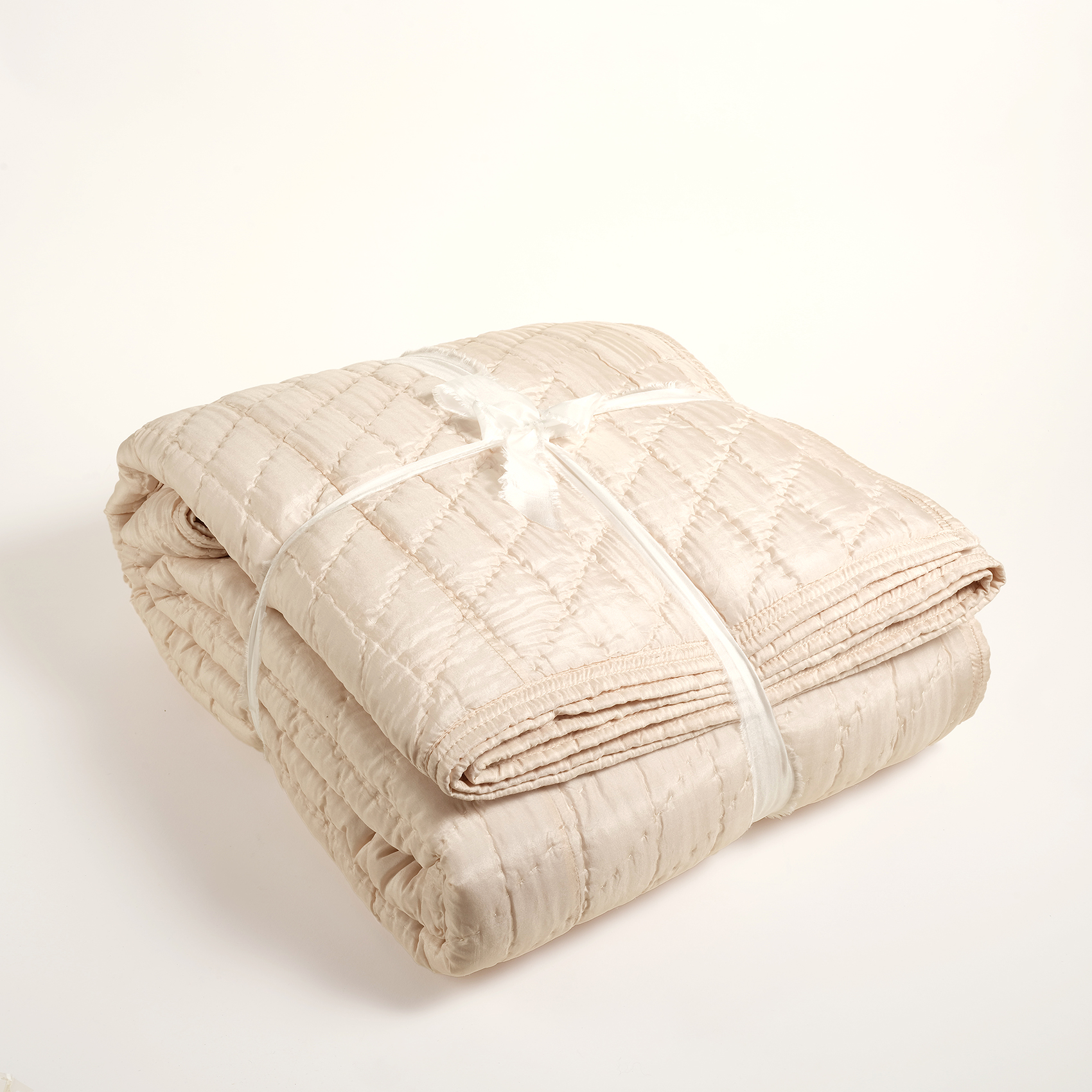 Okhla Çift Kişilik İpek Yatak Örtüsü Seti 240x260 Cm Natural