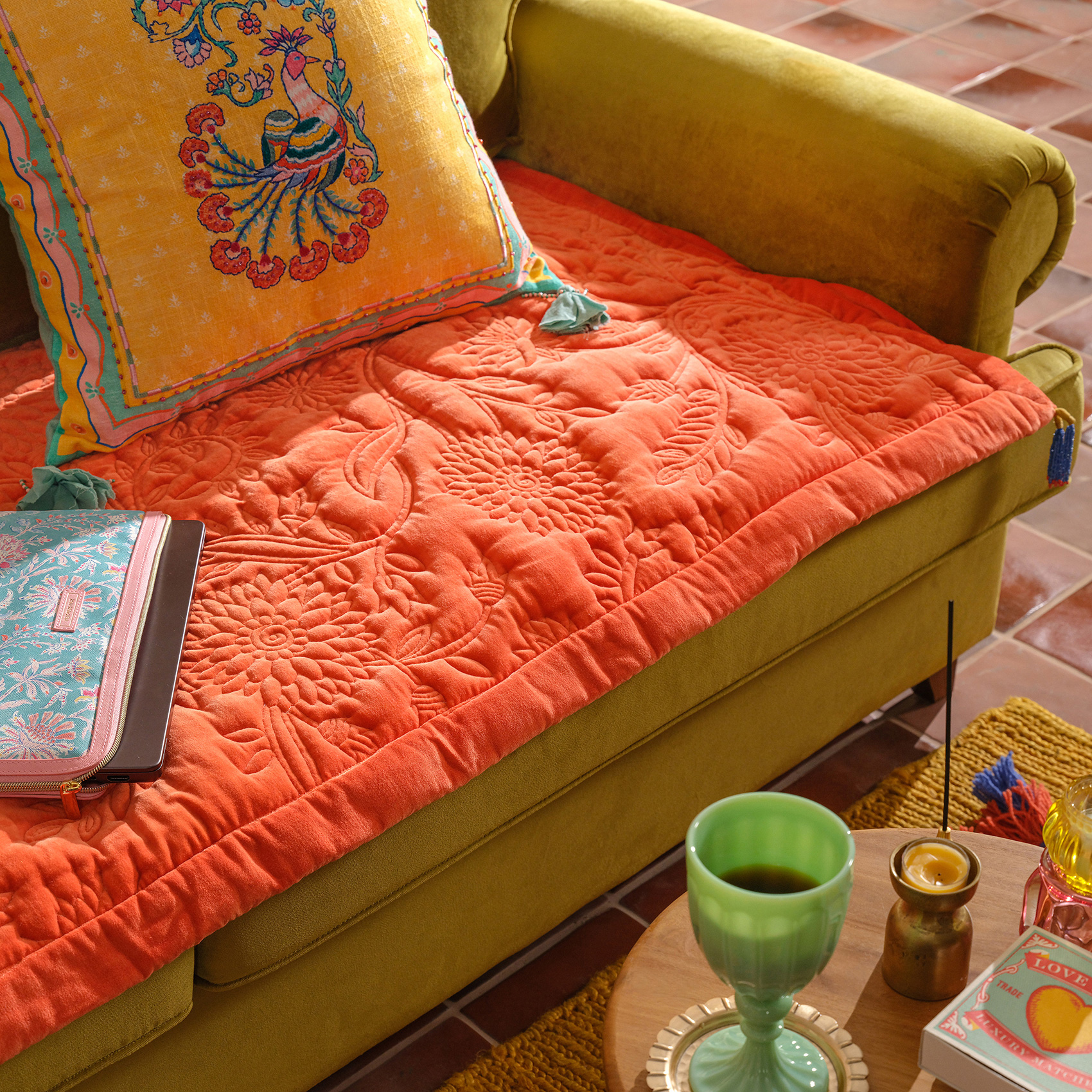 Okhla Pamuk Kadife Koltuk Matı 85x185 Cm Sarı - Turuncu