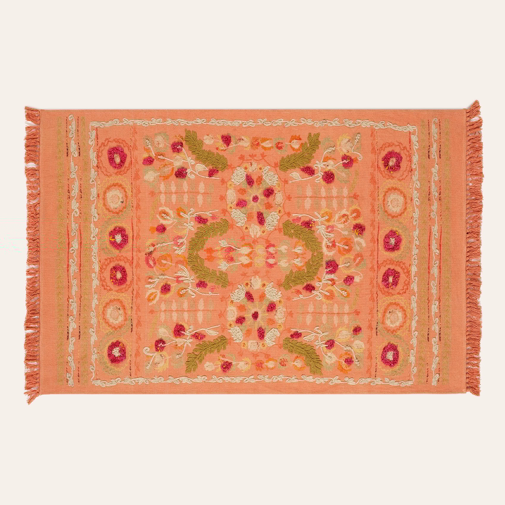Palrı Baskı Nakışlı Pamuk Kilim, pamuk dokusunun doğal yumuşaklığını sanatsal dokunuşlarla birleştiren özel bir parça. Dünyanın farklı bölgelerindeki zanaatkârlar tarafından elde boyanan yüzeyi, ona benzersiz bir karakter kazandırıyor. Usta işçiliğin titizliğiyle tamamlanan kilim, nakış tekniklerinin zarif detaylarıyla zenginleşiyor; her motif sabır ve özenin izlerini yansıtıyor. Zsa Zsa Zsu’nun yaratıcı ekibi tarafından tasarlanan özgün deseni, mekâna yalnızca renk değil, farklı bir kimlik de katıyor. Çevre dostu ve sürdürülebilir malzemelerle üretilmesi ise geleceğe değer katan bir yaklaşımı gösteriyor. Palrı, sıradan bir kilimden çok daha fazlasını sunarak evinize sanatı, el emeğini, özgünlüğü ve Zsa Zsa Zsu’nun neşeli ruhunu bir arada getiriyor.