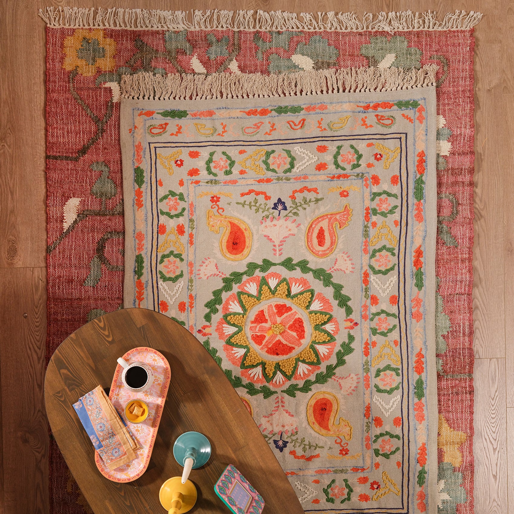 Hindistan’ın zengin kültürel mirasını modern yaşamla buluşturan bu baskı nakışlı kilim, Heritage koleksiyonunun en göz alıcı parçalarından biri. Canlı renkleri ve ince el işçiliğiyle hayat bulan motifleri, adeta geçmişin hikayelerini günümüze fısıldıyor. %98 pamuk dokusuyla doğal bir zarafet sunan bu kilim, otantik estetiği ve dayanıklılığıyla yaşam alanlarınıza özgün bir karakter kazandırıyor. Uzun ömürlü güzelliği için kuru temizleme önerilir.