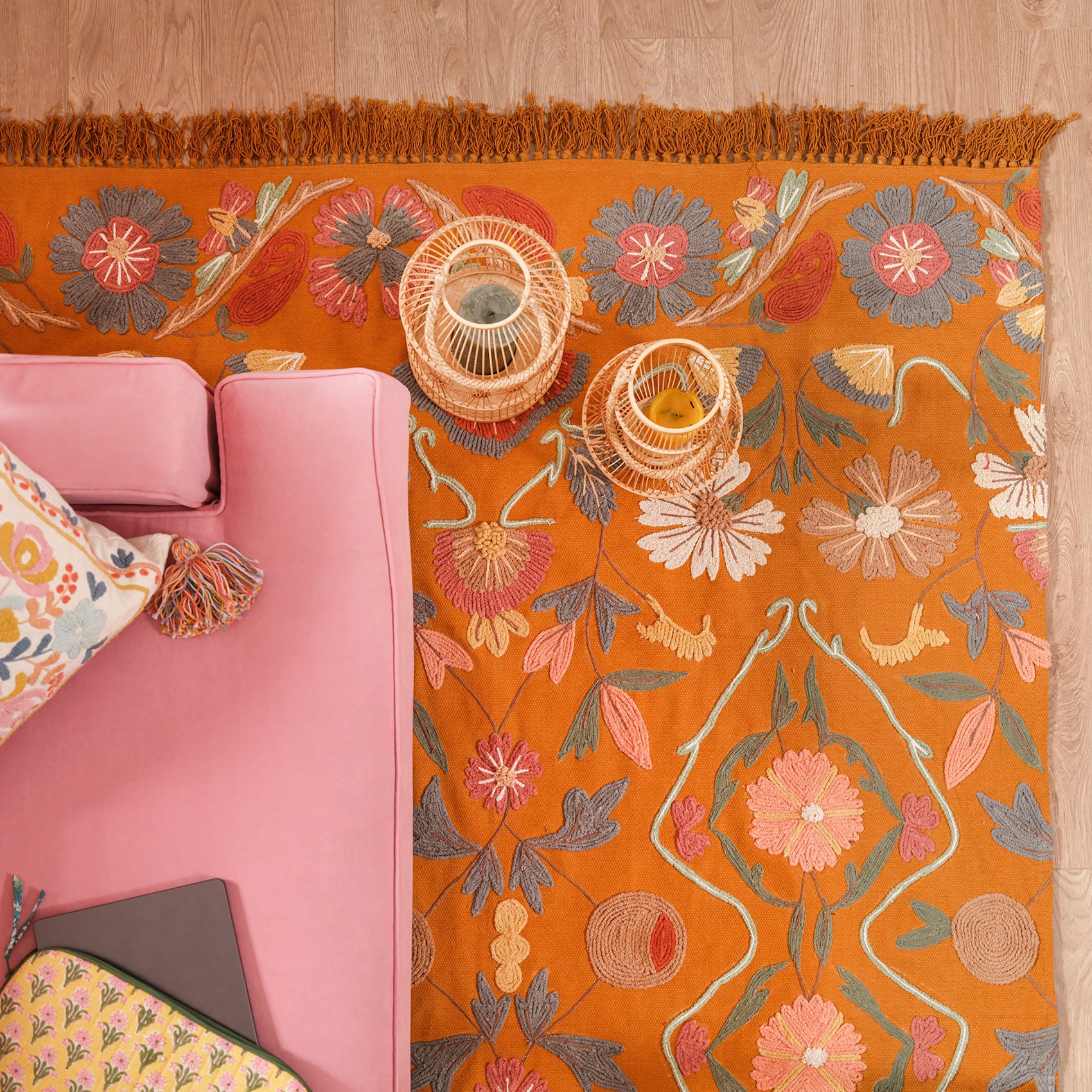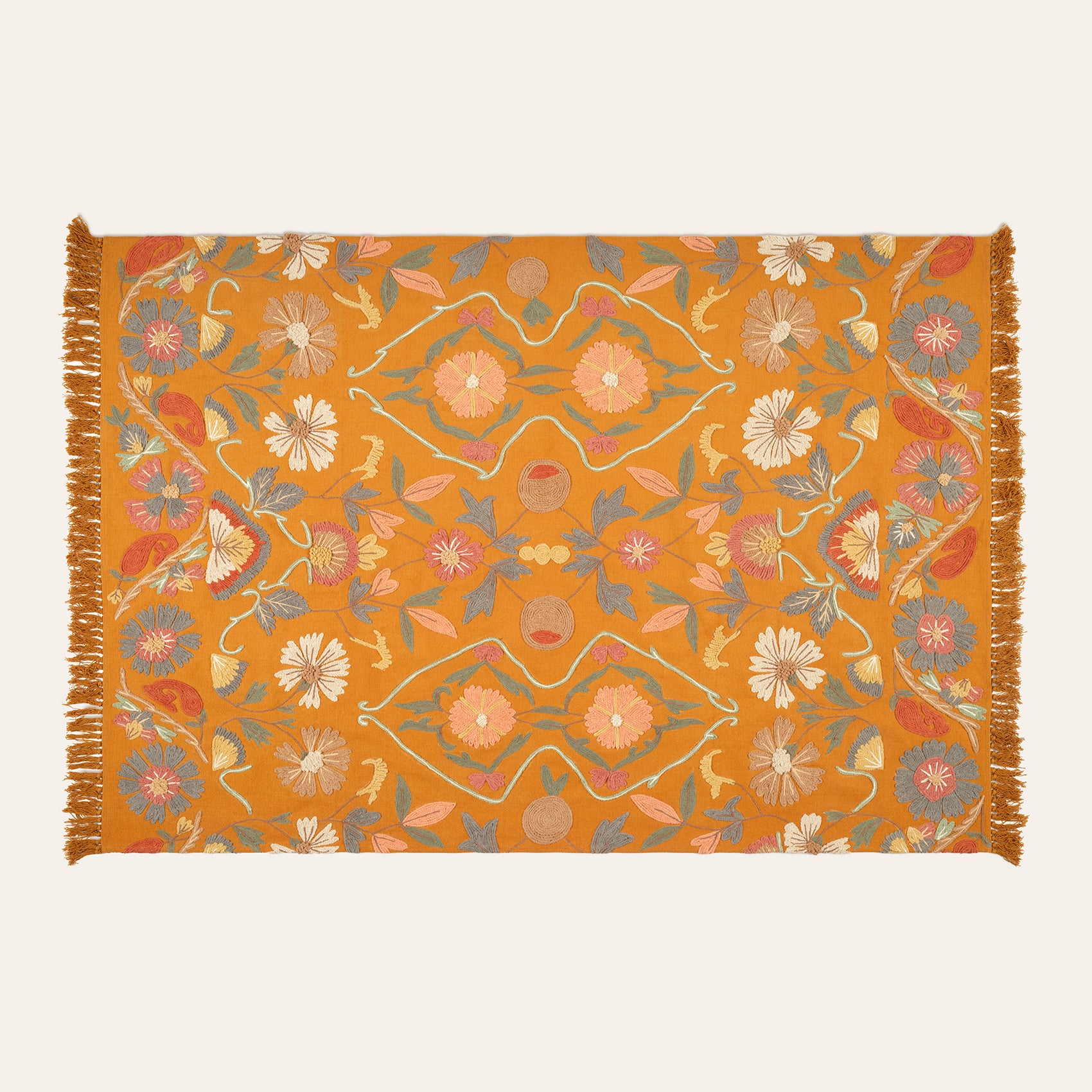 Sarı tonlarının sıcaklığıyla hayat bulan bu nakışlı pamuk kilim, Heritage koleksiyonunun eşsiz el işçiliğini yaşam alanlarınıza taşıyor. %98 pamuktan üretilen dokusu, doğal bir yumuşaklık ve dayanıklılık sunarken, el işçiliğiyle işlenen detaylar otantik bir estetik yaratıyor. Canlı motifleri ve dikkat çekici renkleriyle bu kilim, evinizde modern ve mirasa saygı duyan bir atmosfer kurmanıza olanak tanır. Uzun ömürlü kullanım için yalnızca kuru temizleme önerilir.