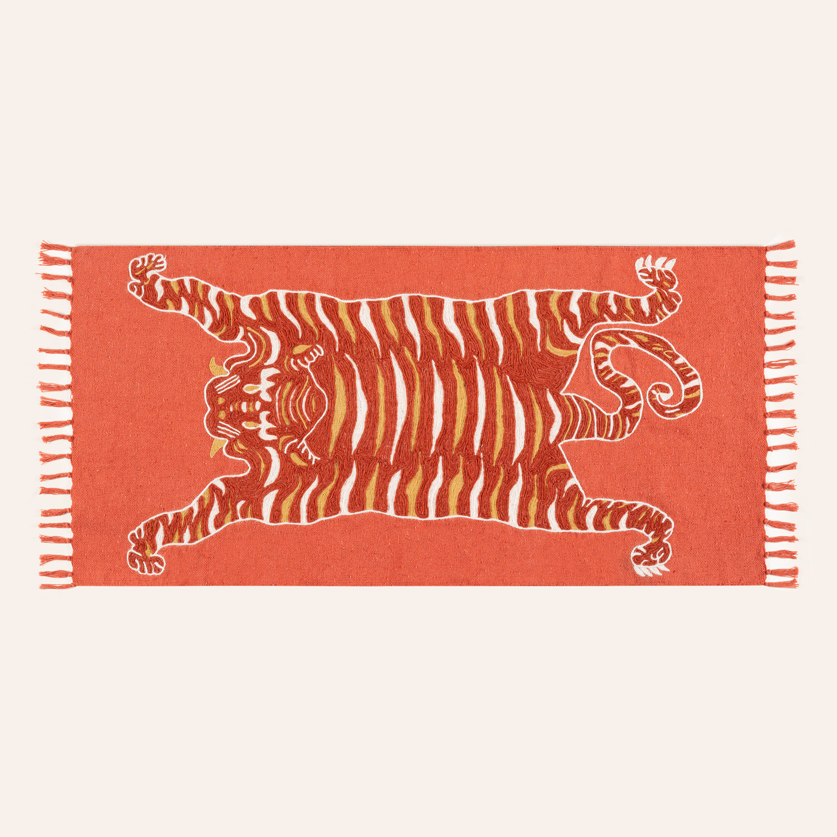 Maximalist koleksiyonunda yer alan Palri kiliminin göz alıcı tasarımı, yaşam alanlarına oyuncu bir dokunuş katıyor. %70 pamuktan üretilen Palri kilim, zeminine yayılan canlı rengiyle ilk bakışta dikkat çekerken, merkezde yer alan stilize edilmiş kaplan figürü, egzotik bir his yaratıyor. Kenarları zarif püsküllerle tamamlanan bu tasarım, sadece bir dekorasyon ürünü değil, aynı zamanda otantik bir hikaye anlatıcısı gibi. Her ilmek, Hindistan’ın geleneksel zanaat mirasına saygı duruşunda bulunarak modern yaşam alanlarına sıcaklık ve karakter katıyor. Uzun ömürlü kullanım için yalnızca hassas kuru temizleme yapmanızı öneriyoruz.