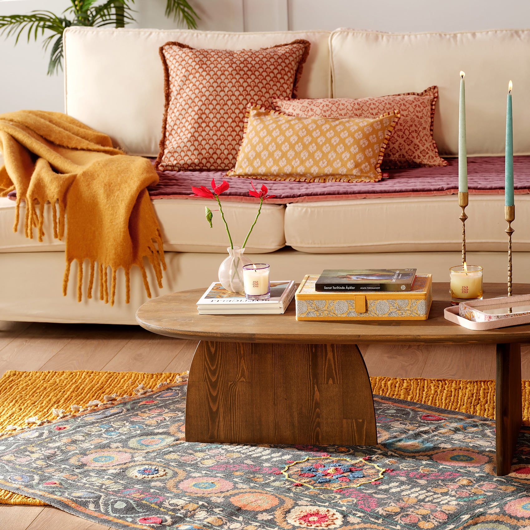 Eklektik bir dünyanın kapılarını aralayan özgün tasarımıyla Palri pamuk kilim, Hindistan’da yaşayan usta artizanlar tarafından el tezgahlarında titizlikle dokunuyor. %90 oranında doğal pamuk kullanılarak üretildiğinden yumuşak bir dokuya sahiptir ve son derece dayanıklıdır. İnce detaylarla şekillendirilen tasarımı sayesinde bulunduğu ortama otantik bir dokunuş katar. Palri pamuk kilimin uzun yıllar boyunca ilk günkü gibi kalmasını istiyorsanız, bakımını kuru temizlemeyle yapmanızı öneriyoruz.