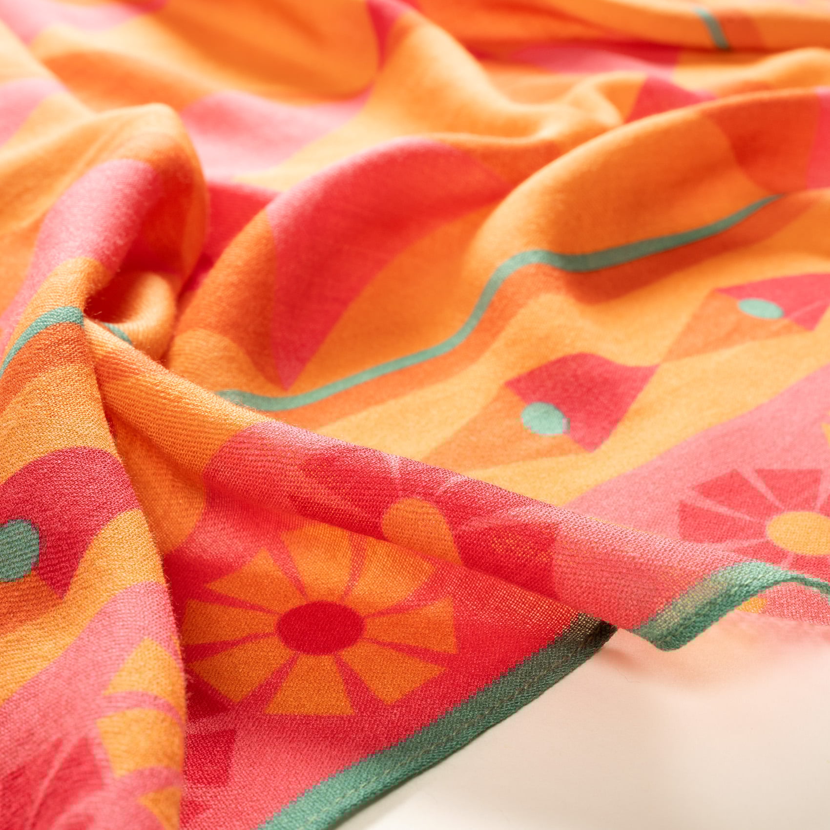 Pera Dijital Baskılı %100 Yün Fular 90x90 Cm Renkli