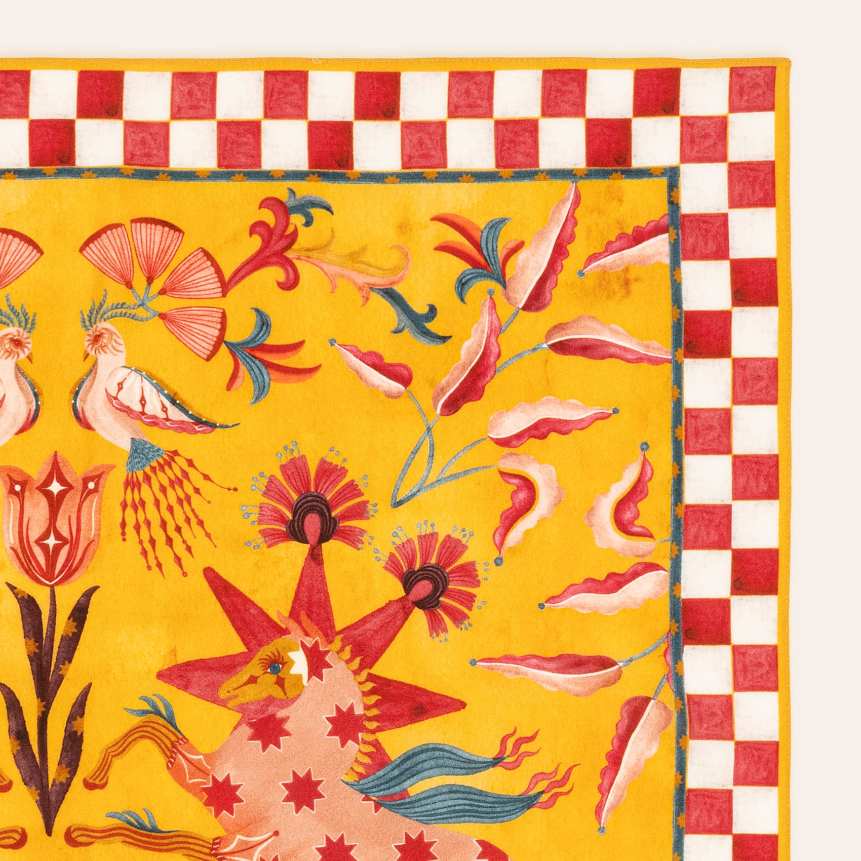 Canlı sarı tonu ve çarpıcı tasarımıyla bu gavroş, stilinize adeta enerji enjekte ediyor! Pera gavroş, %100 yün dokusuyla hem sıcak tutarken hem de tarzınızı zirveye taşıyor. Desenler ise her adımda sizi sarıp sarmalıyor ve en sade kombininizi bile matematiksel bir ustalıkla öne çıkarıyor. Ortasındaki doğa motifleri hayal gücünü tetikleyen hikayelere ilham veriyor. Kuru temizleme ile uzun yıllar boyunca ilk günkü görünümünü koruyabilirsiniz. Türkiye’de titizlikle üretilen bu parça, gardırobunuzun en enerjik ve sofistike üyesi olmaya hazır!