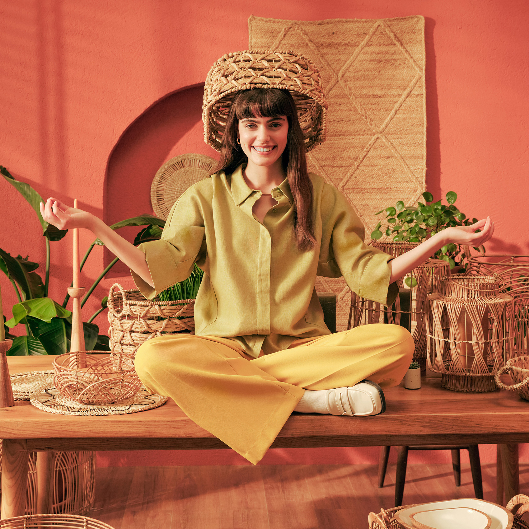 Yuvarlak formlu beş adet iç içe geçebilir sepetten oluşan Poli sepet seti, sürdürülebilir bir malzeme olan su sümbülü kullanılarak örüldüğü için oldukça hafiftir; kolayca taşınıp istiflenebilir. Zanaatkâr işi örgü stiliyle farklı bir estetik sunan Poli’yi nemden uzak tutarak uzun yıllar boyunca kullanabilirsiniz. Üzerine ağır eşyalar koymamanızı öneriyoruz.