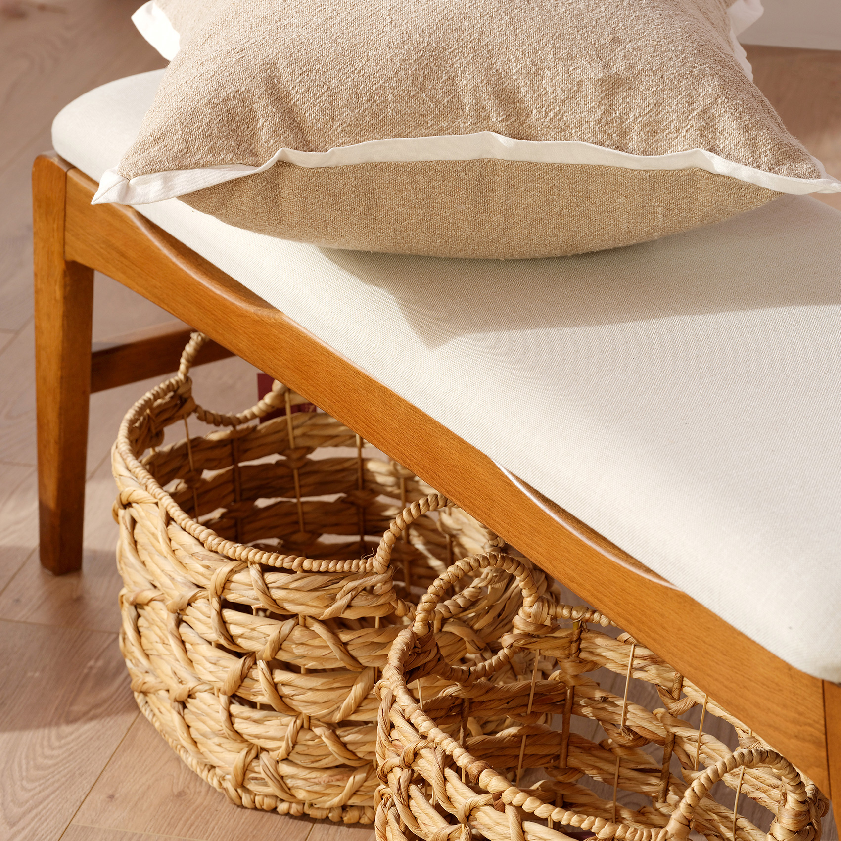 Yuvarlak formlu beş adet iç içe geçebilir sepetten oluşan Poli sepet seti, sürdürülebilir bir malzeme olan su sümbülü kullanılarak örüldüğü için oldukça hafiftir; kolayca taşınıp istiflenebilir. Zanaatkâr işi örgü stiliyle farklı bir estetik sunan Poli’yi nemden uzak tutarak uzun yıllar boyunca kullanabilirsiniz. Üzerine ağır eşyalar koymamanızı öneriyoruz.