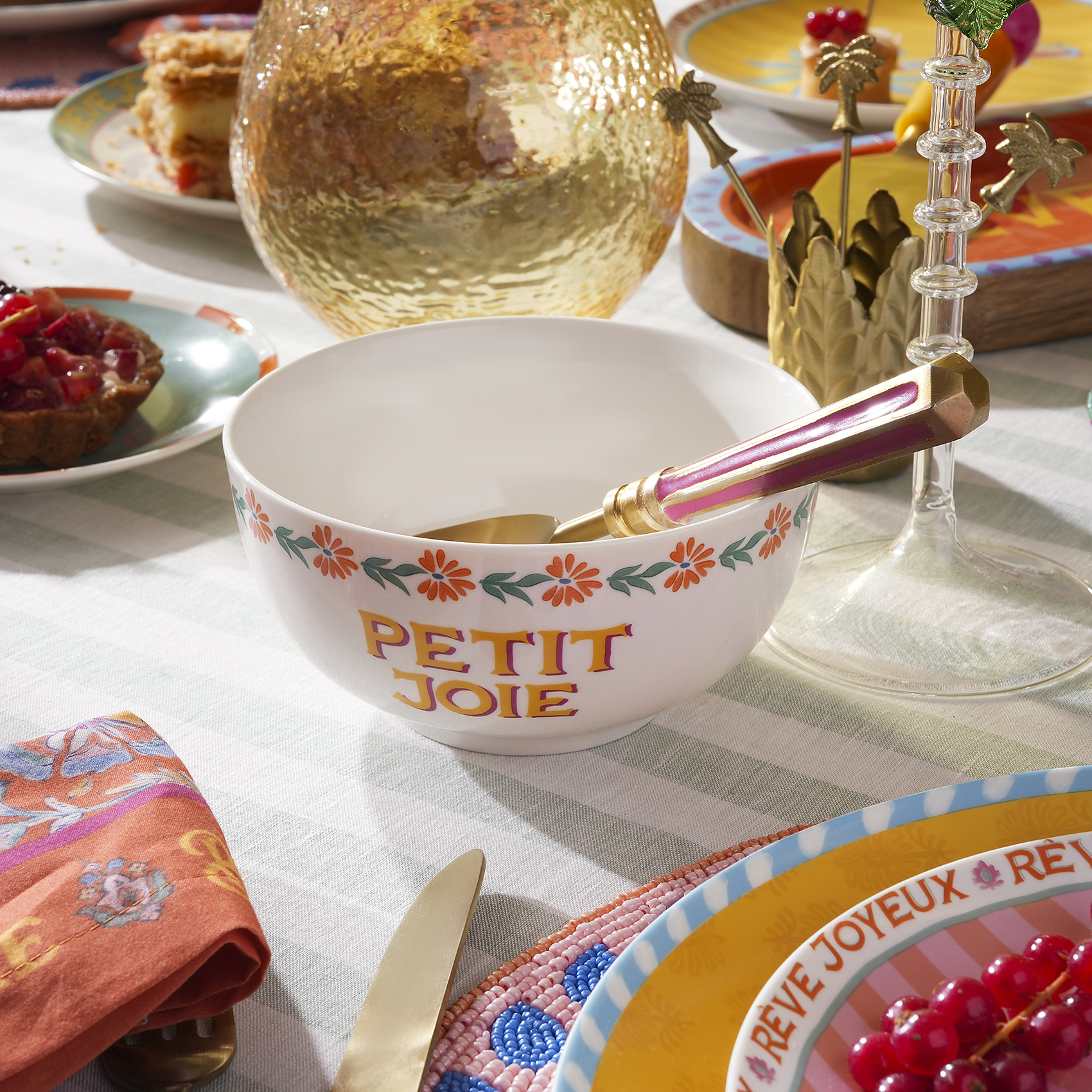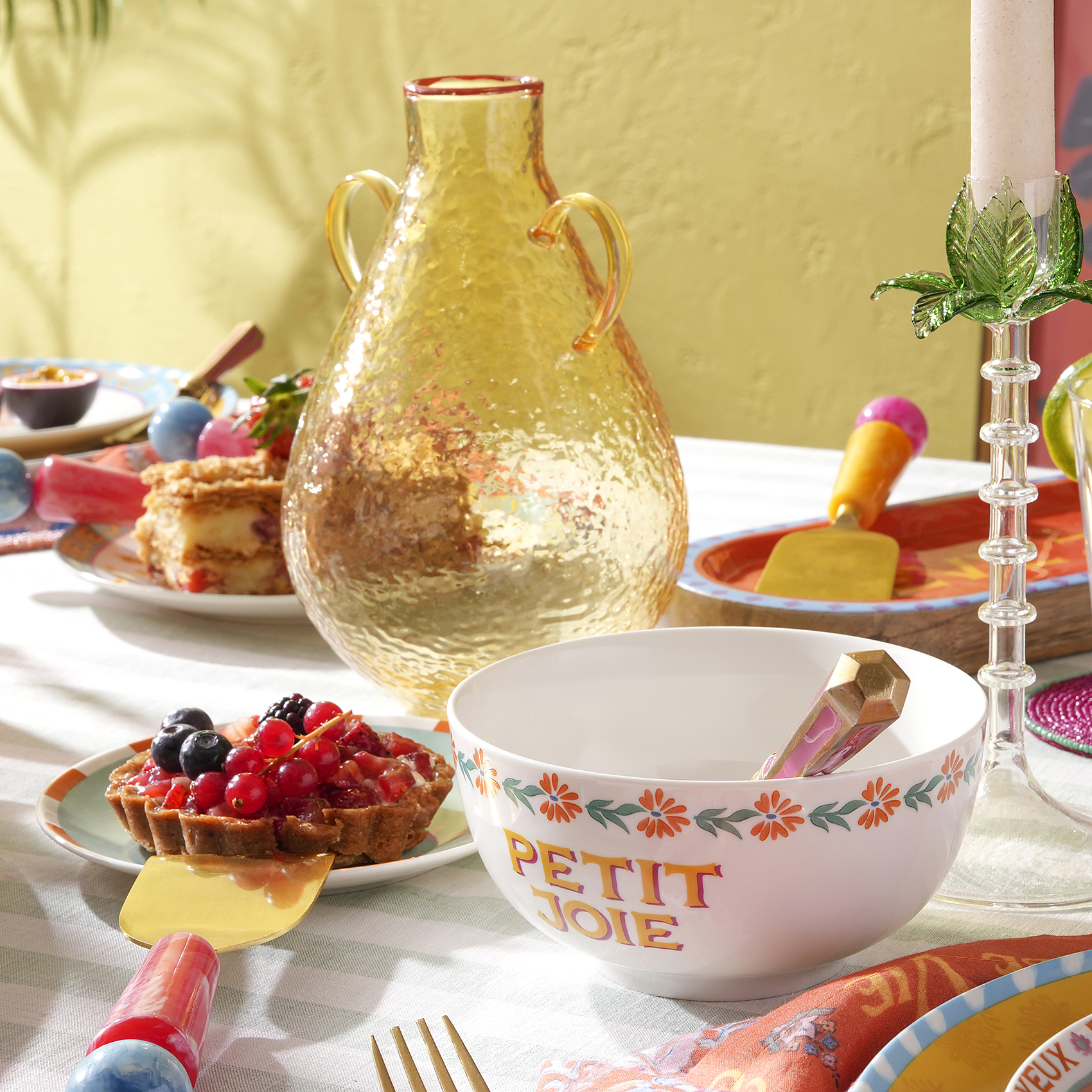 Luohu Porselen Kase, Heritage koleksiyonunun geçmişten beslenen dünyasını canlı renkler ve oyunlu detaylarla yeniden kuruyor. Üzerindeki desenler ve tipografik dokunuşlar, sofraya hafif, keyifli ve karakterli bir ifade kazandırıyor. Zsa Zsa Zsu yaratıcı ekibinin imzasını taşıyan Luohu, gündelik kullanımlarda bile masaya ritim ve enerji katıyor. Tek başına dikkat çeken bir parça olarak ya da serinin diğer tasarımlarıyla birlikte kullanıldığında, sofrada özgür ve neşeli bir atmosfer yaratıyor.