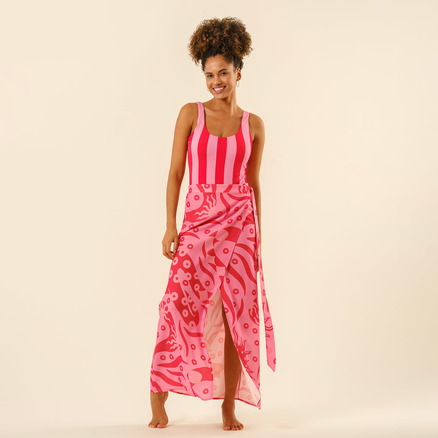 Plajda retro bir enerji patlaması! Prinkipo polyamide klasik mayo pembe-kırmızı, mid-century modern stilini Maximalist koleksiyonun capcanlı ruhuyla yeniden yorumluyor. Kırmızı ve pembenin çarpıcı uyumu, enerjisiyle güneşi bile gölgede bırakıyor. %80 polyamide, %20 elastane kumaşıyla esnek, rahat ve sahnede olmaya hazır. Uzun ömürlü kullanım için elde yıkamanız önerilir. Türkiye’de üretilmiştir.