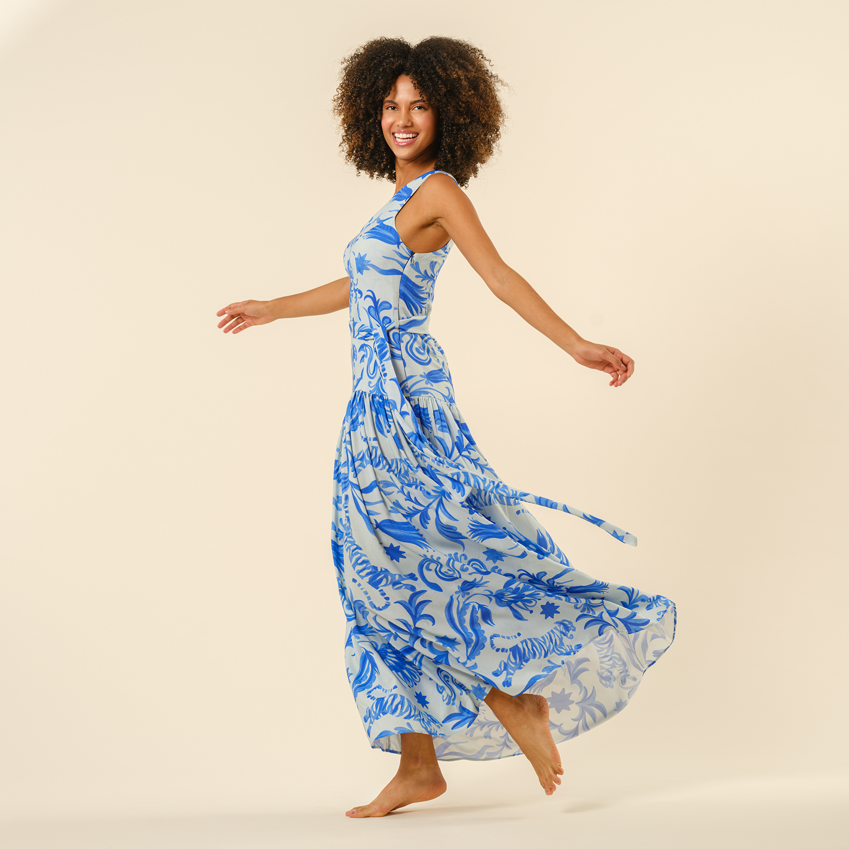 Blue koleksiyonunun capcanlı enerjisini taşıyan Proti asimetrik elbise, %100 viskon dokusuyla üzerinizde süzülürken, Zsa Zsa Zsu tasarımcılarının imzasını taşıyan dijital baskılı desenleriyle denizin büyüsünü stilinize taşıyor. Asimetrik kesimiyle beklenmedik kıvrımlar yaratıyor, hareket ettikçe özgürlüğü hissettiriyor. Akışına bırak, stilinle oyuna katıl! Türkiye’de tasarlandı ve üretildi.