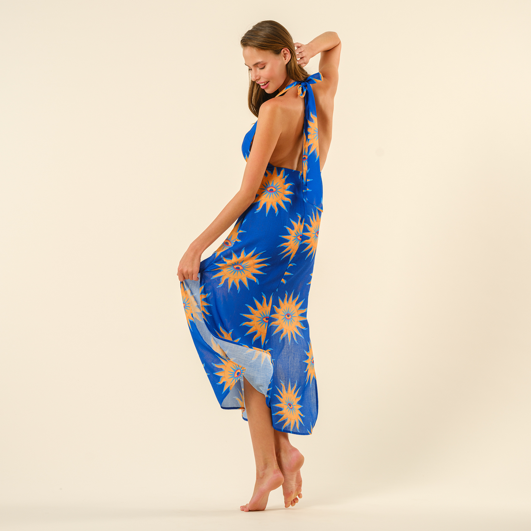 Proti elbiseyle yaz boyunca özgürlük, şıklık ve bolca neşe sizinle. Meltem gibi hafif, karnaval gibi kıpır kıpır. Her kıvrımı “haydi şimdi dans” diyor. Özgün desenleri ve akışkan duruşuyla stiline hareket katıyor, baharın tazeliğini ve yaz akşamlarının tatlı serinliğini adımlarında hissettiriyor. Gündüz konfor, akşam özgürlük. Üstelik Türkiye’de özenle üretildi.